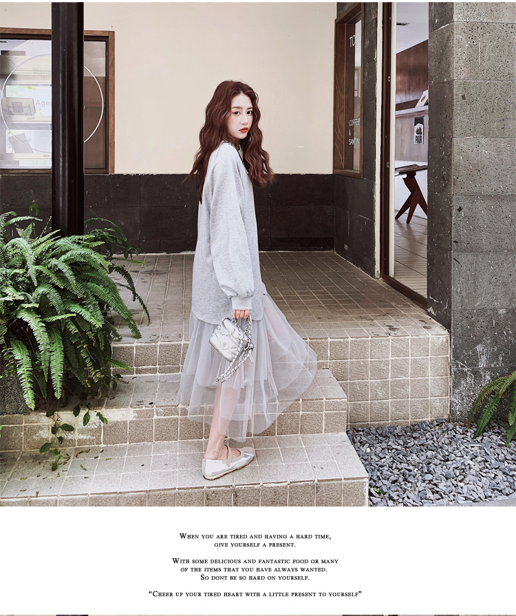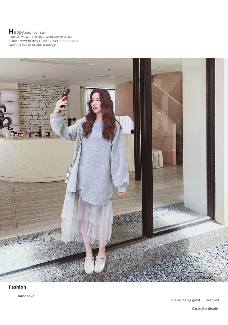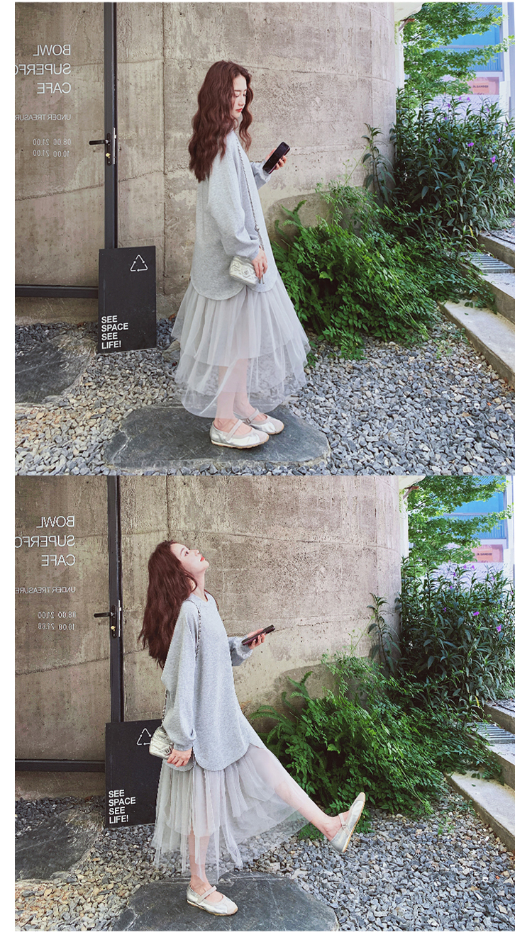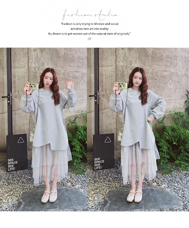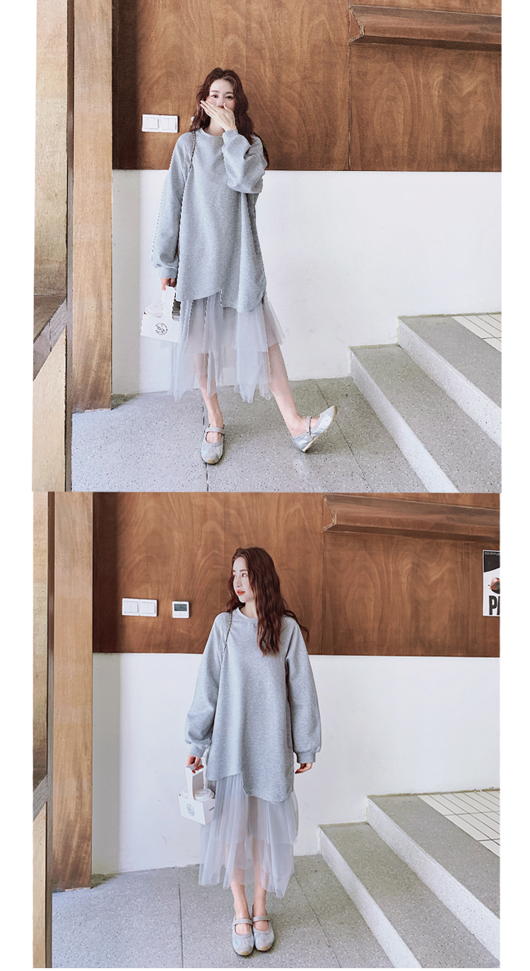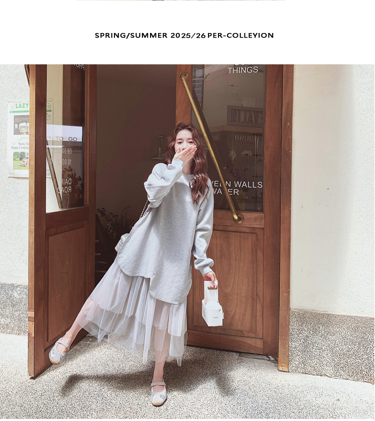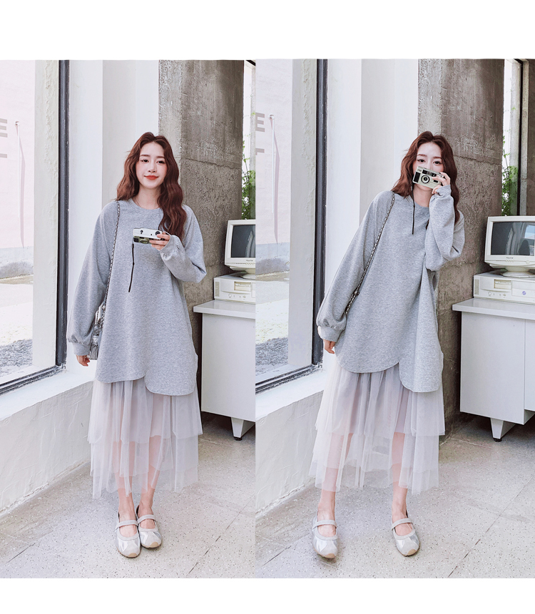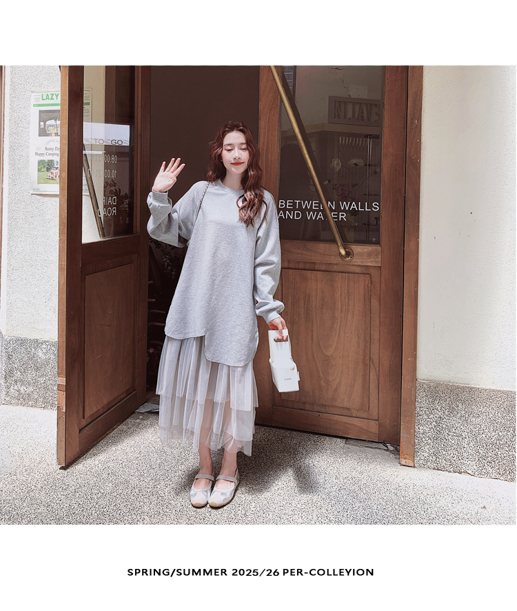 獨家訂製│假2件洋裝 休閒感網紗裙襬拼接洋裝(11A1792)