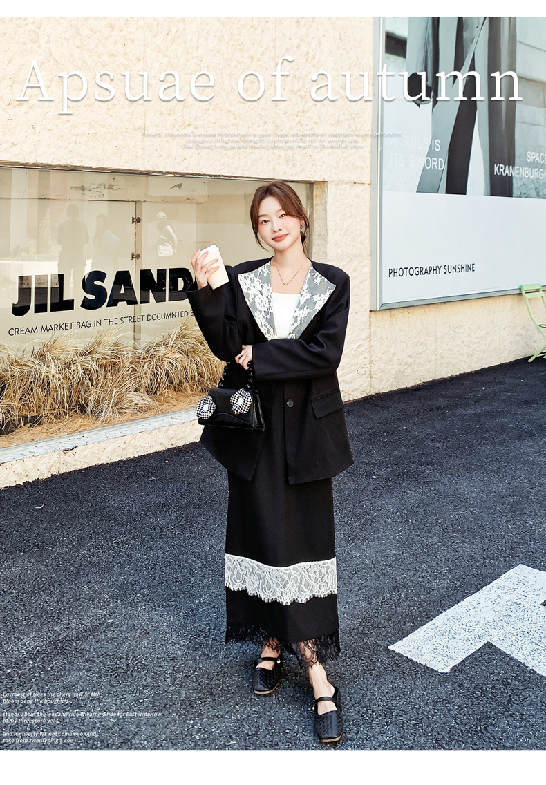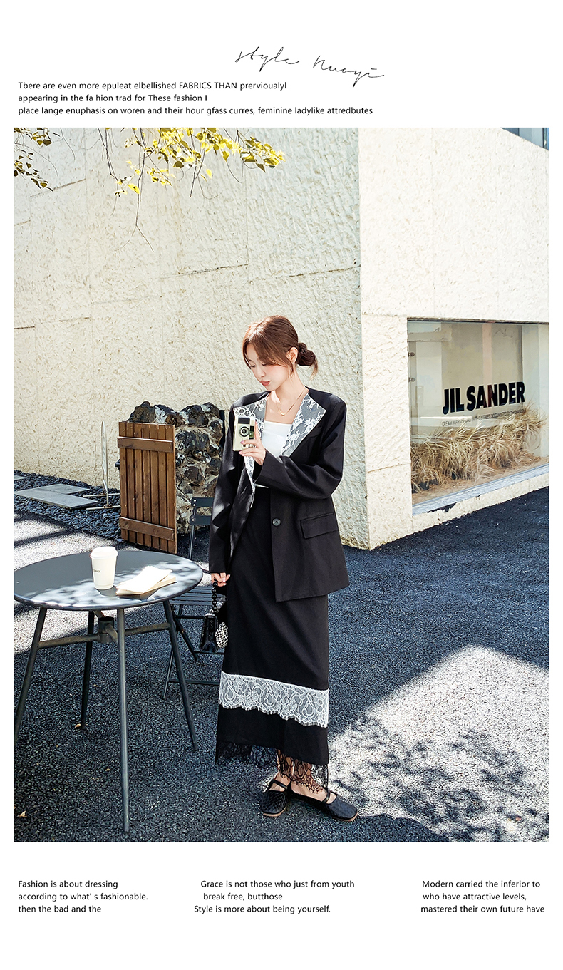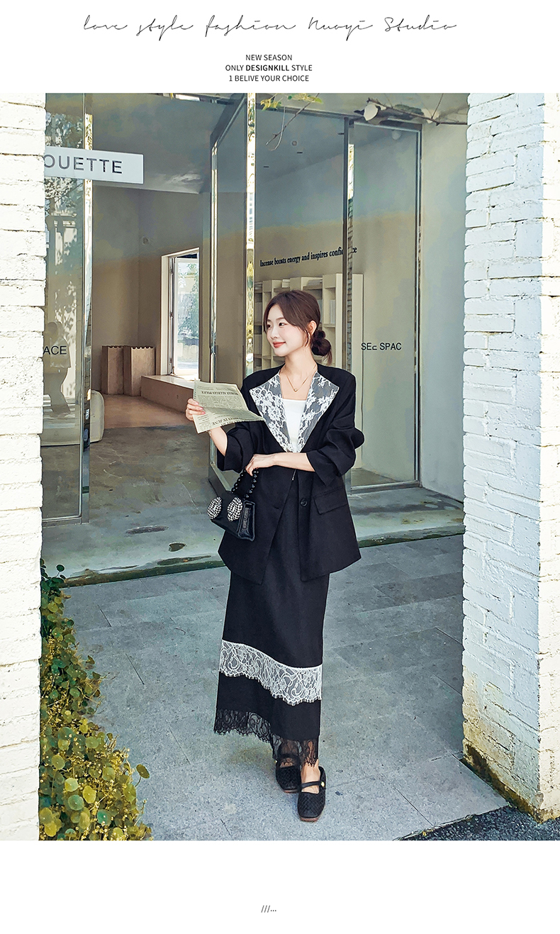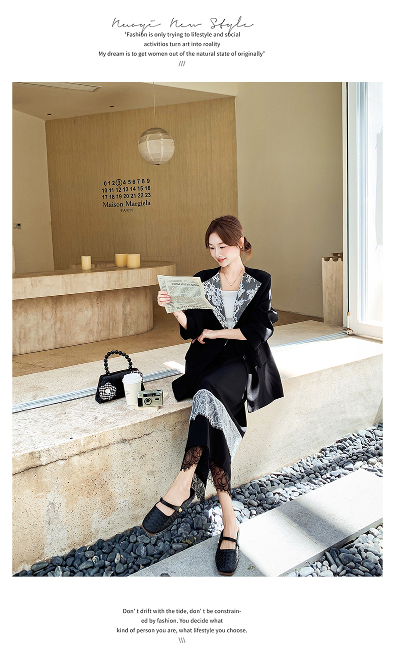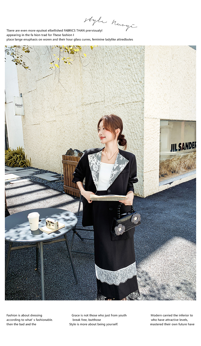 獨家訂製│2件式 蕾絲拼接西裝外套+蕾絲拼接A字裙(11A1835)