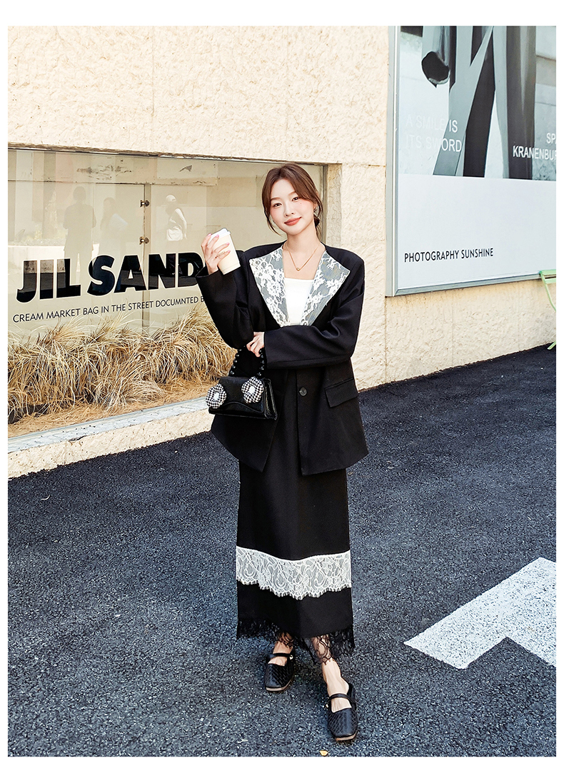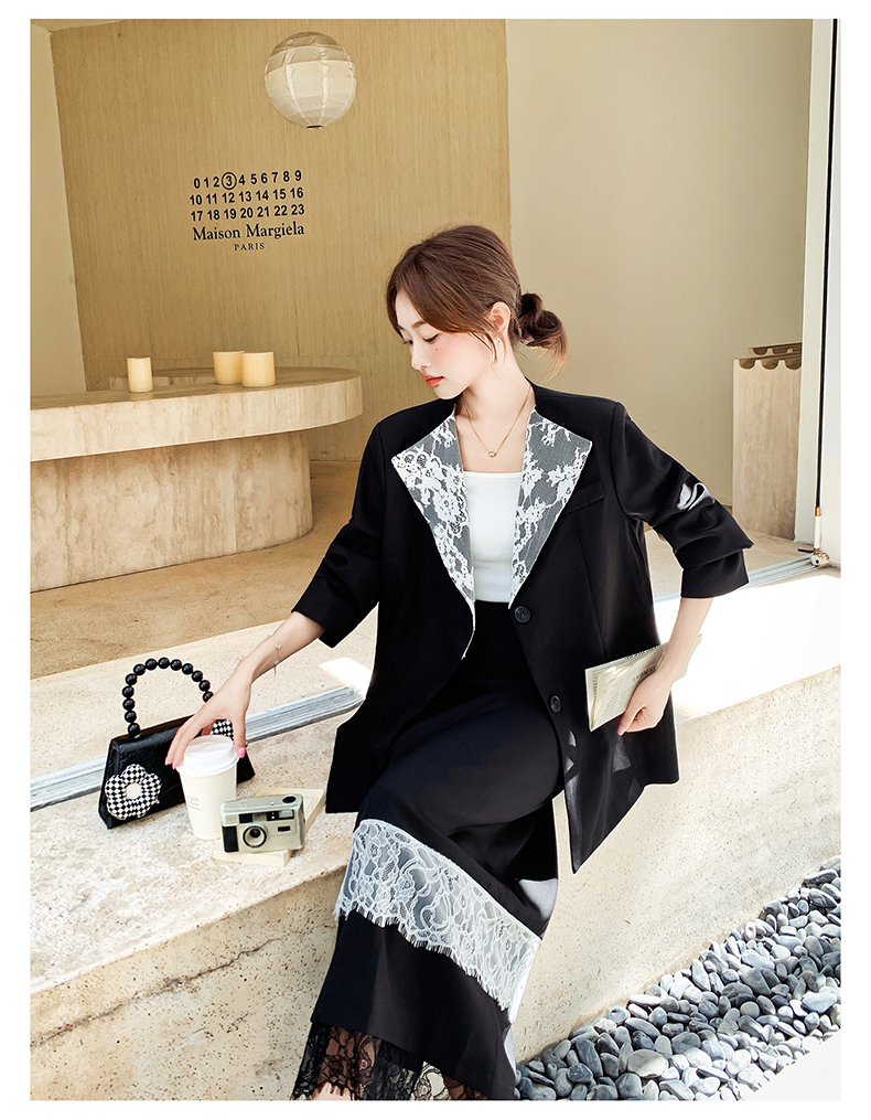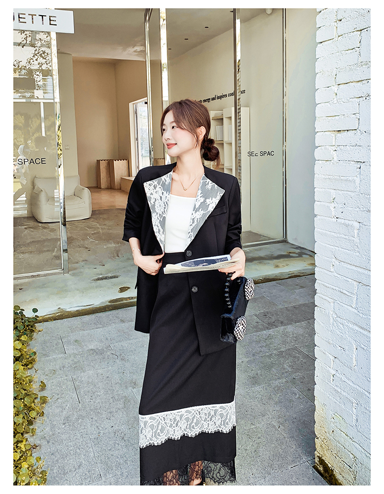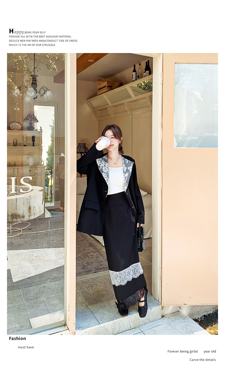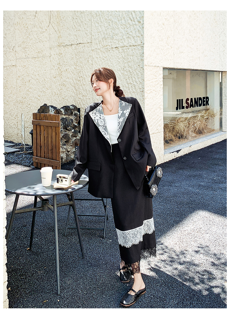 獨家訂製│2件式 蕾絲拼接西裝外套+蕾絲拼接A字裙(11A1835)