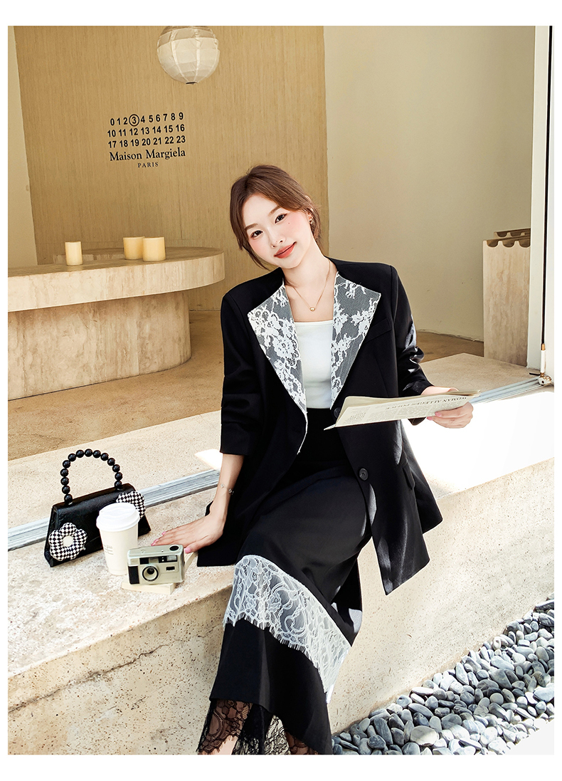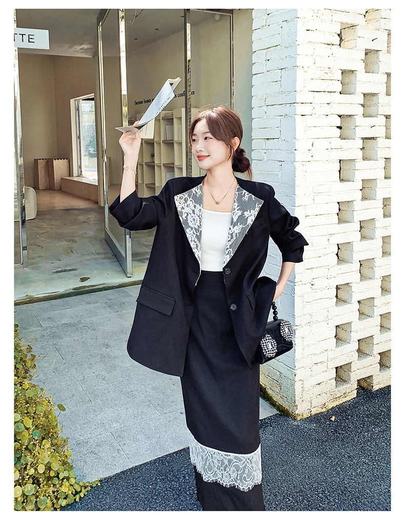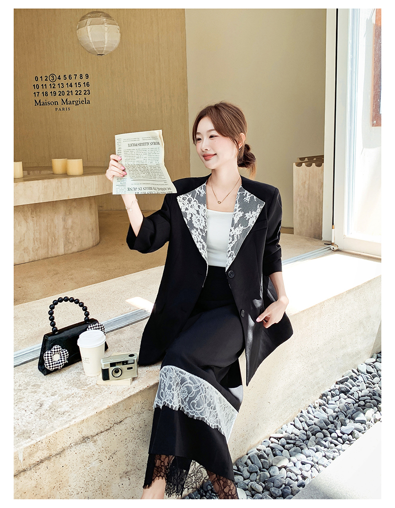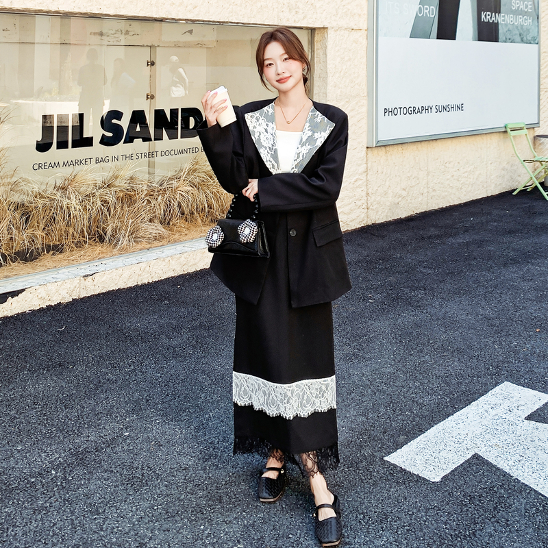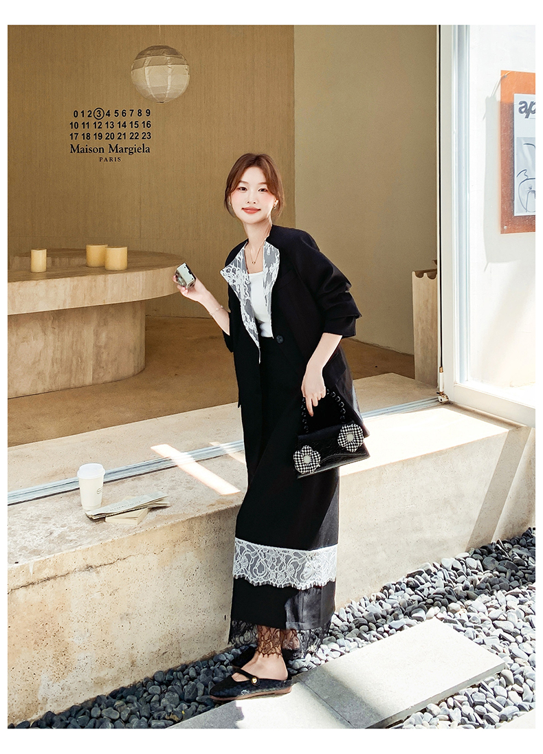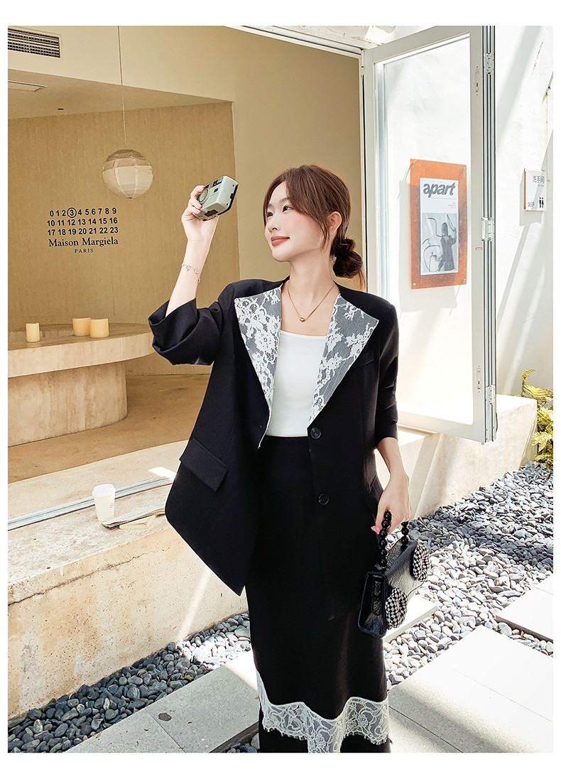 獨家訂製│2件式 蕾絲拼接西裝外套+蕾絲拼接A字裙(11A1835)