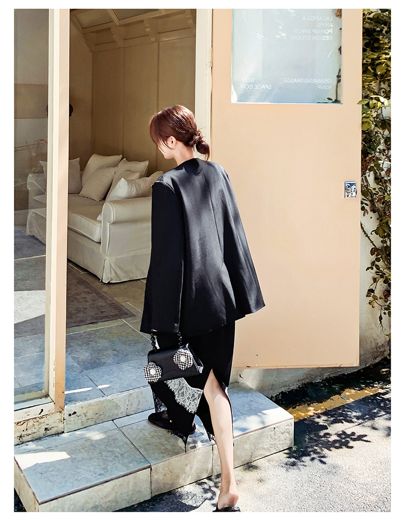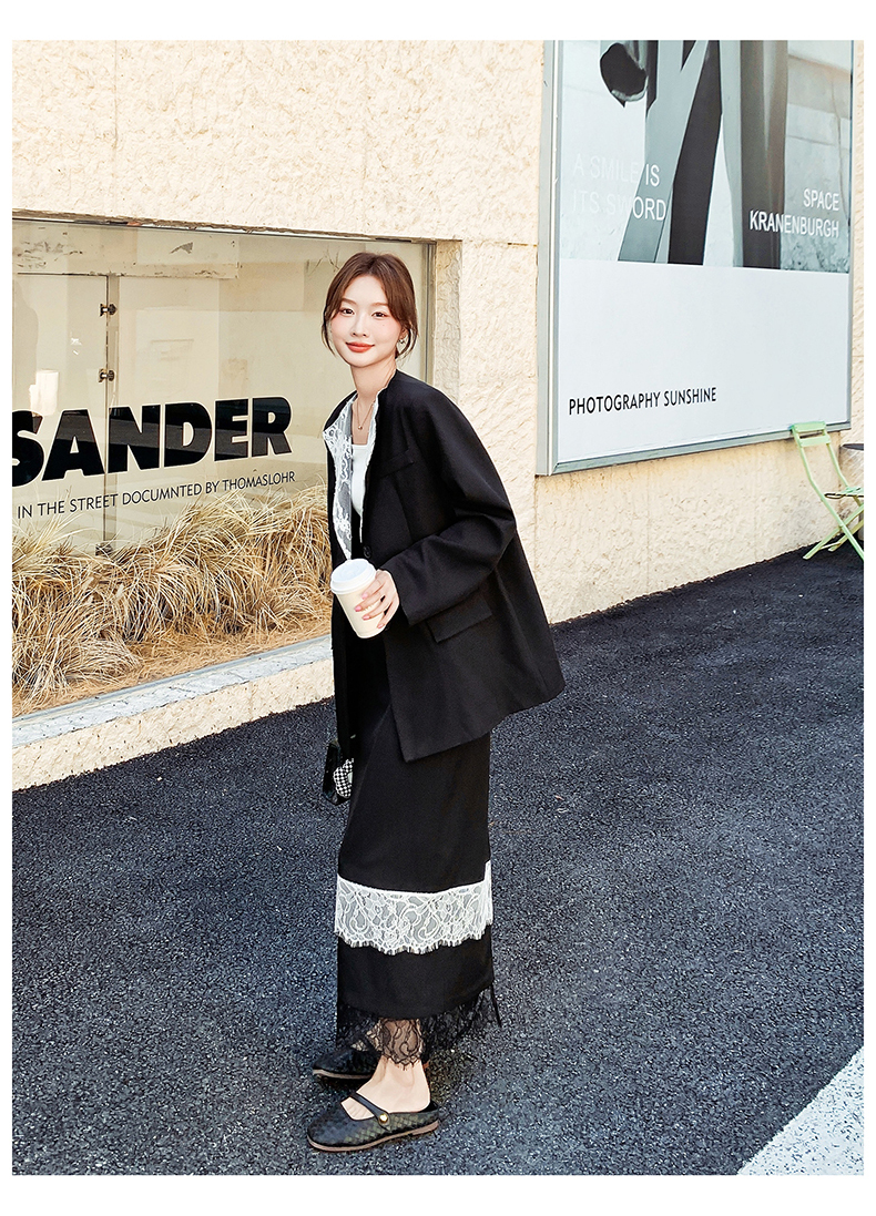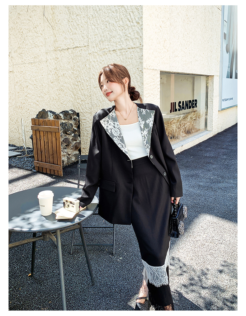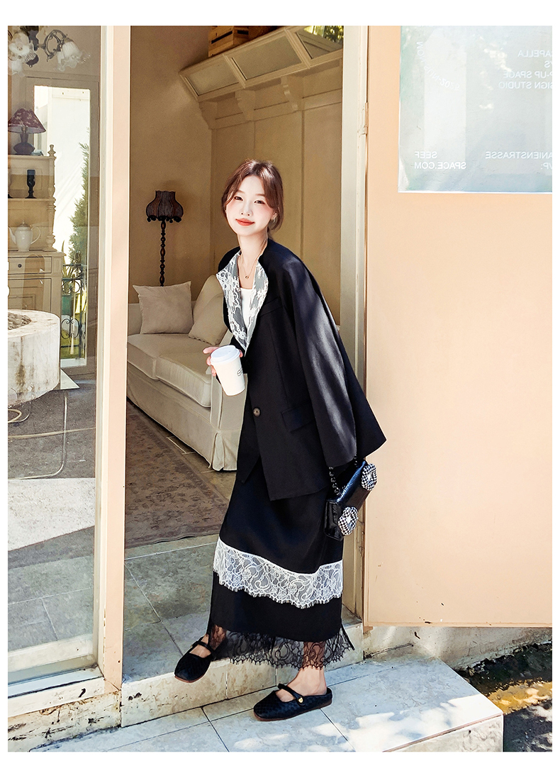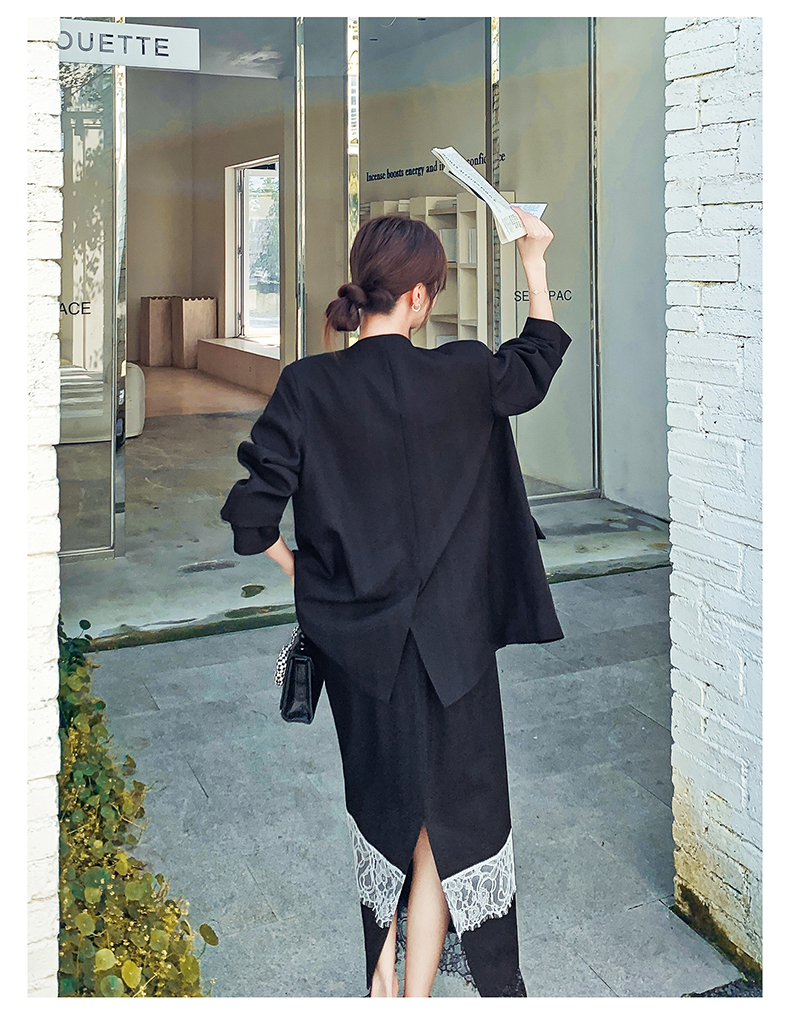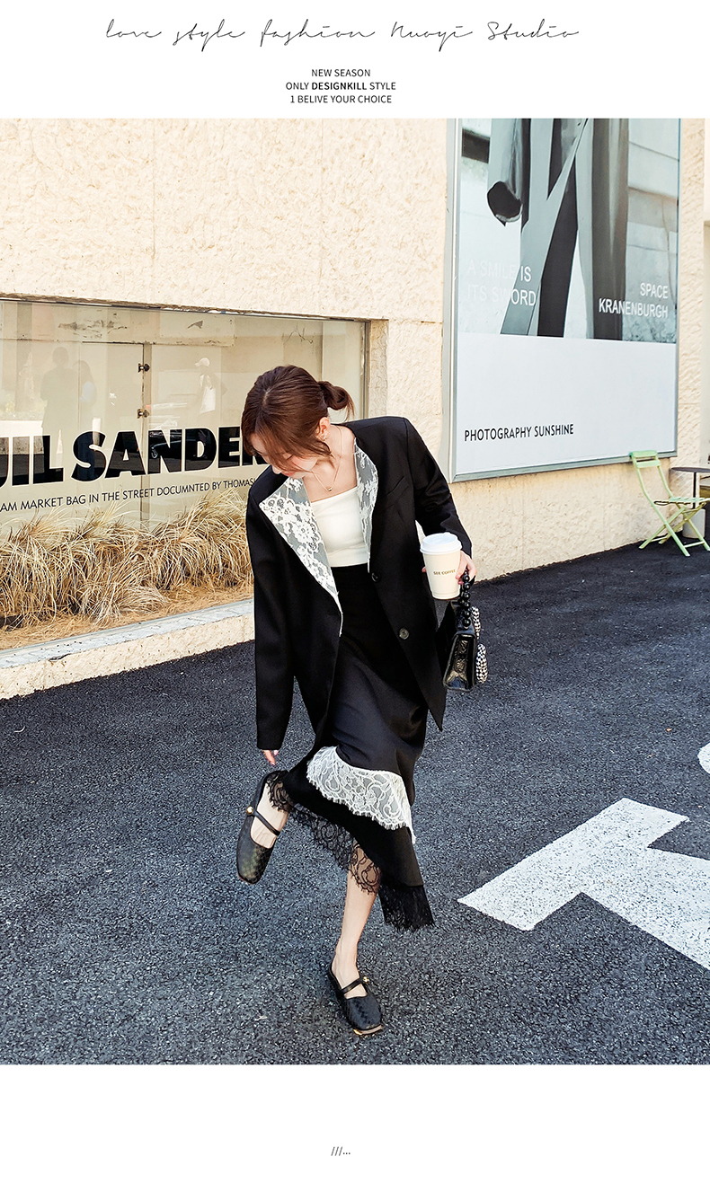 獨家訂製│2件式 蕾絲拼接西裝外套+蕾絲拼接A字裙(11A1835)
