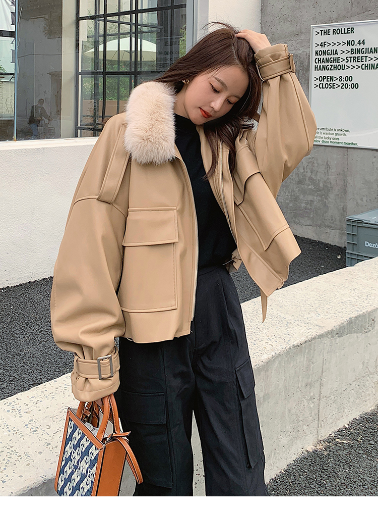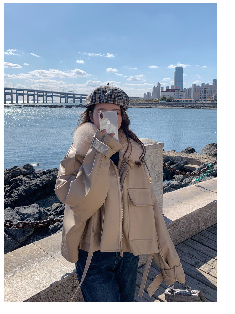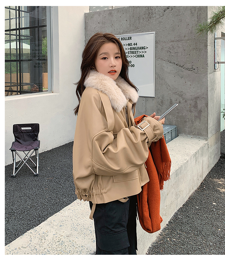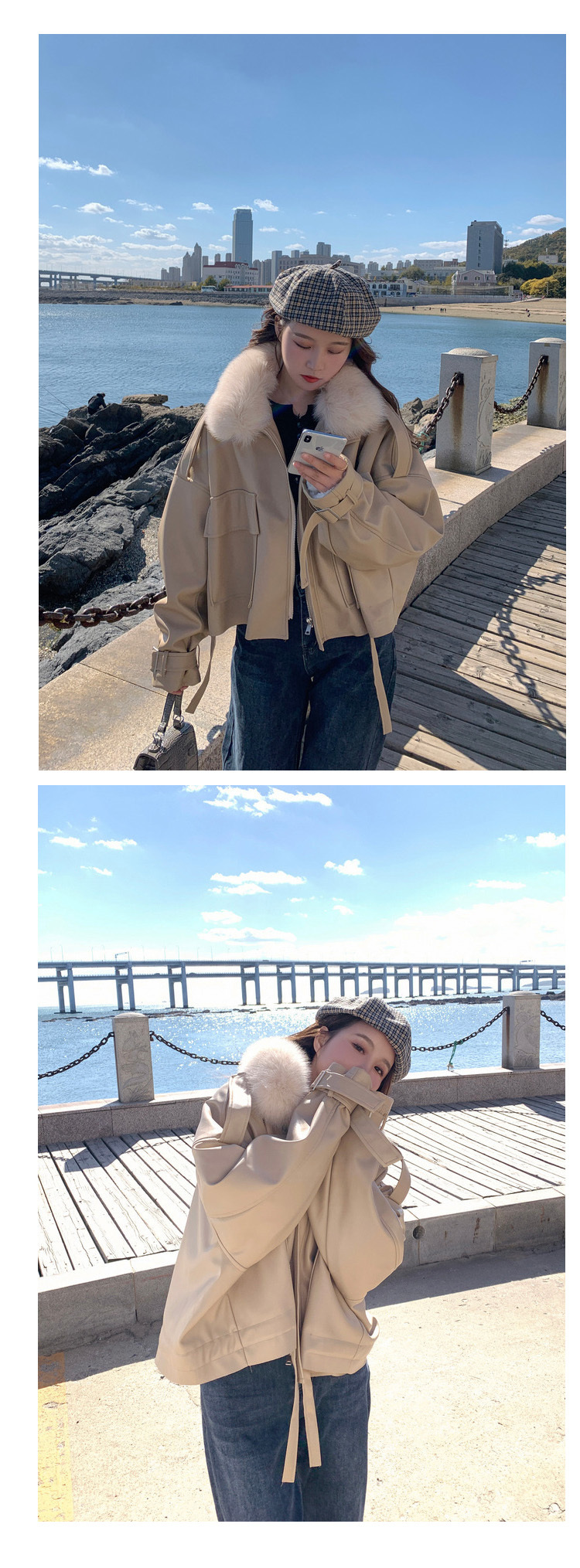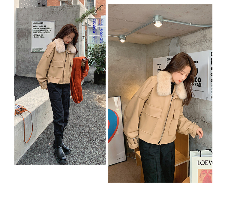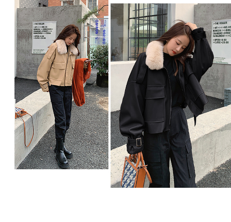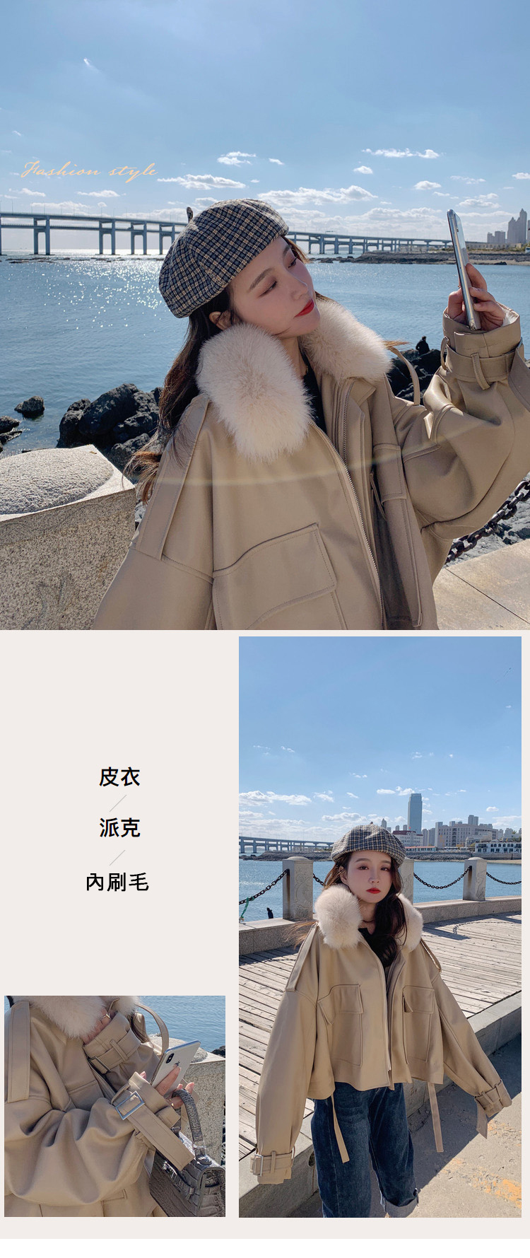 🔺面料:外層皮革(防潑水)+仿貉子毛領(可拆)+內刷仿兔毛絨