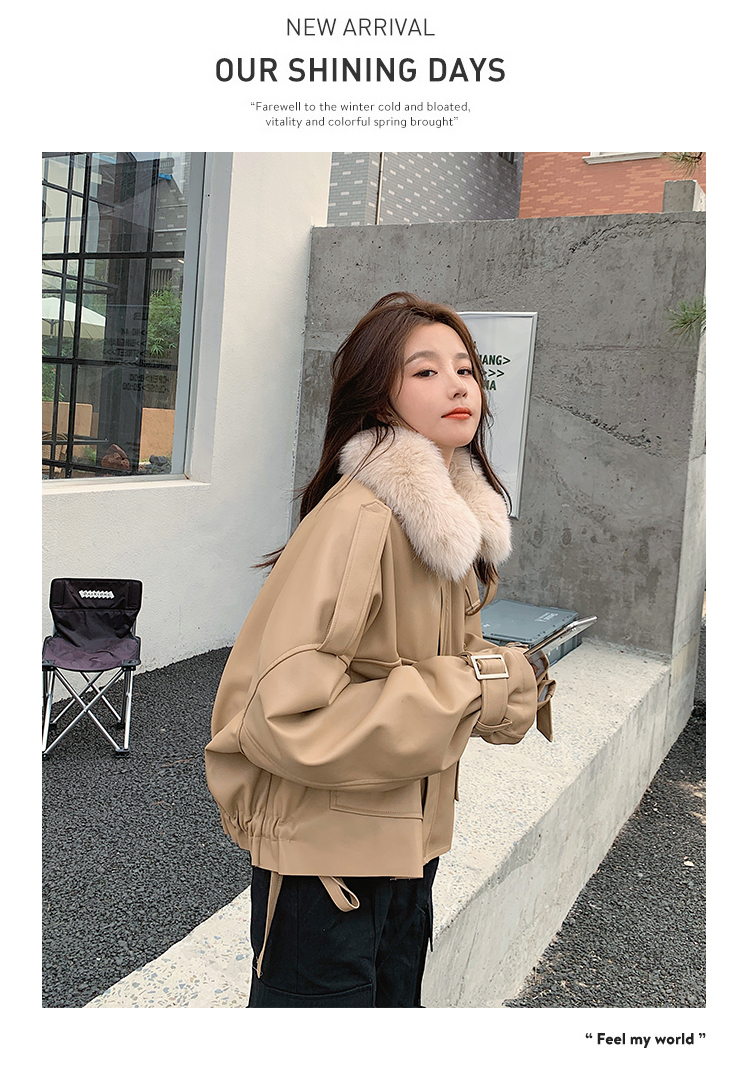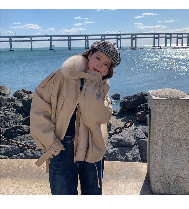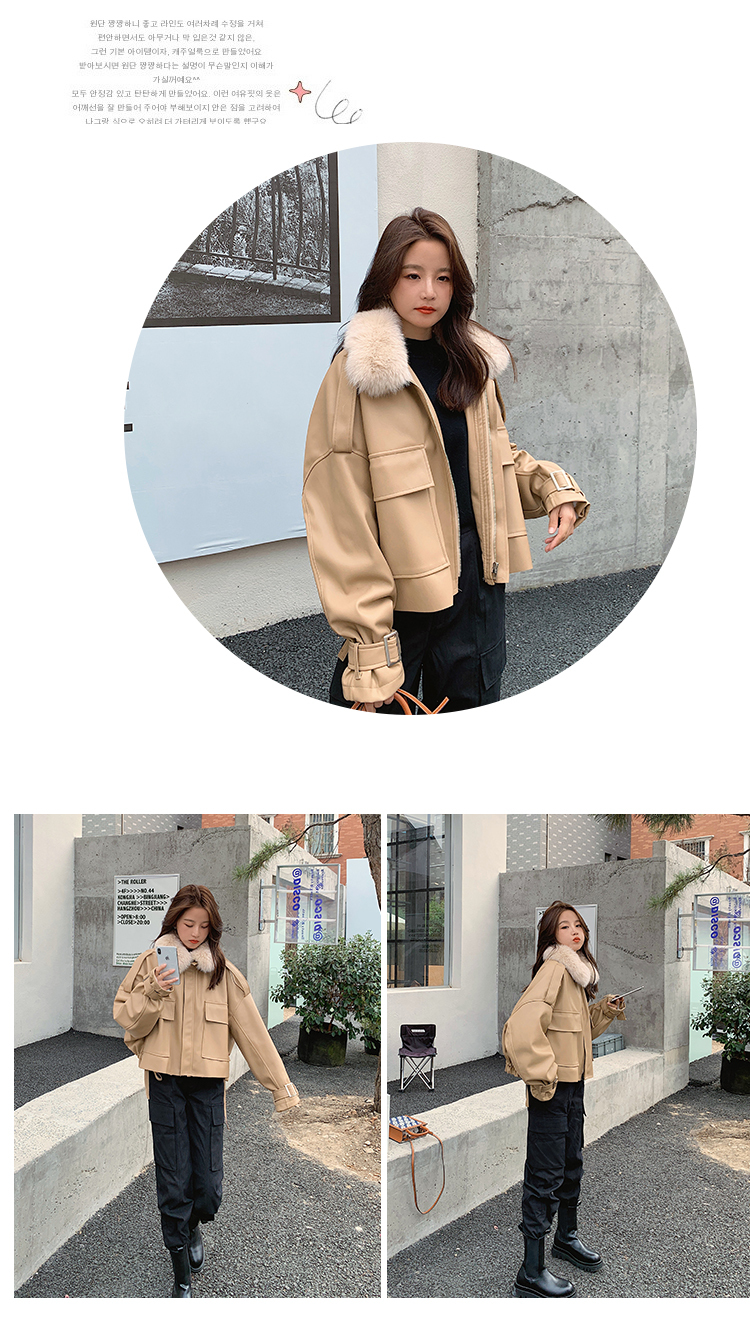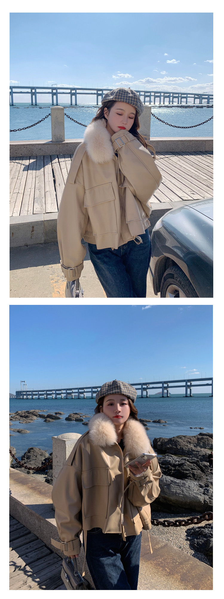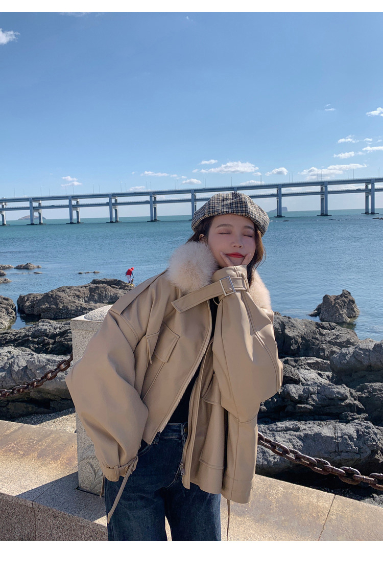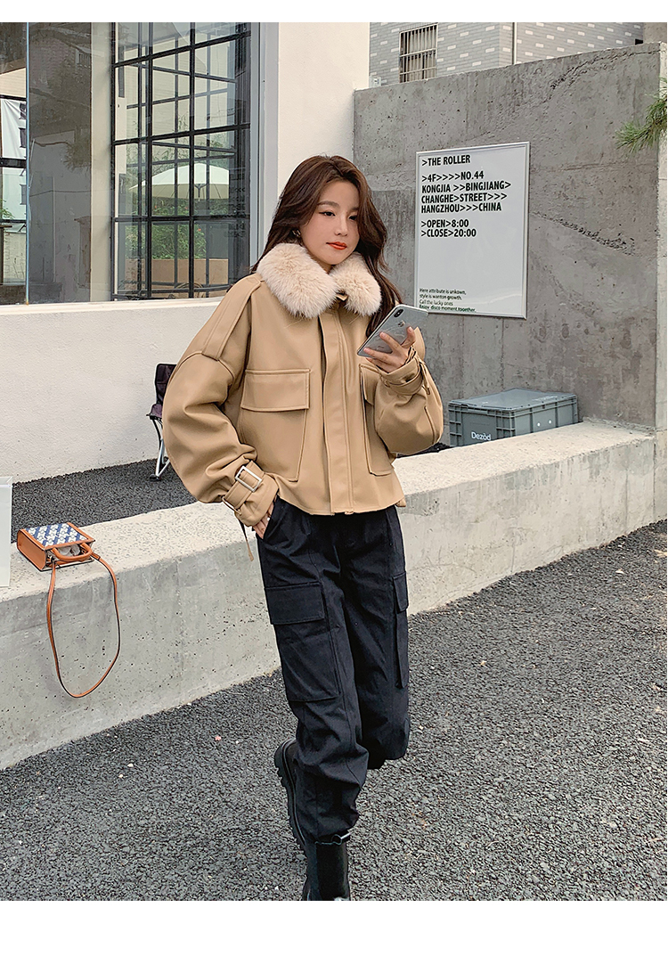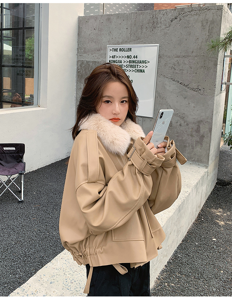 🔺面料:外層皮革(防潑水)+仿貉子毛領(可拆)+內刷仿兔毛絨