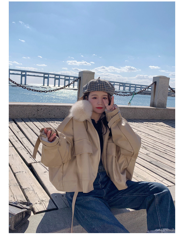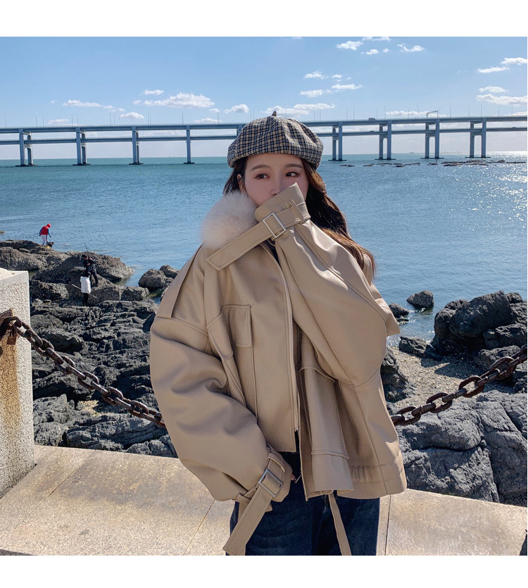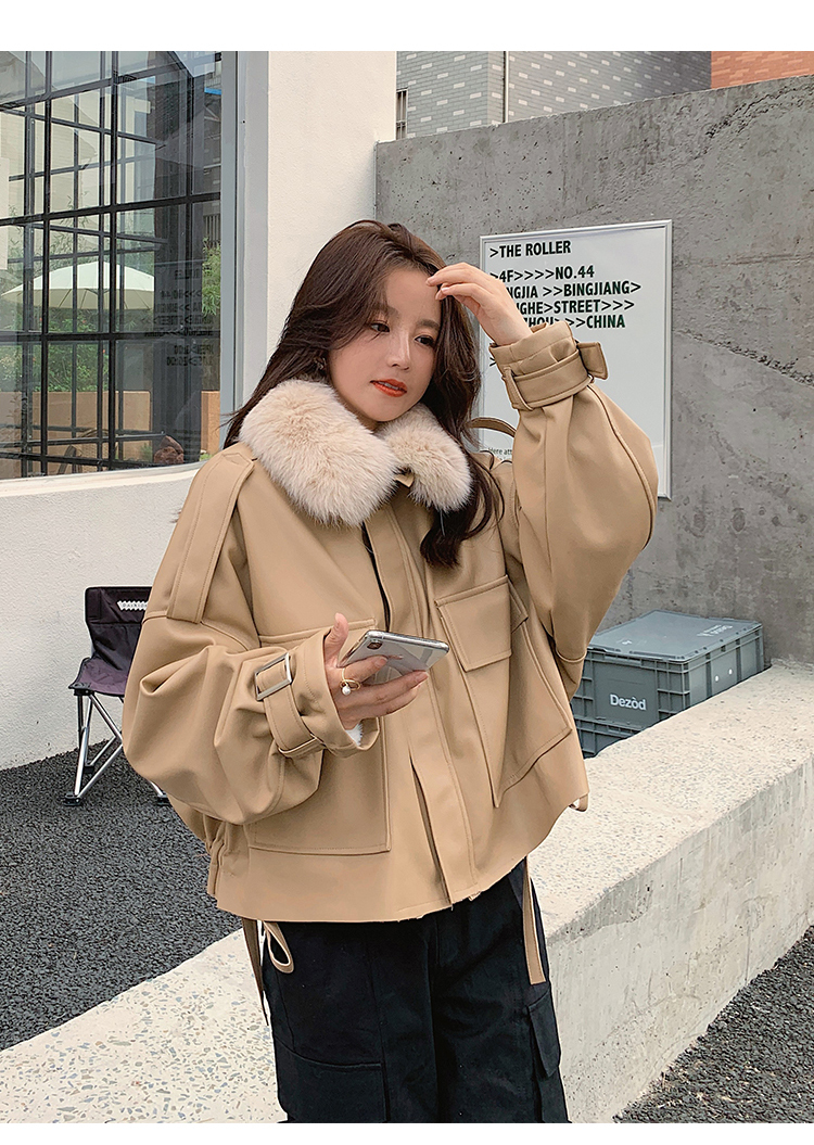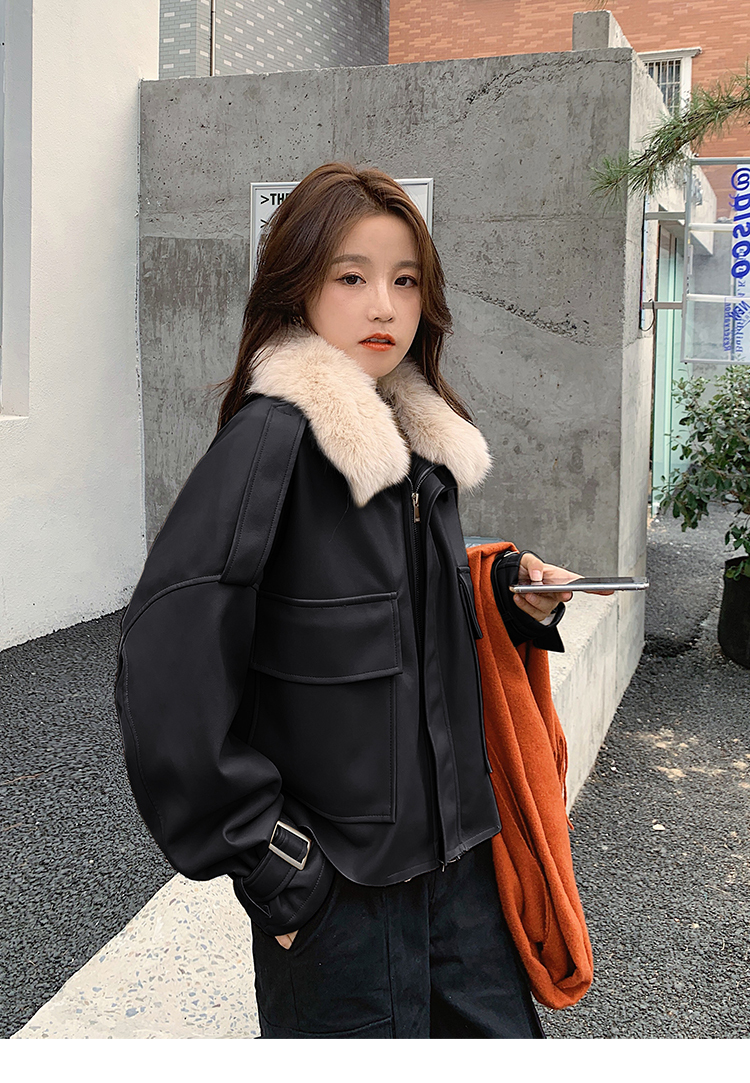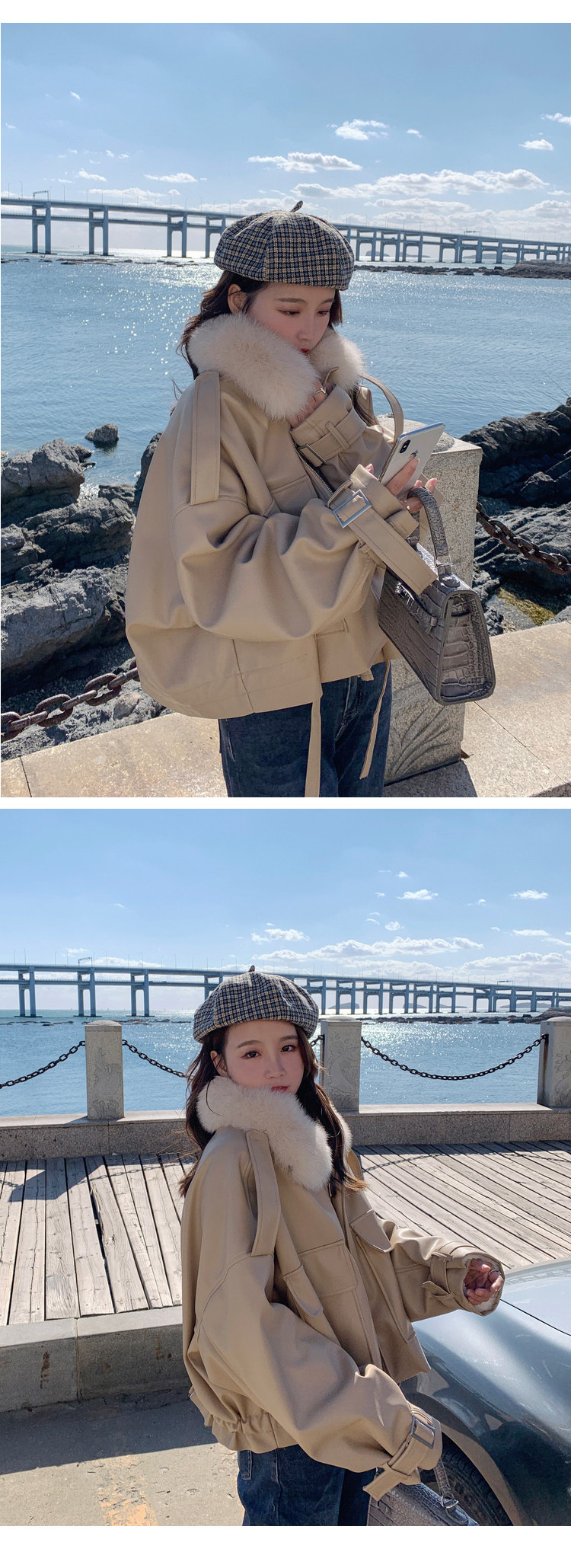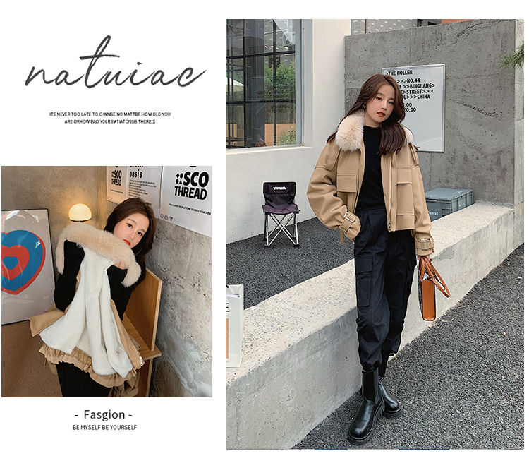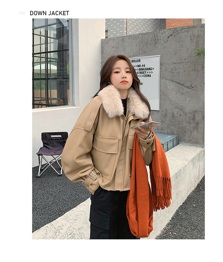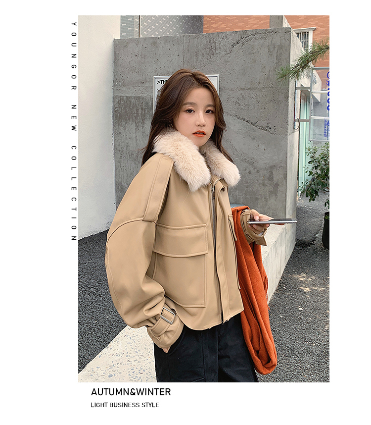 🔺面料:外層皮革(防潑水)+仿貉子毛領(可拆)+內刷仿兔毛絨