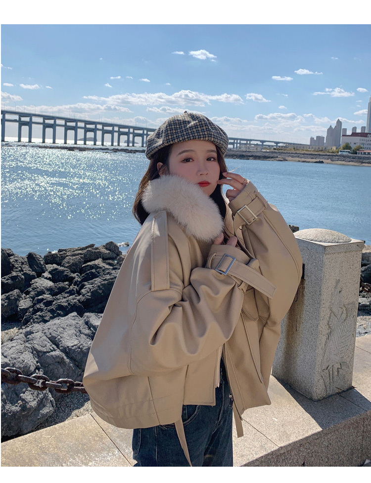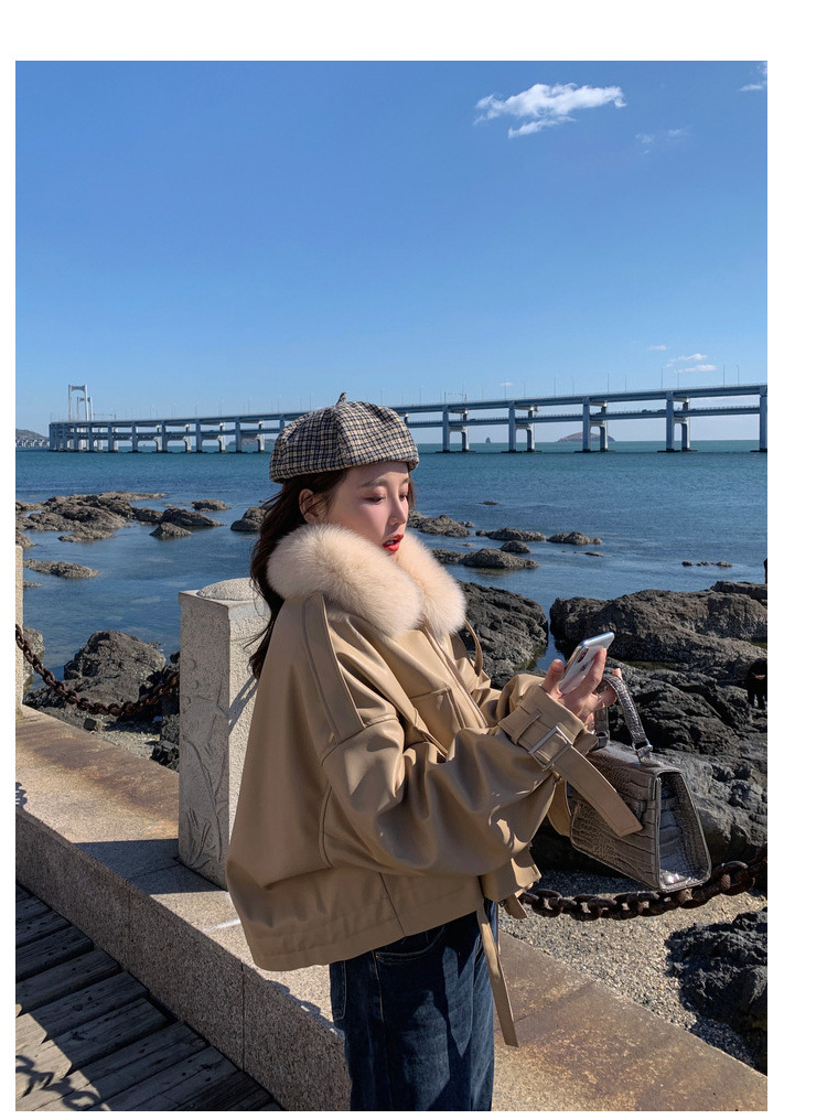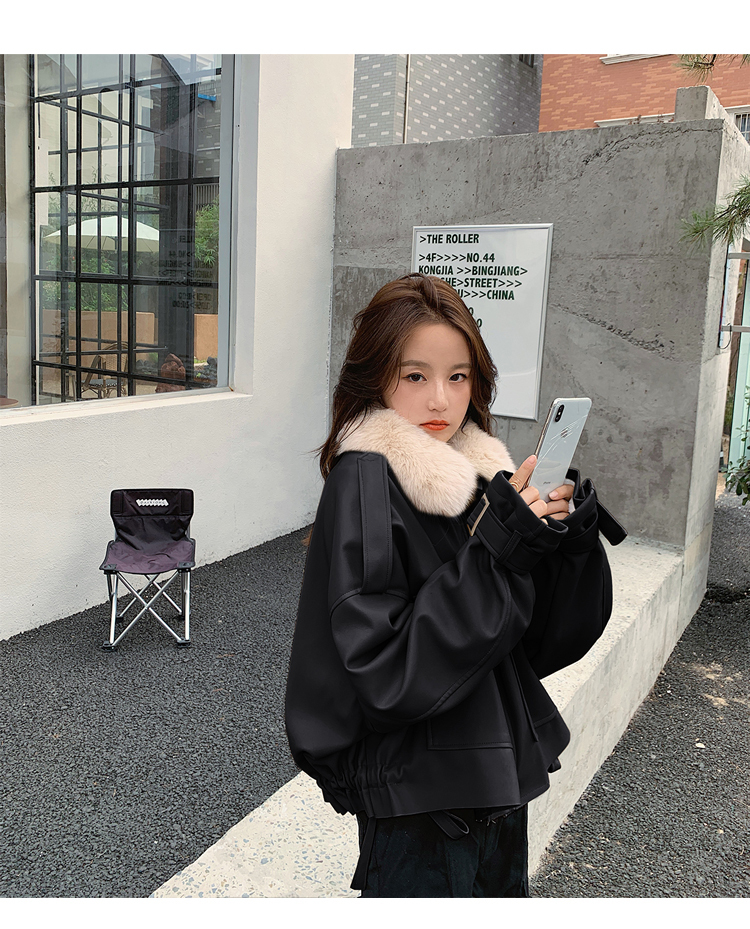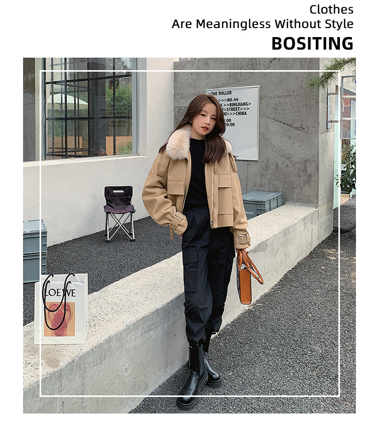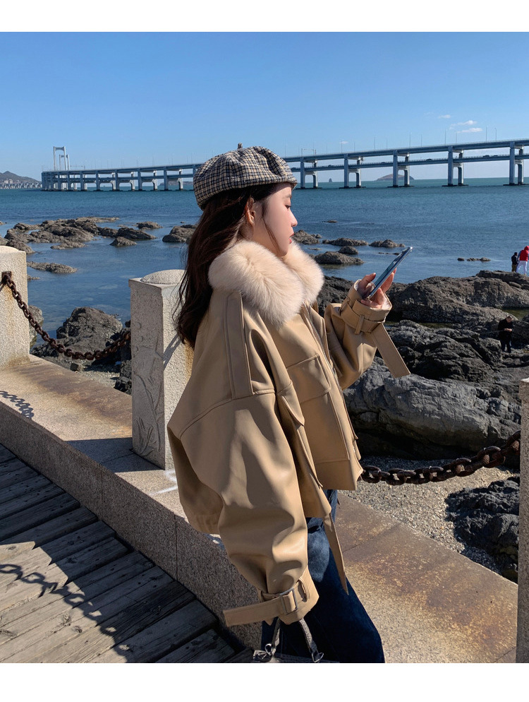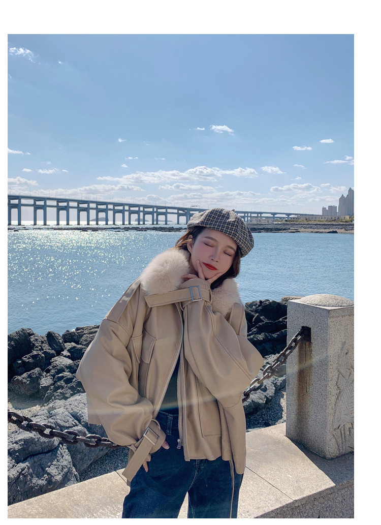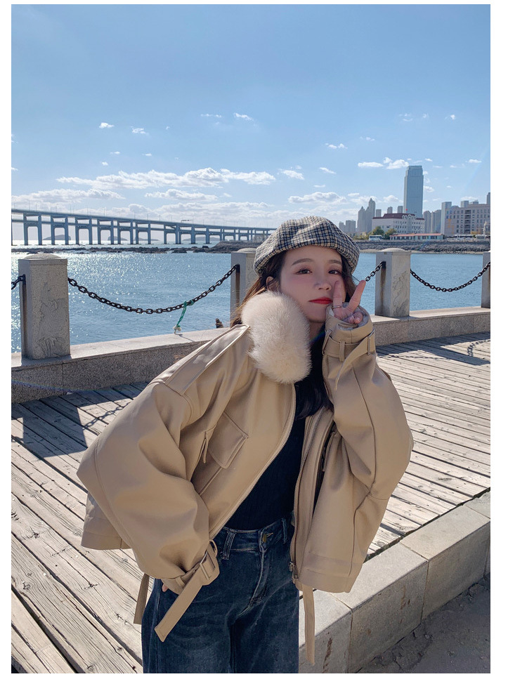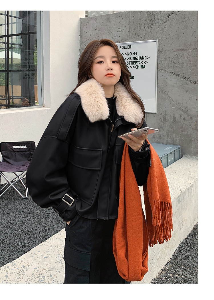 🔺面料:外層皮革(防潑水)+仿貉子毛領(可拆)+內刷仿兔毛絨