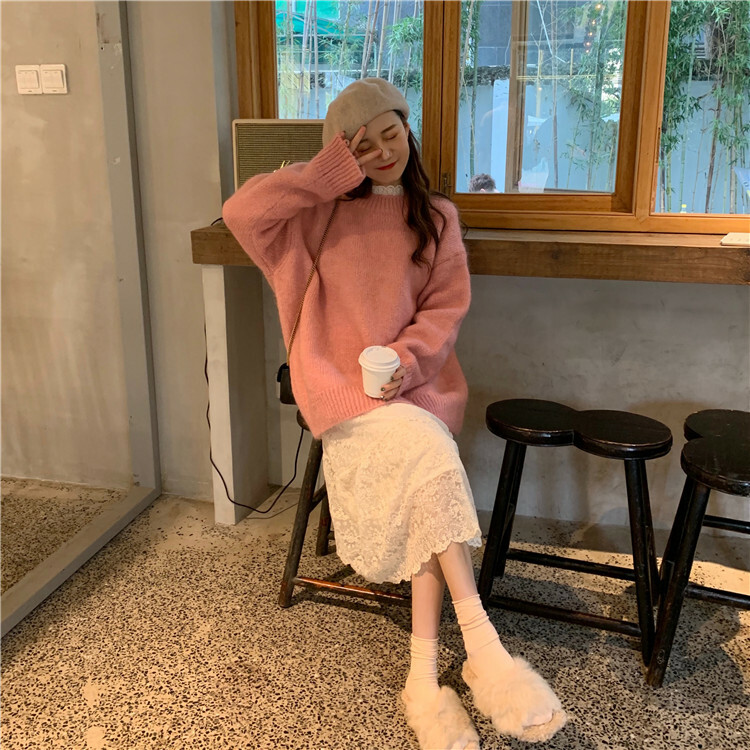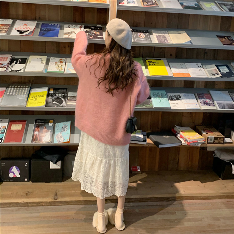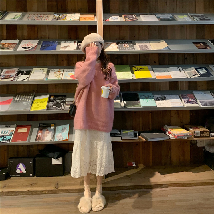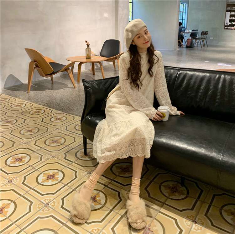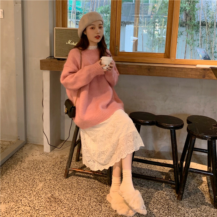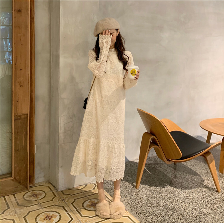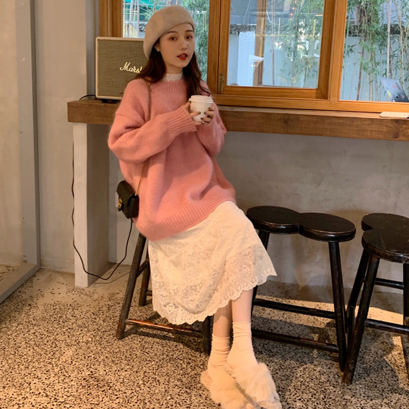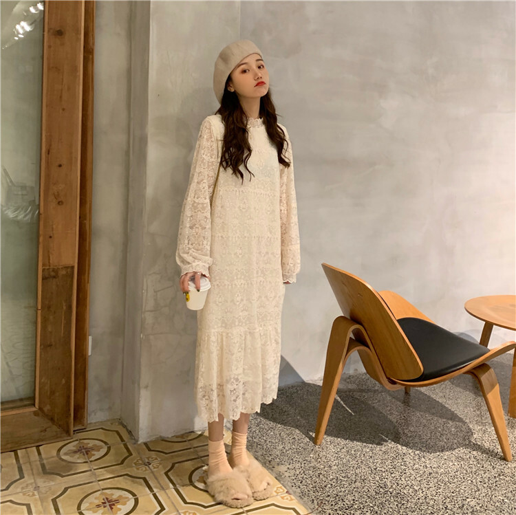 限量特惠|甜美純色針織衫+蕾絲鈎花連衣裙兩件式套裝組(11FA339)