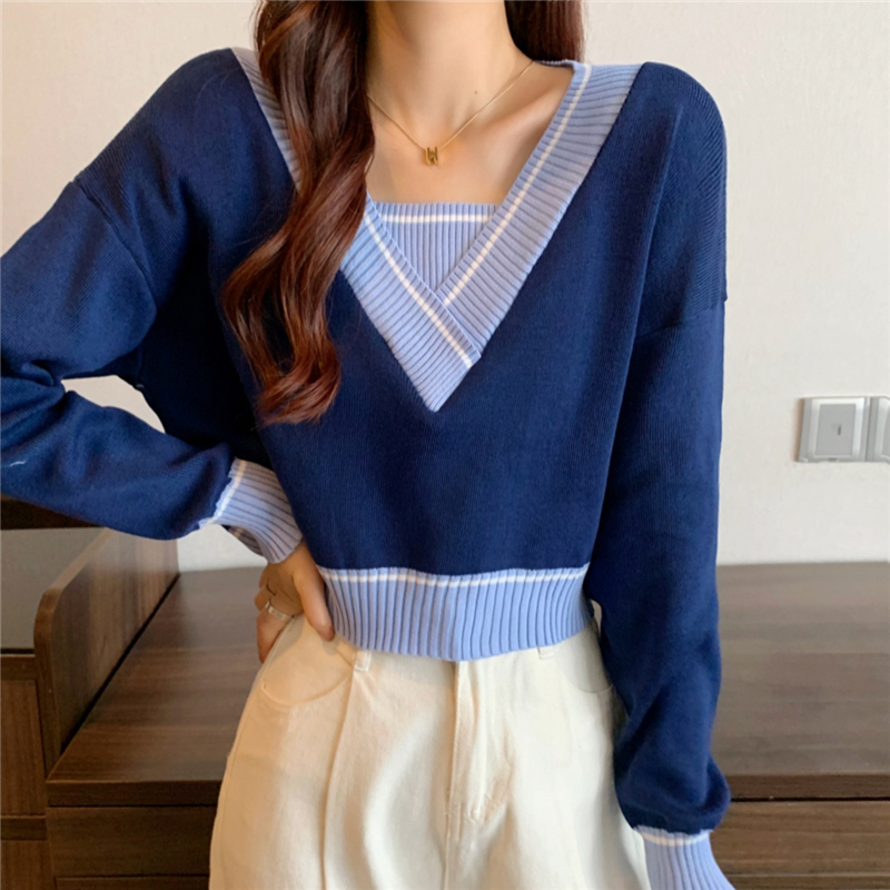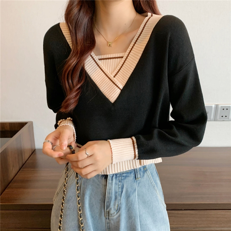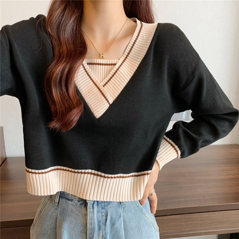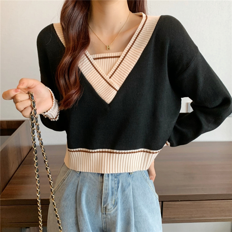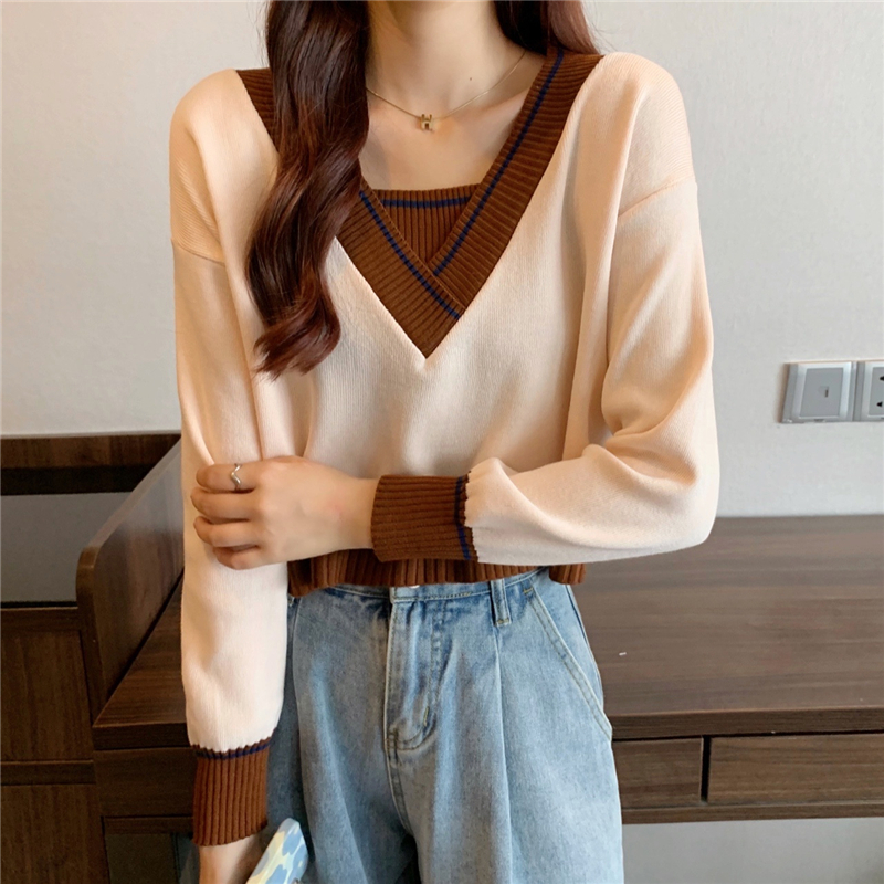 限量特惠|個性舒適撞色拼接假兩件式針織衫-4色(11FA381)