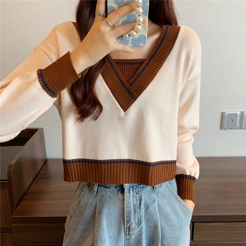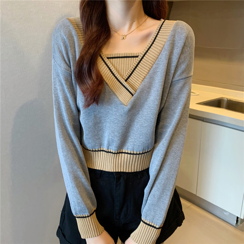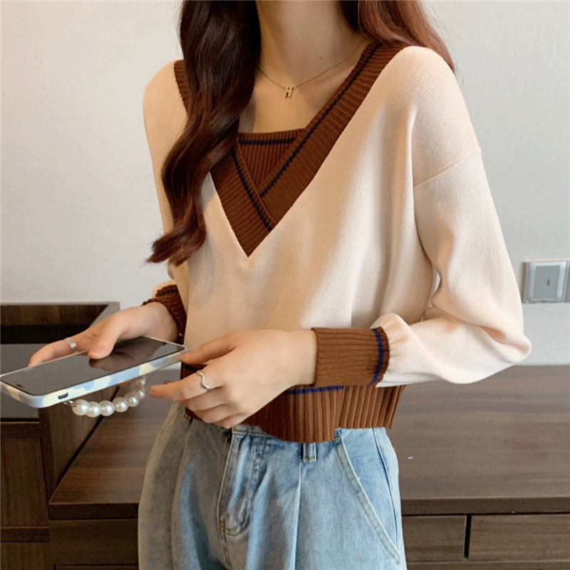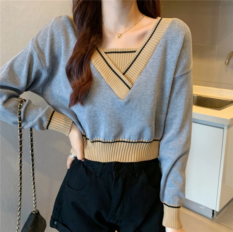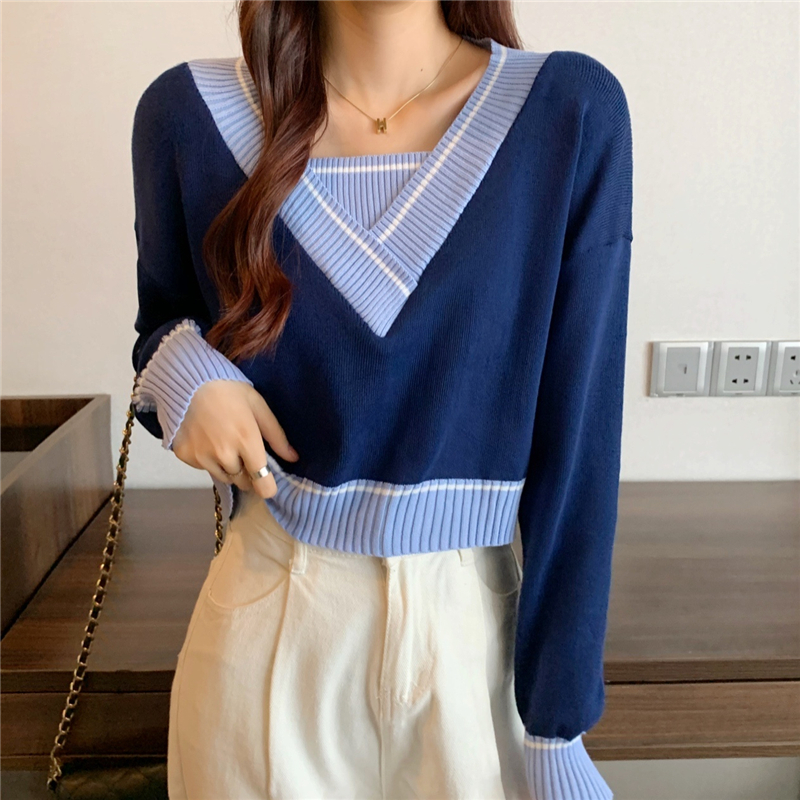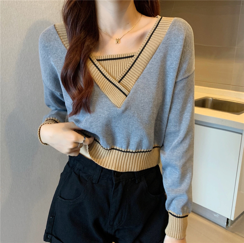 限量特惠|個性舒適撞色拼接假兩件式針織衫-4色(11FA381)