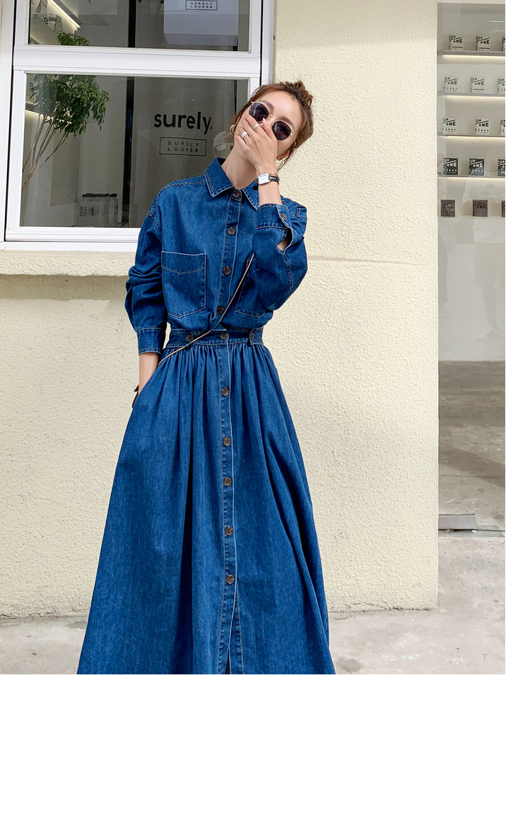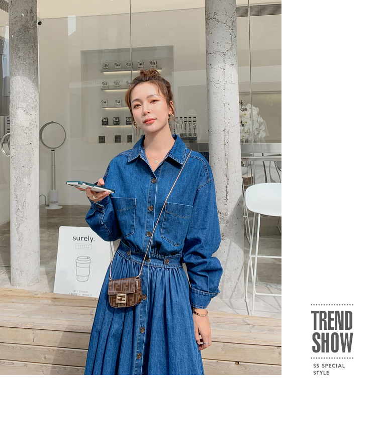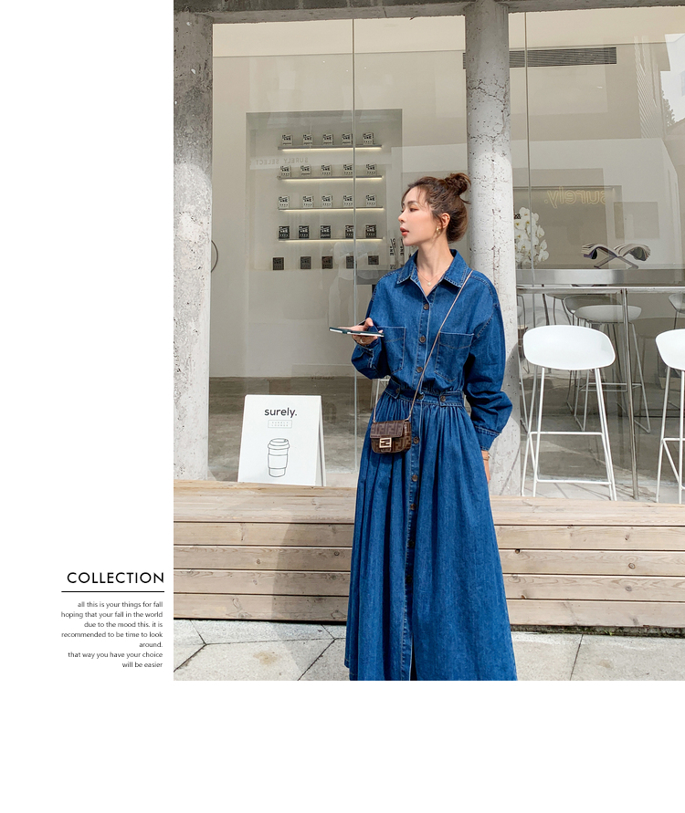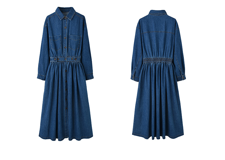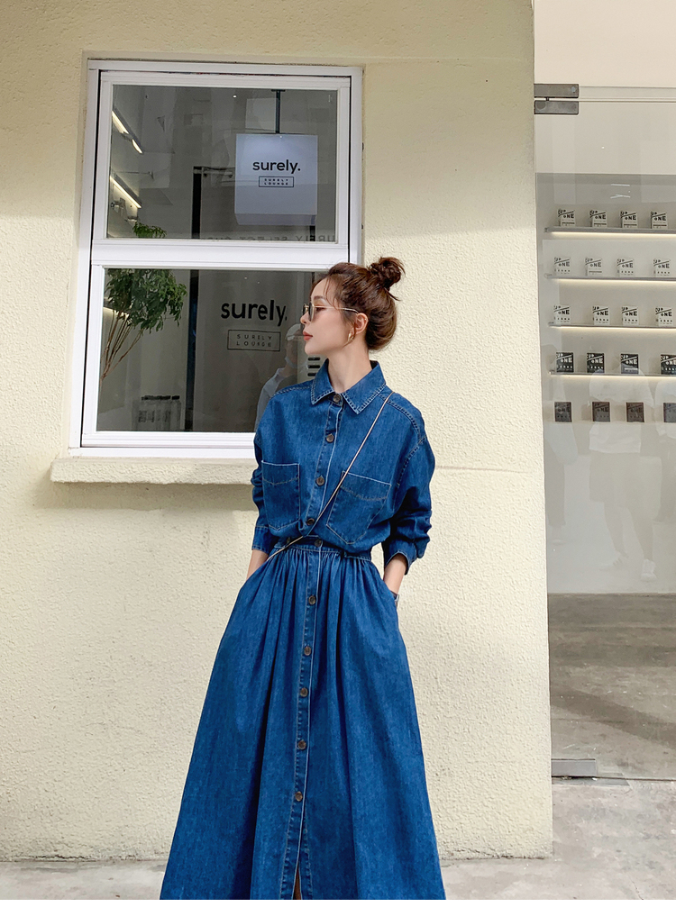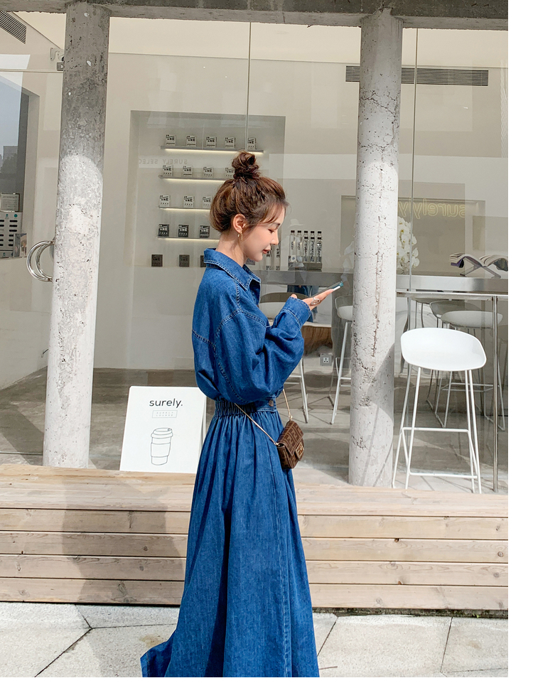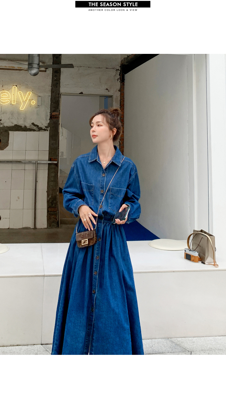 獨家訂製│韓系氣質感翻領收腰牛仔連衣裙(11H4923)