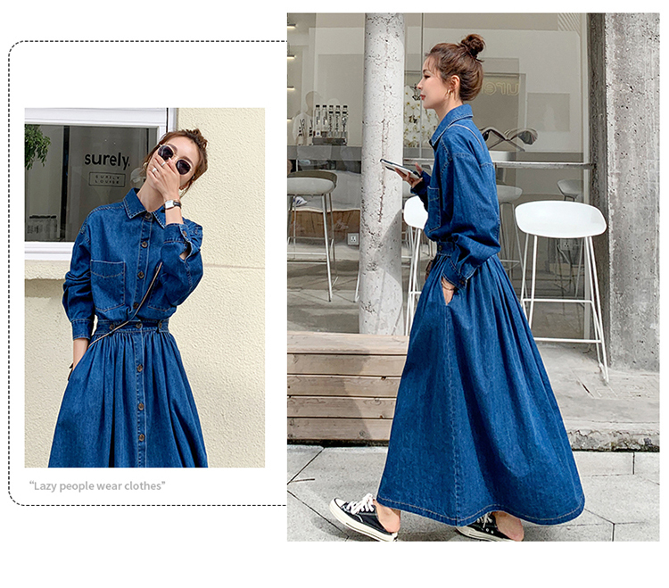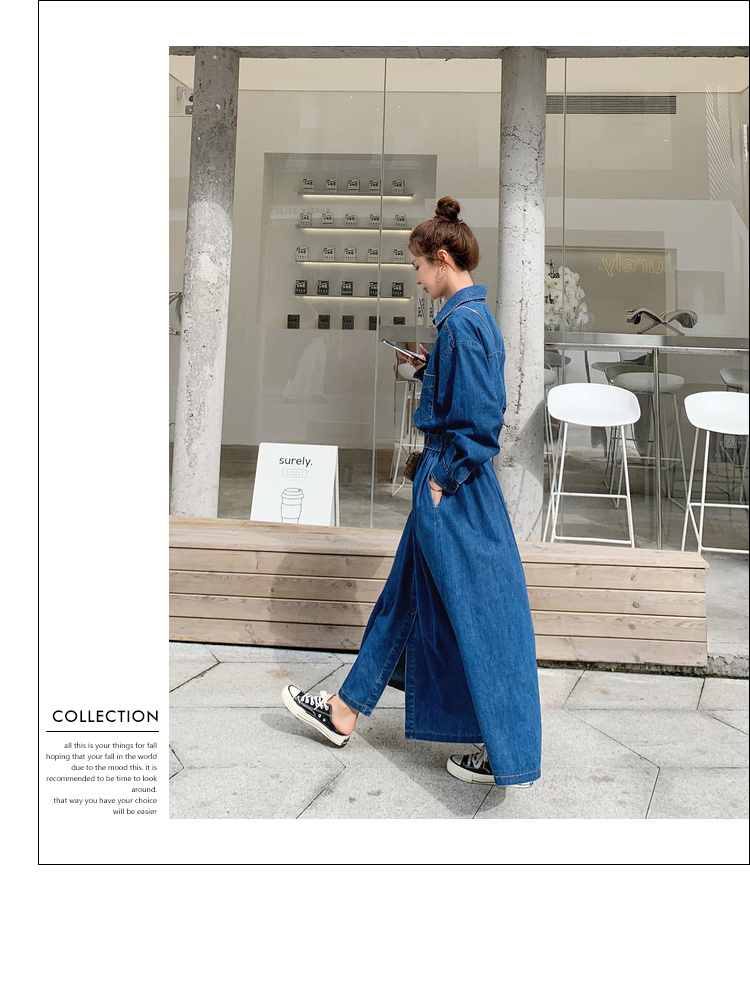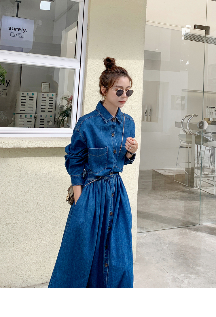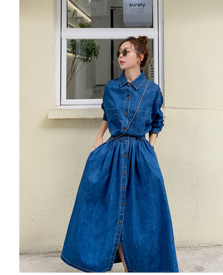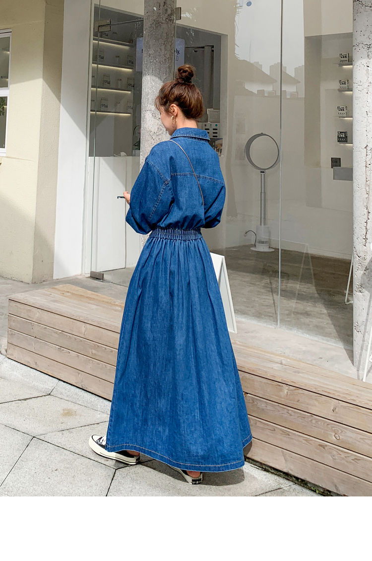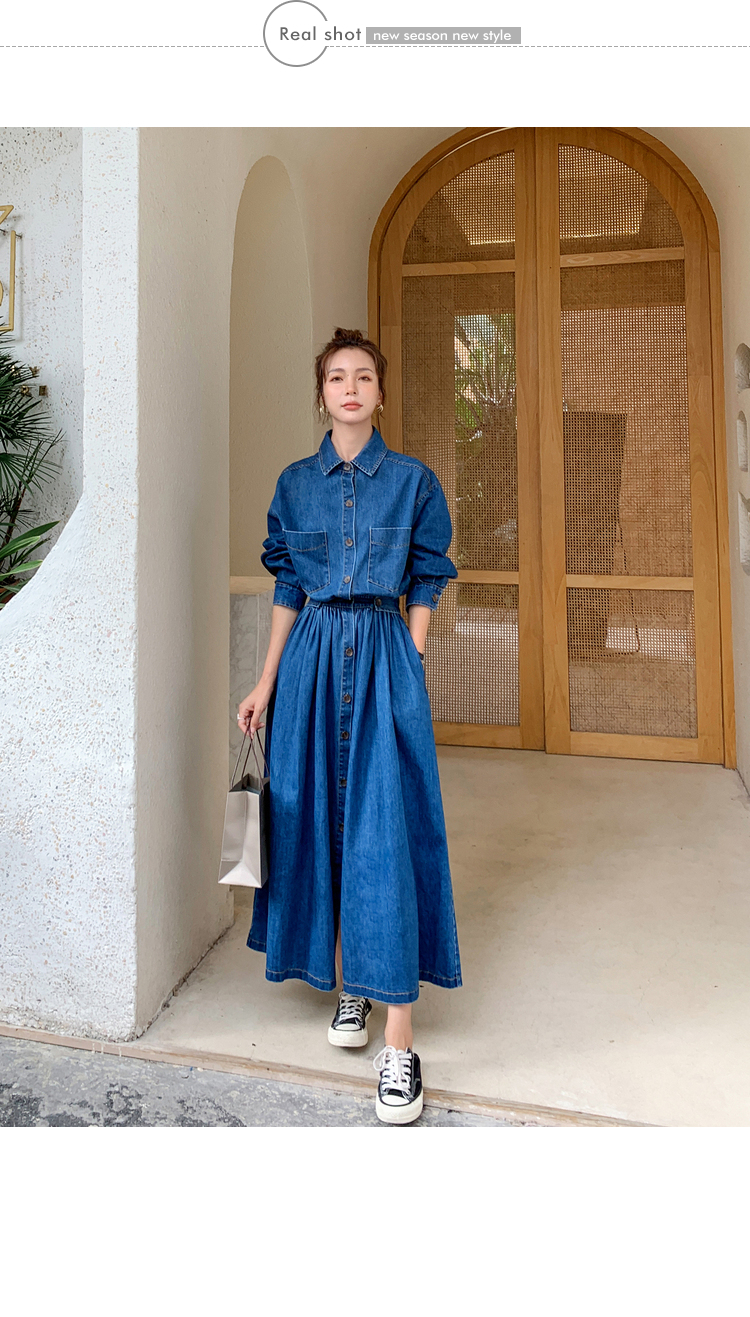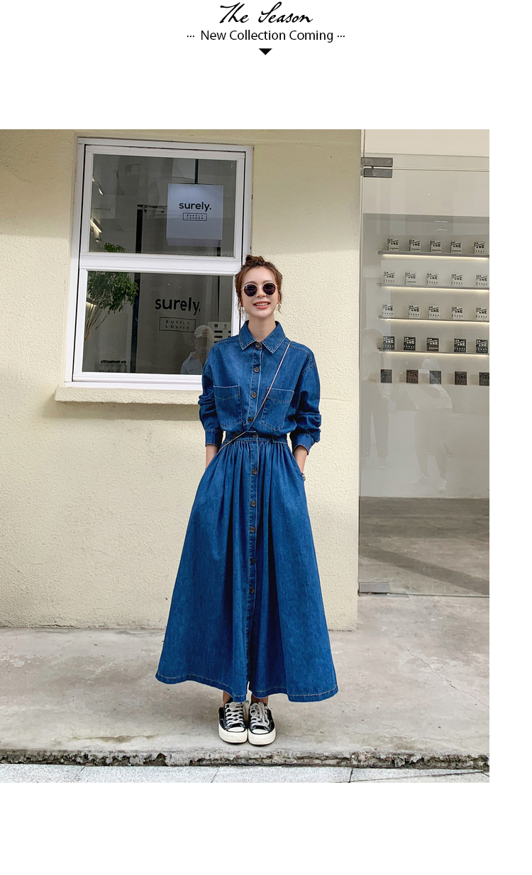 獨家訂製│韓系氣質感翻領收腰牛仔連衣裙(11H4923)