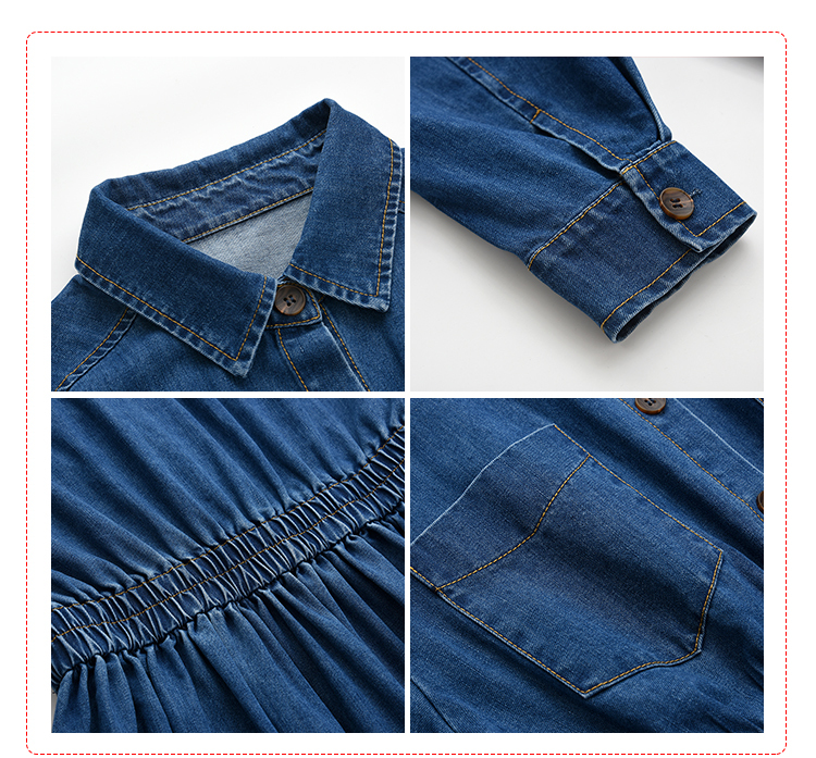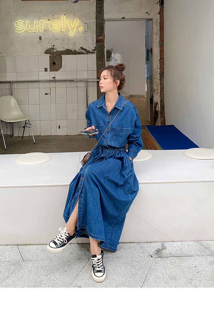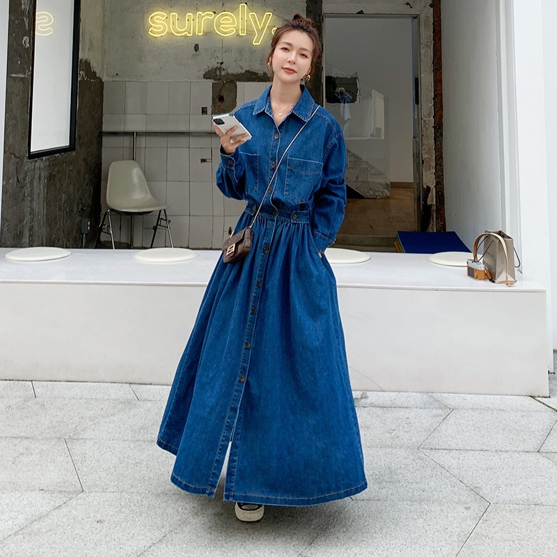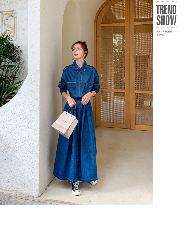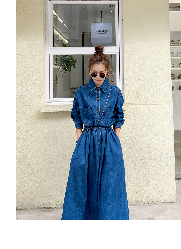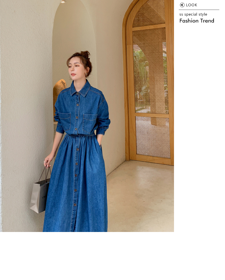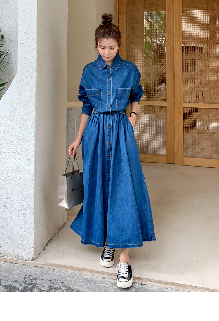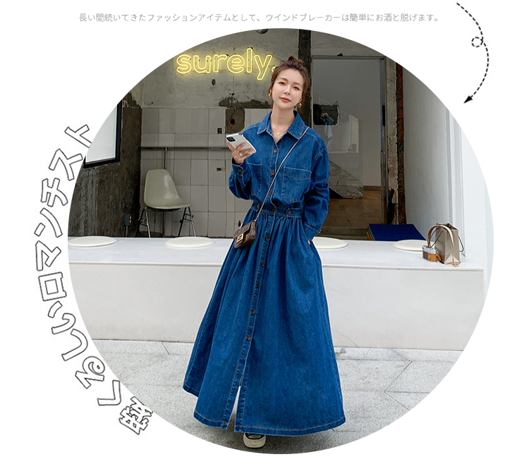 獨家訂製│韓系氣質感翻領收腰牛仔連衣裙(11H4923)