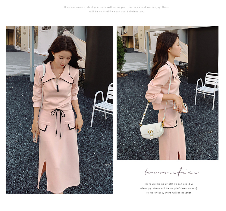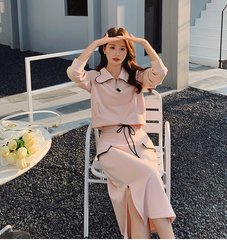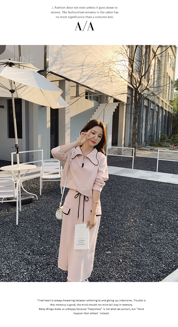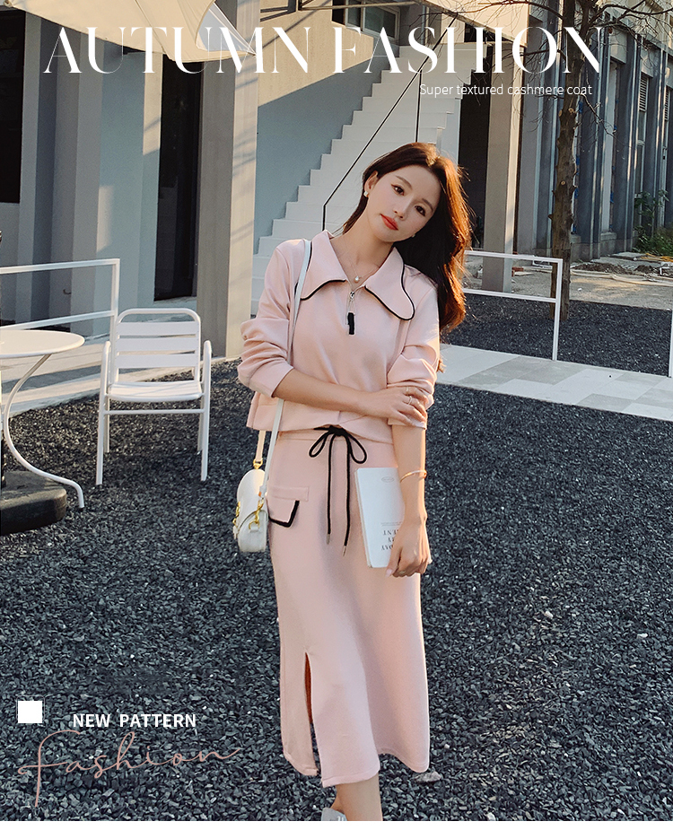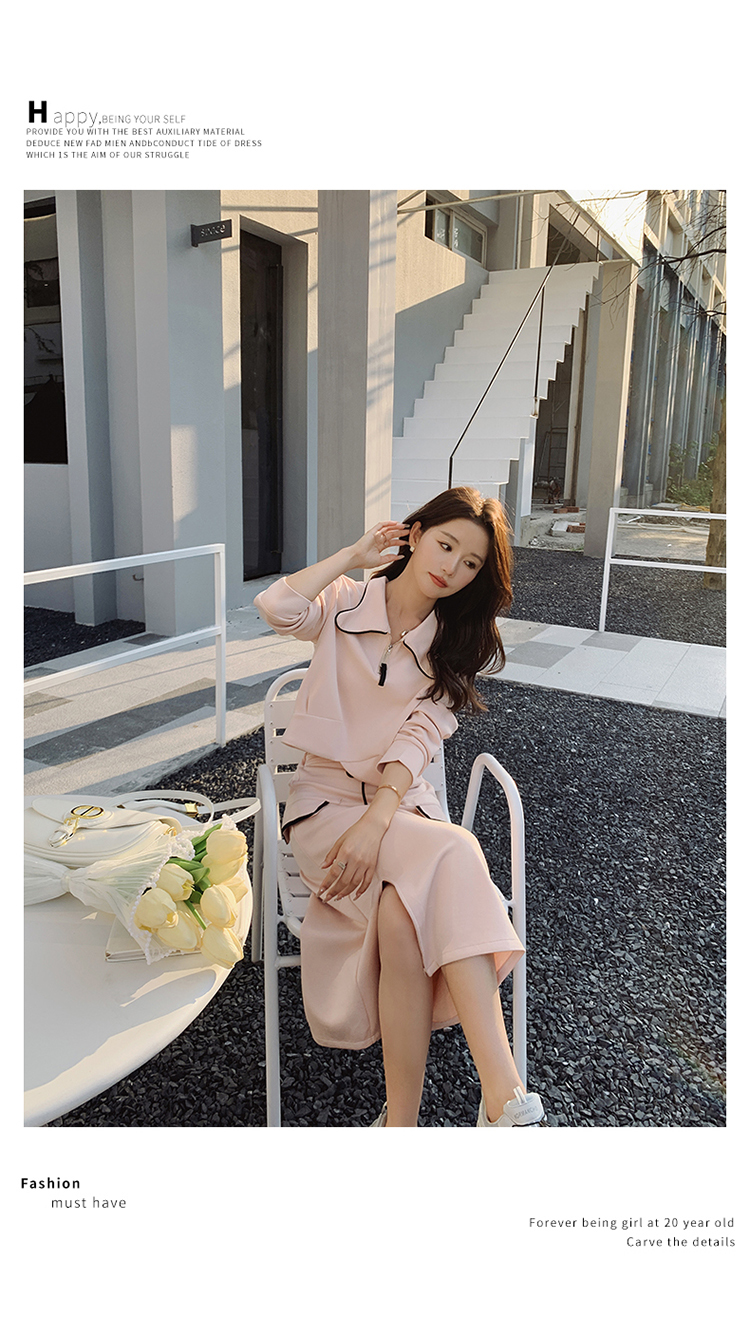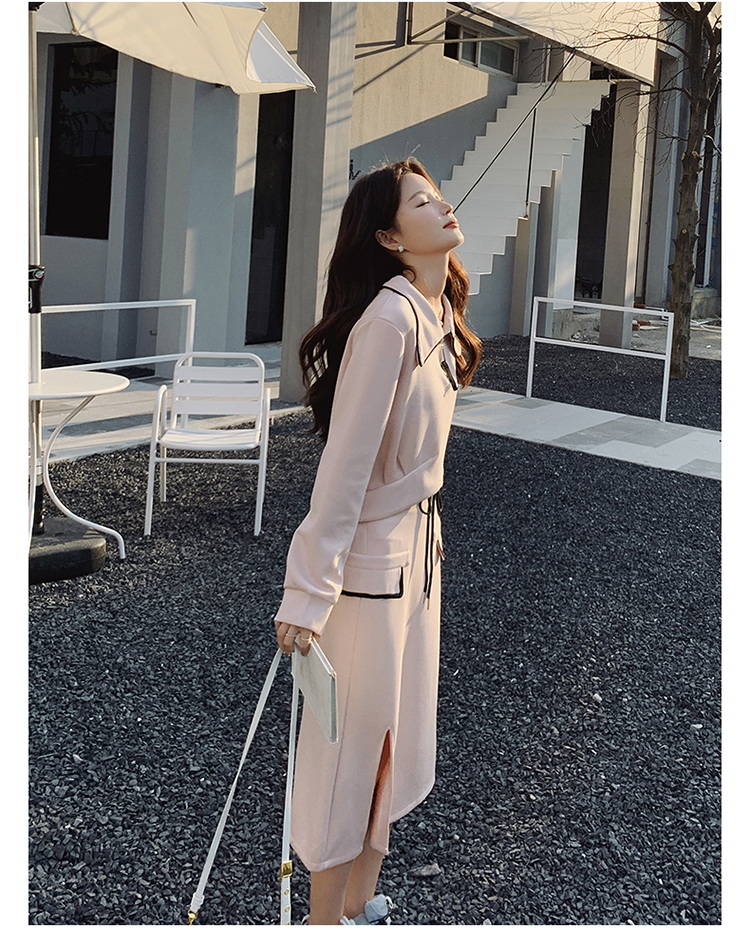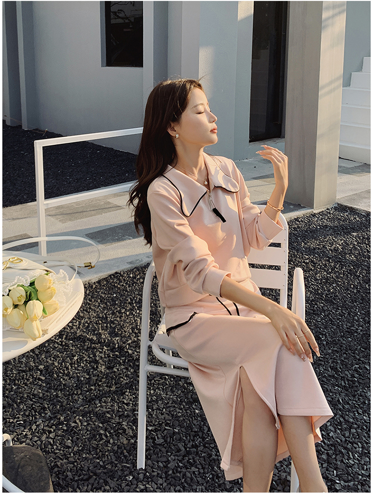 獨家訂製│韓系氣質翻領不規則上衣+開叉A字裙兩件式連衣裙(11H4933)