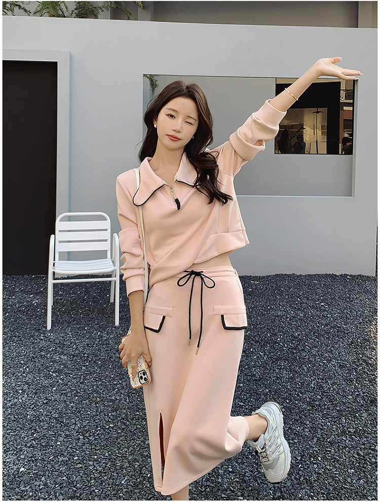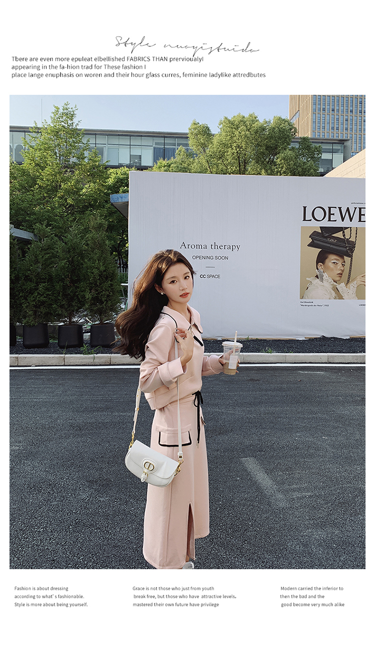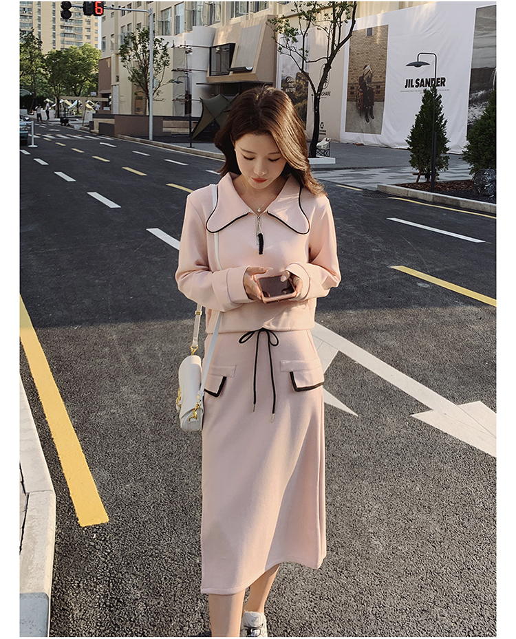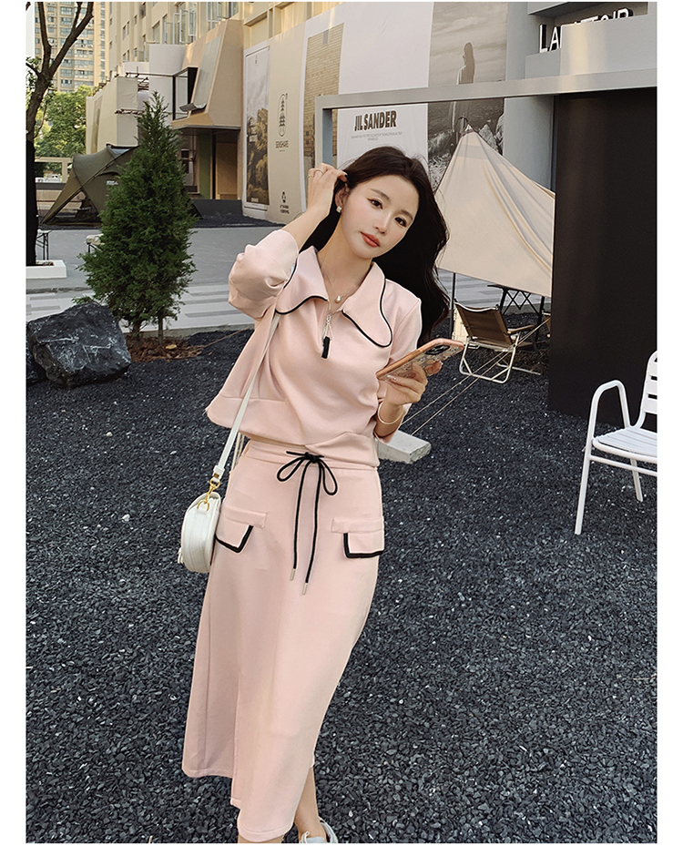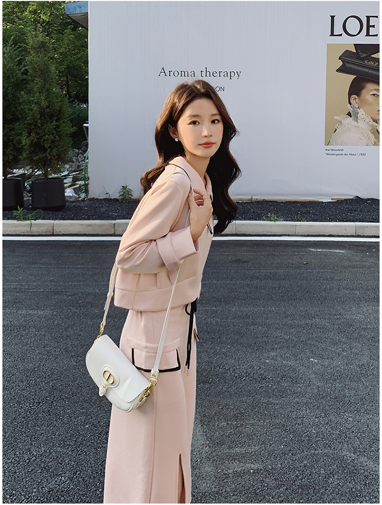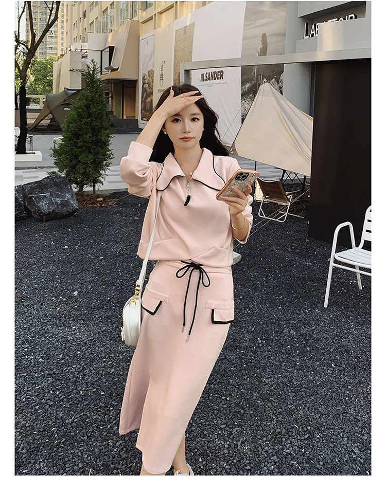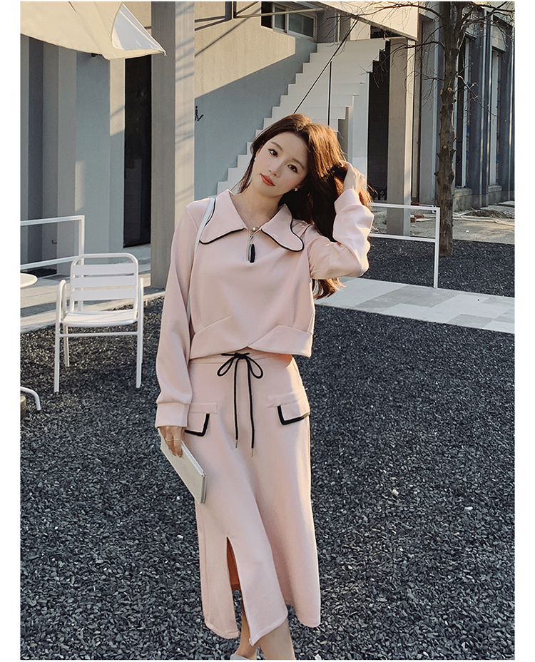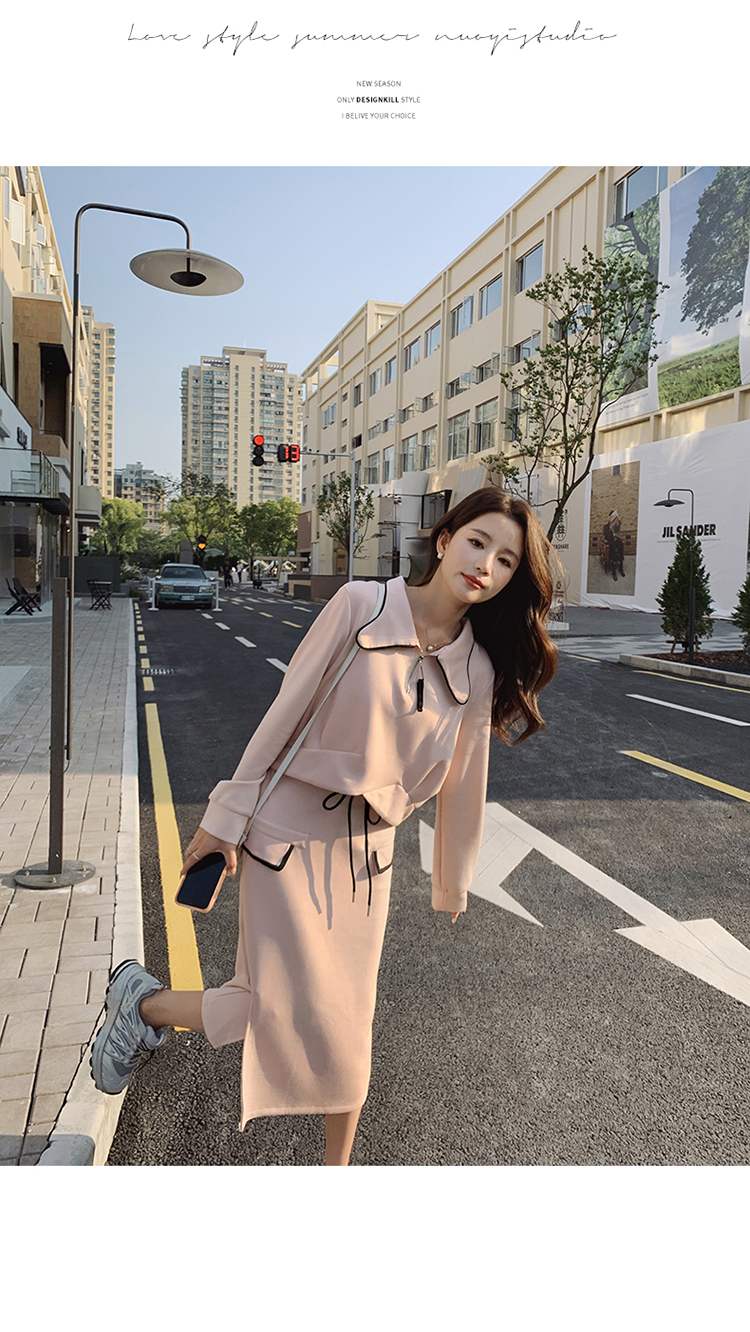 獨家訂製│韓系氣質翻領不規則上衣+開叉A字裙兩件式連衣裙(11H4933)