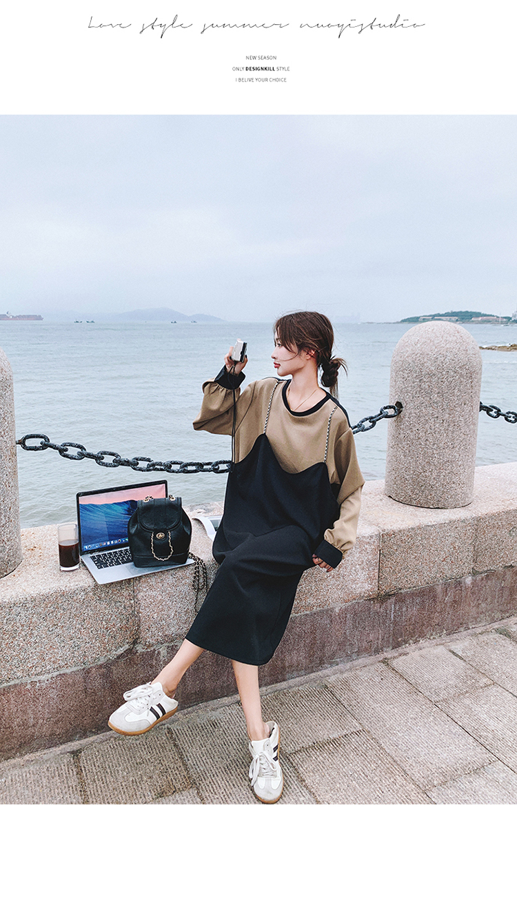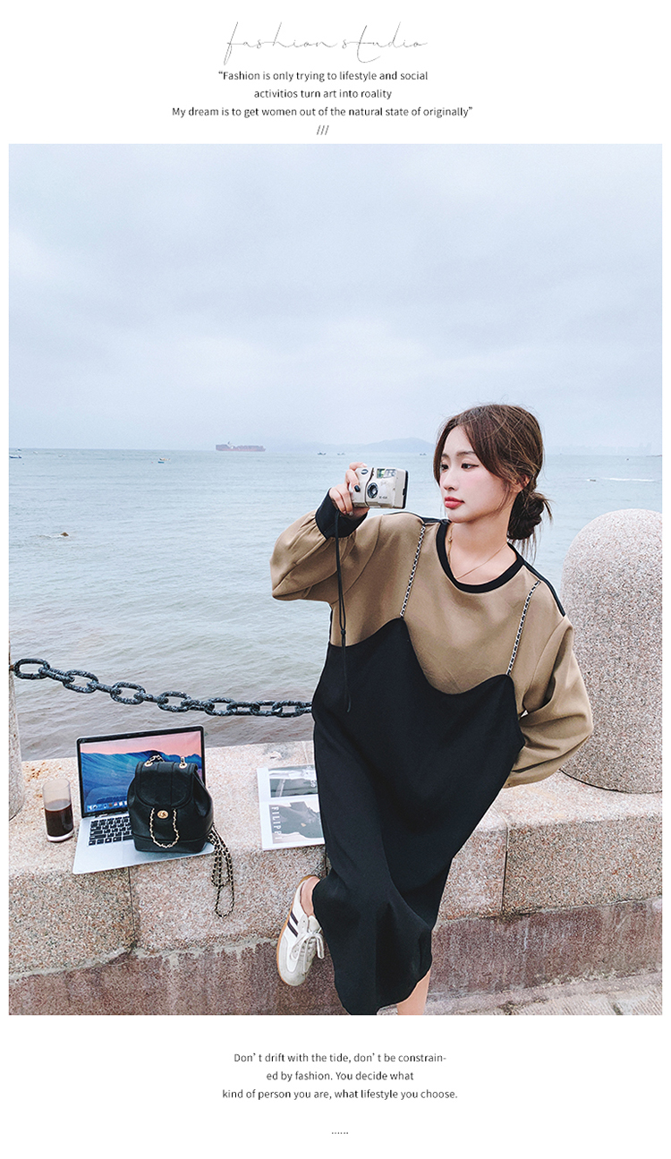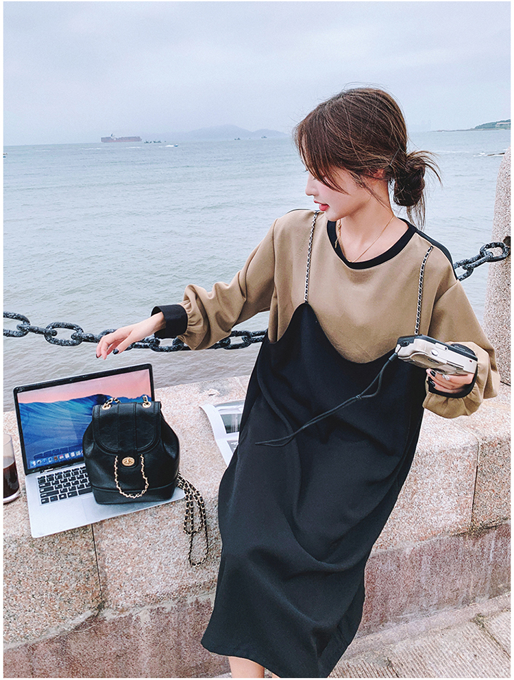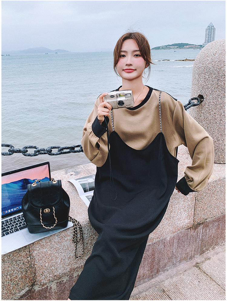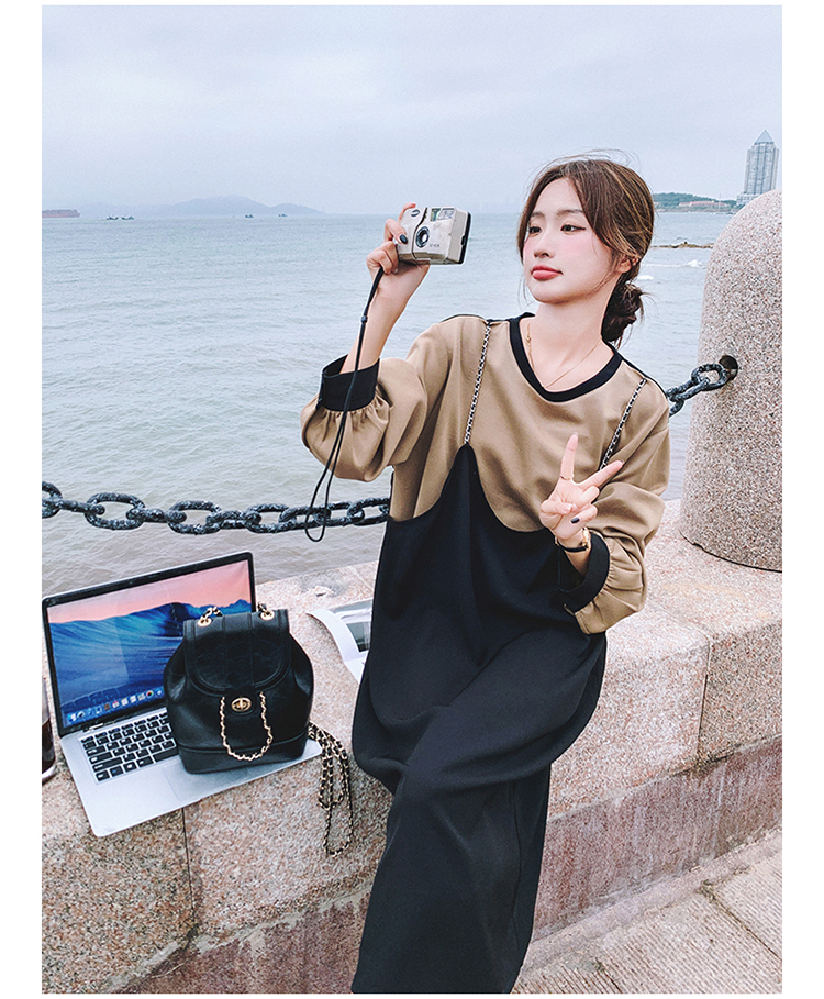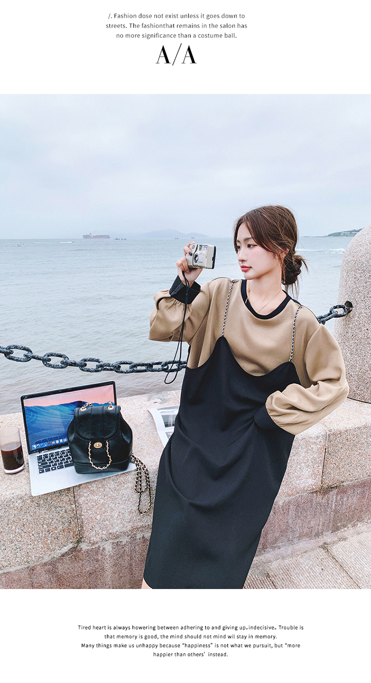 獨家訂製│韓系甜酷風拼接鍊條撞色連衣裙(11H5001)