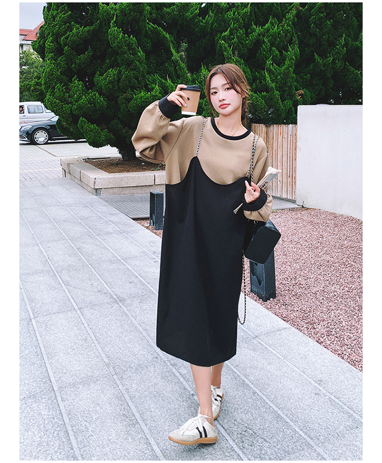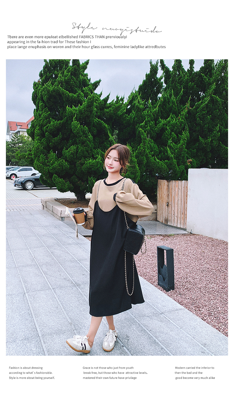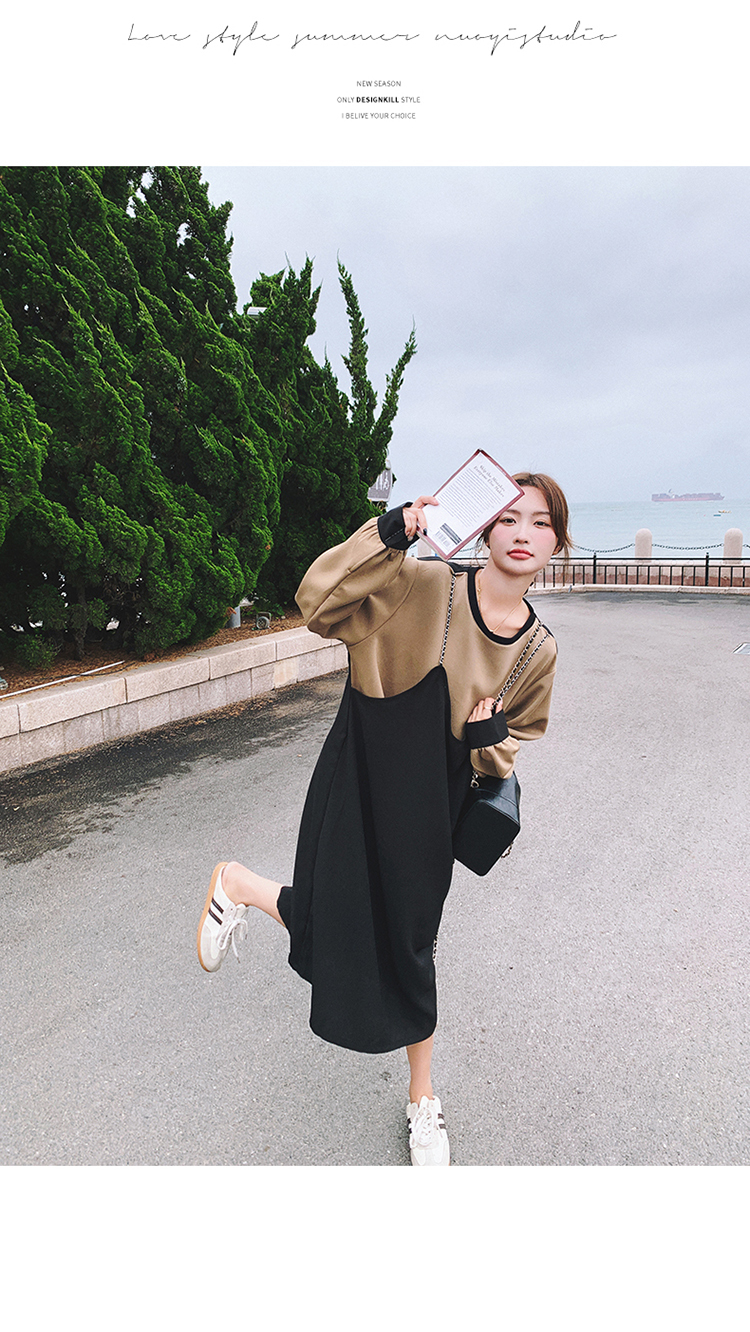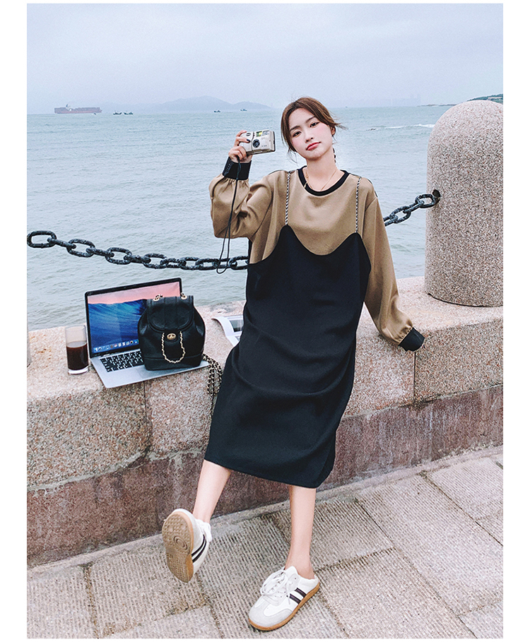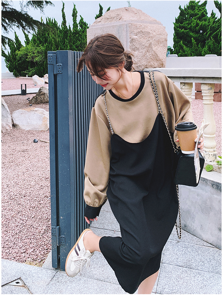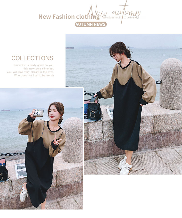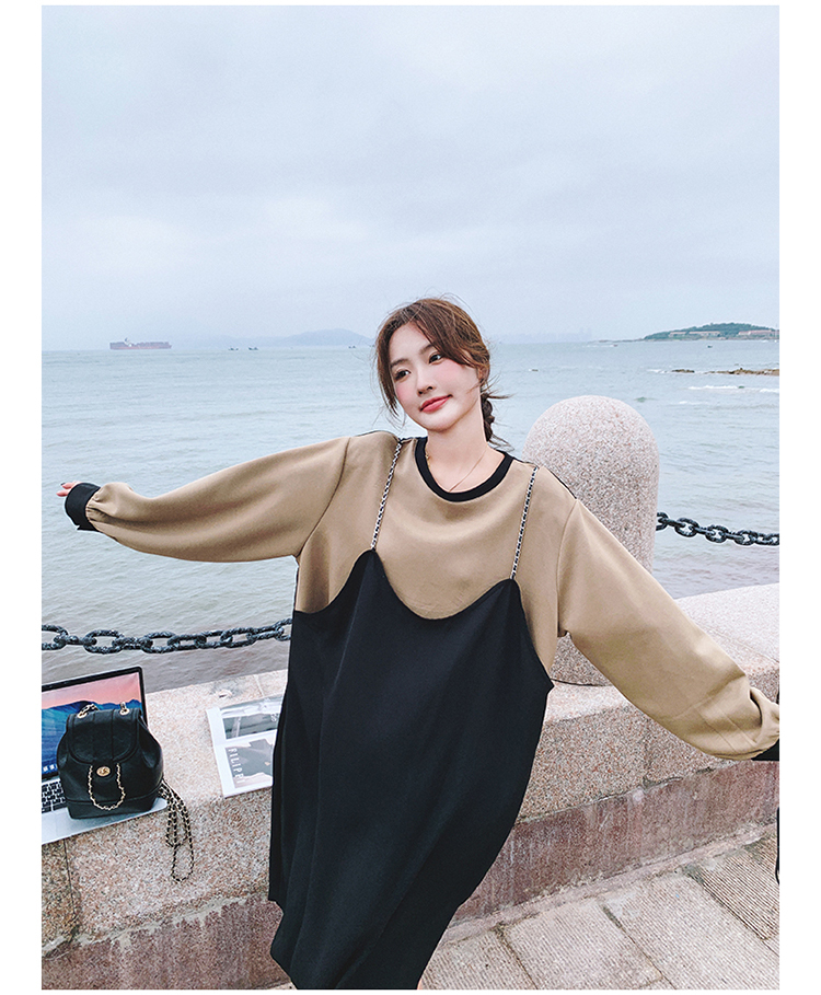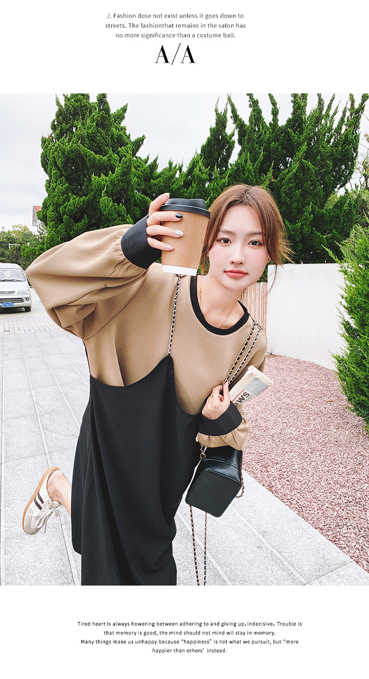 獨家訂製│韓系甜酷風拼接鍊條撞色連衣裙(11H5001)