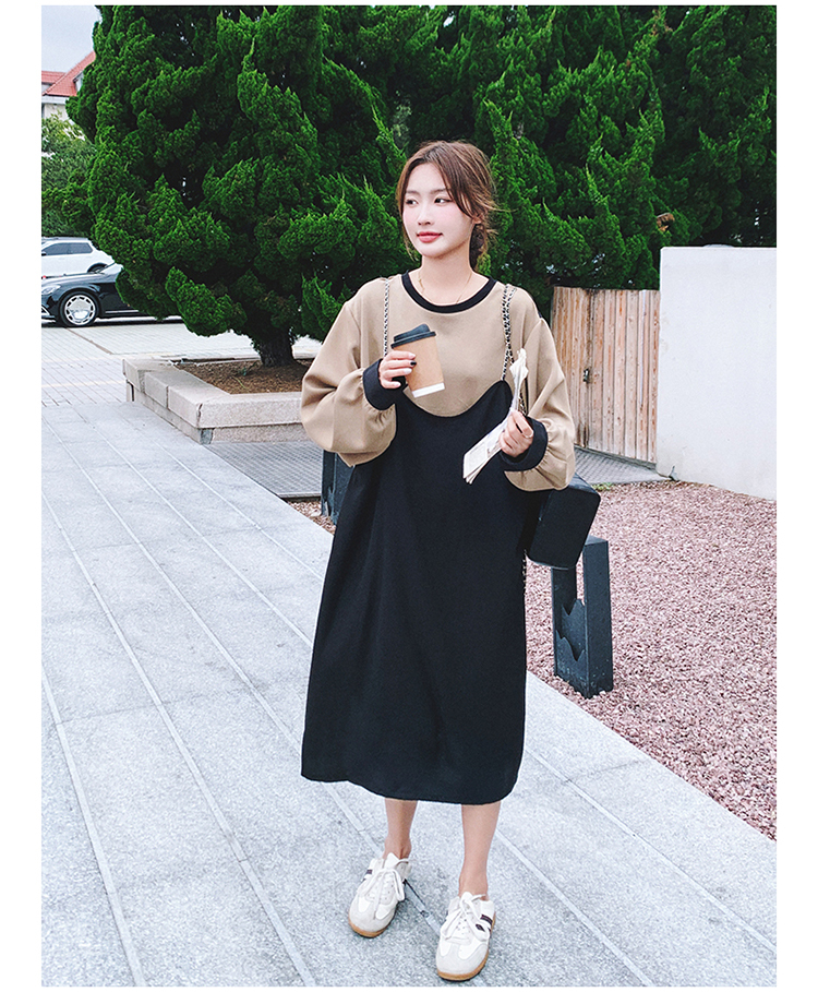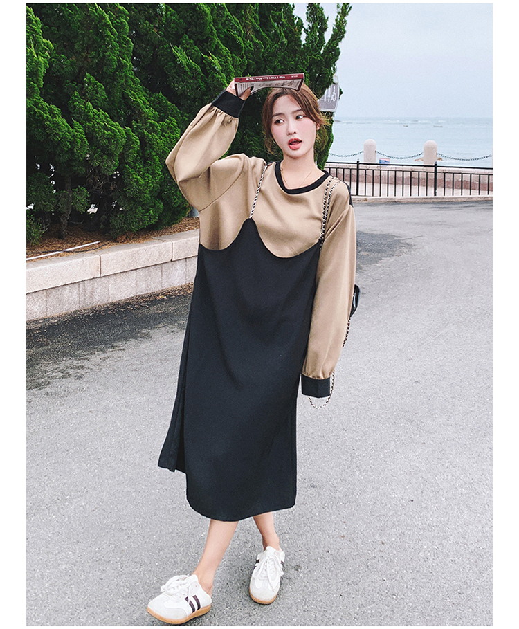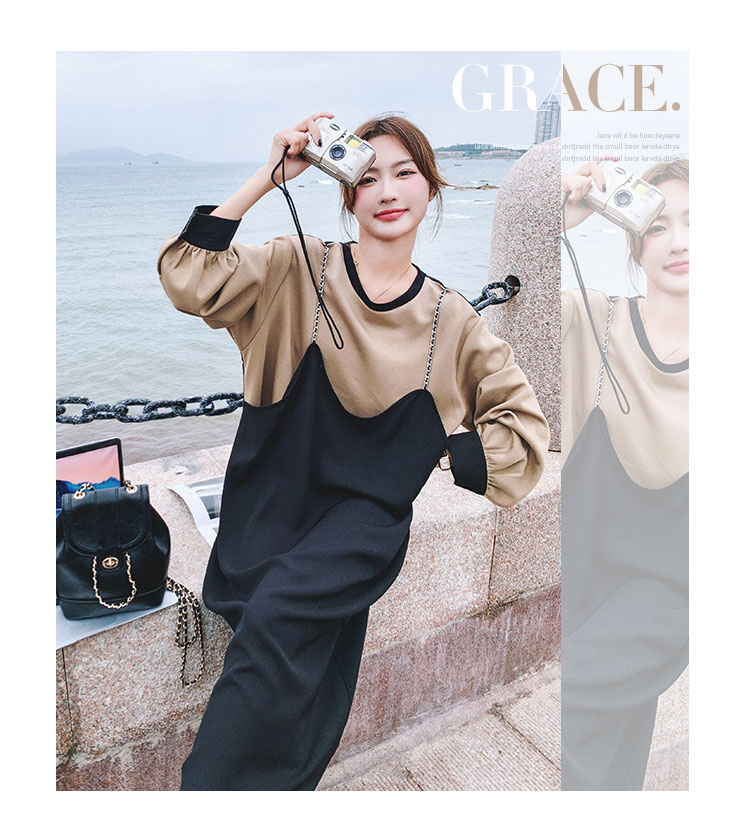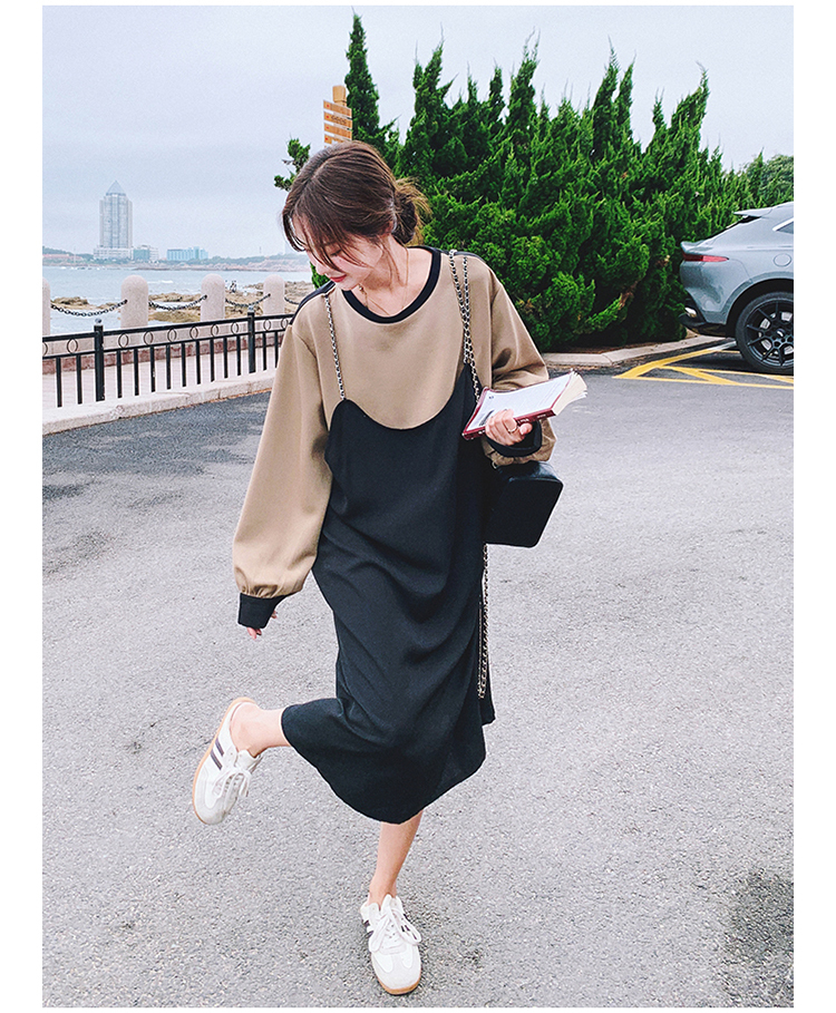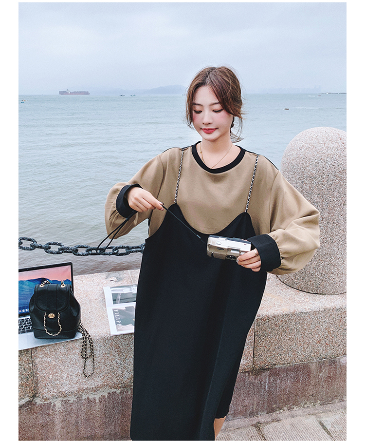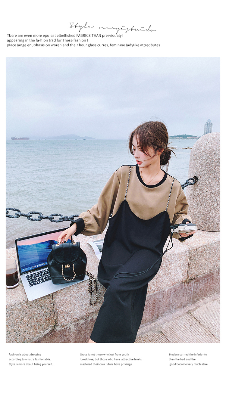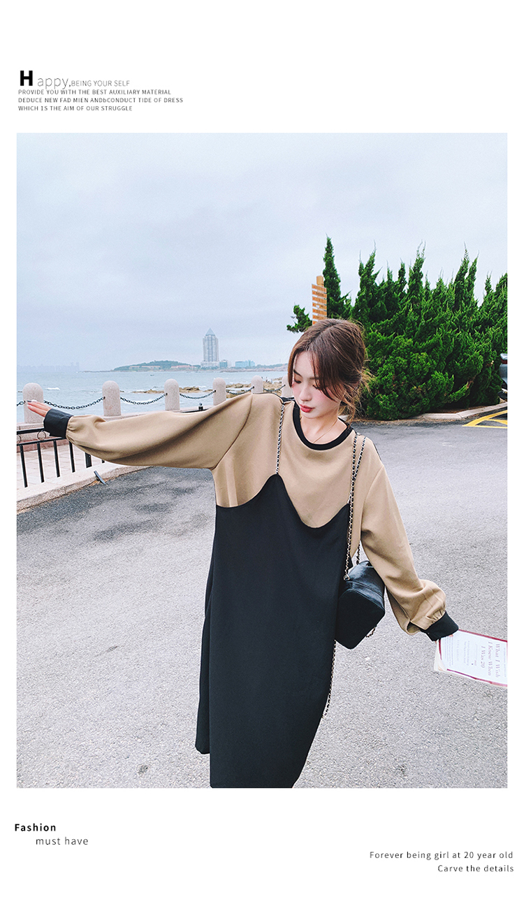 獨家訂製│韓系甜酷風拼接鍊條撞色連衣裙(11H5001)