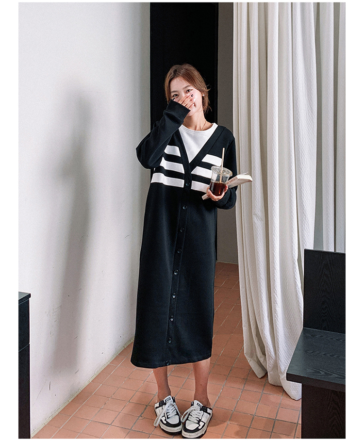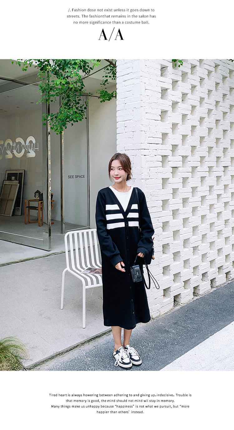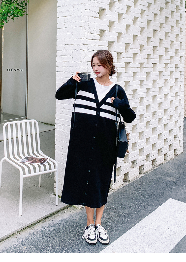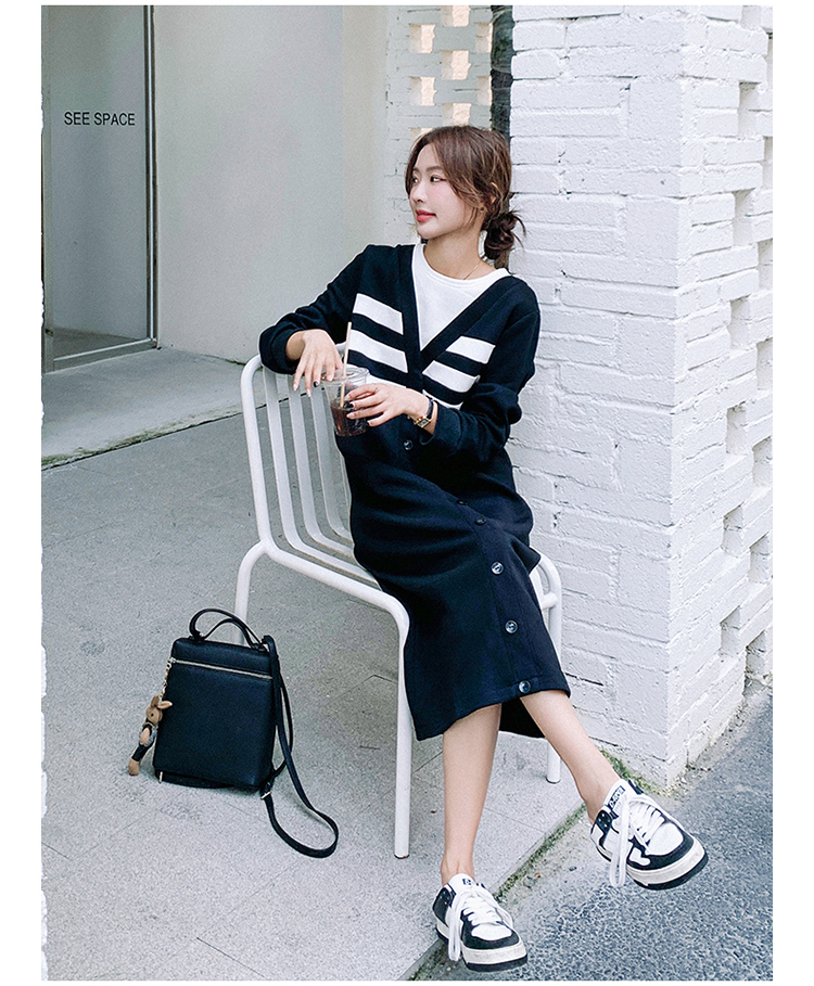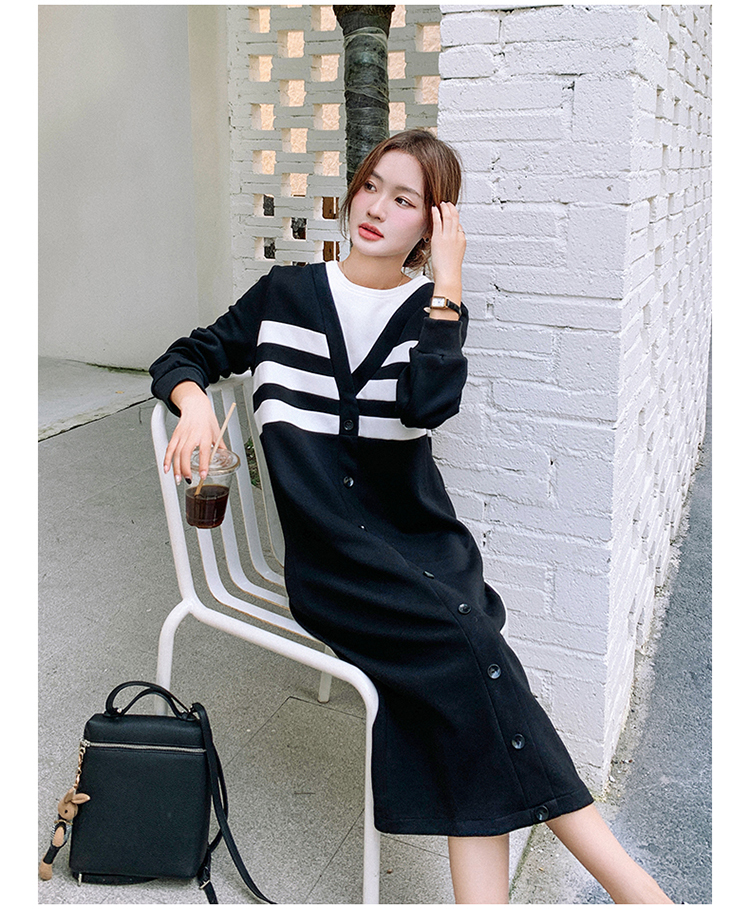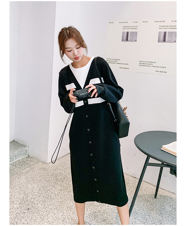 獨家訂製│韓系懶人感撞色拼接假兩件式連衣裙(11H5050)