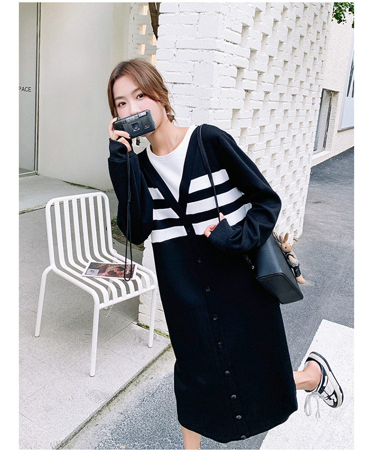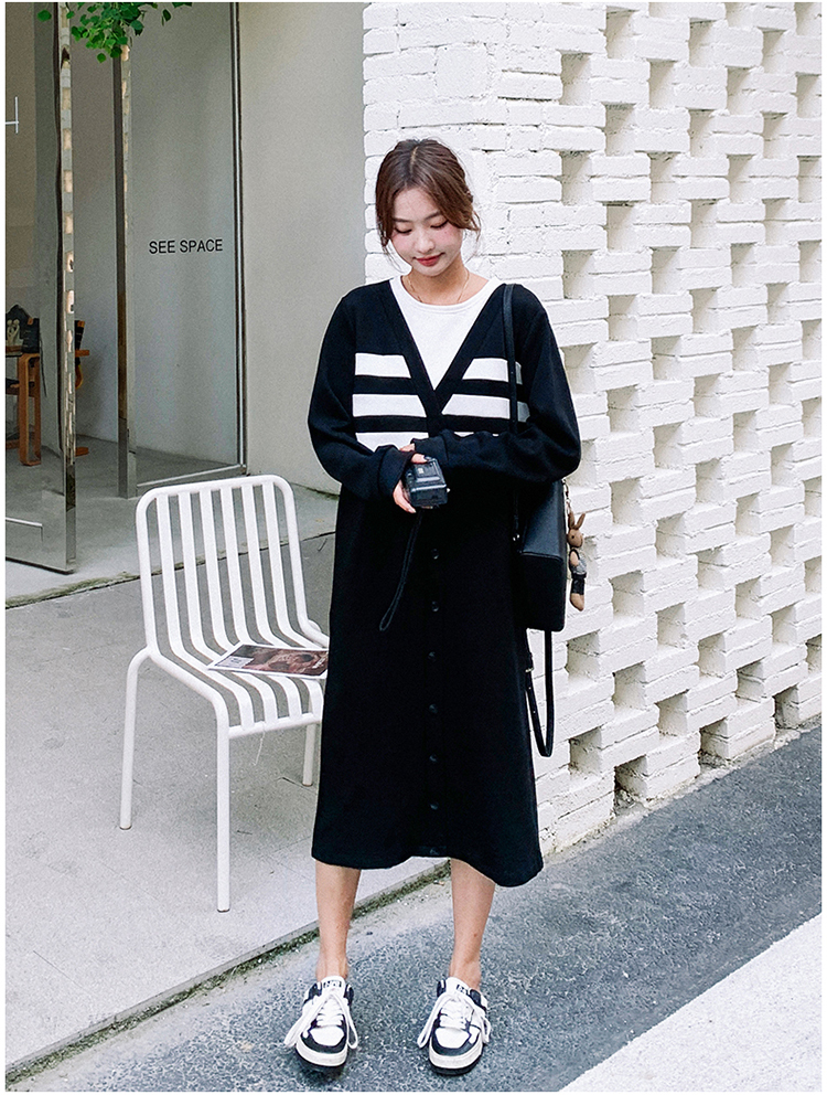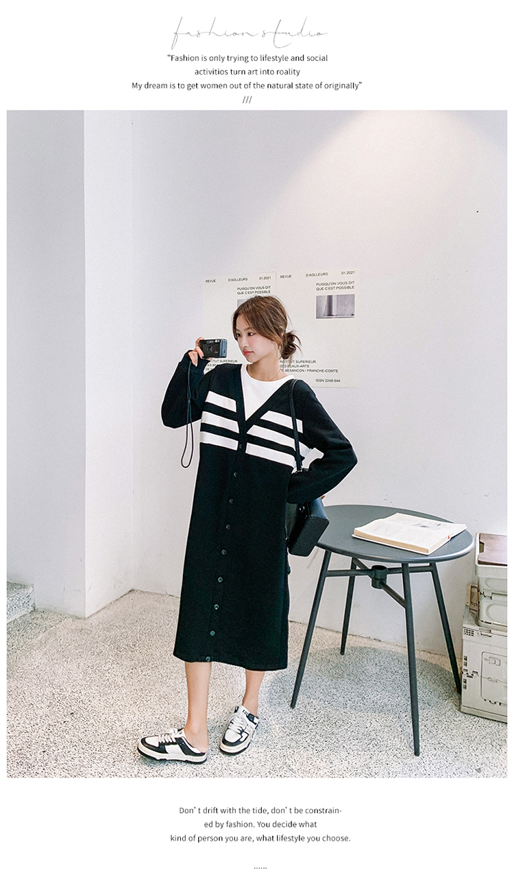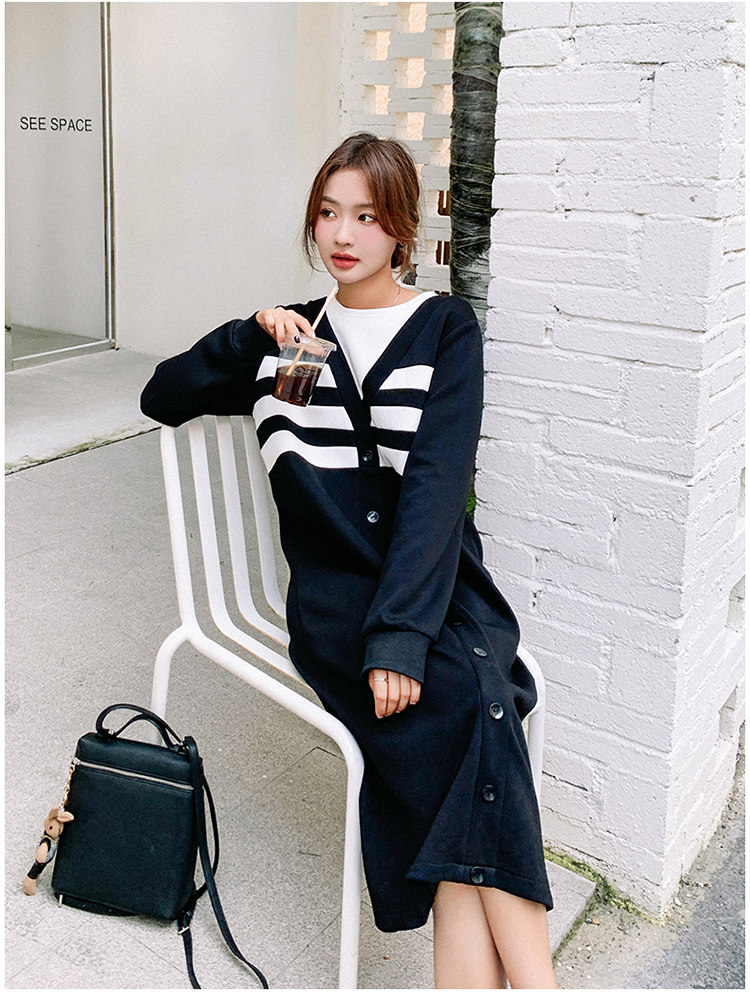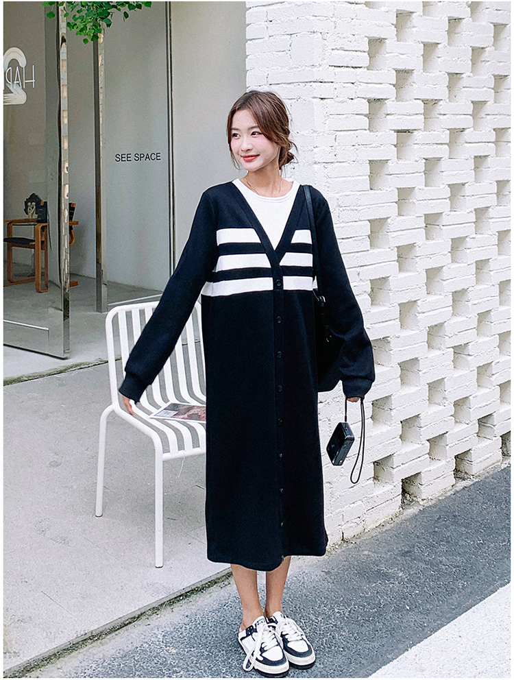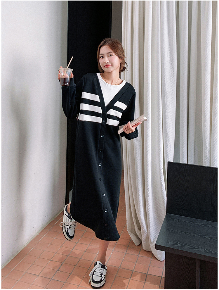 獨家訂製│韓系懶人感撞色拼接假兩件式連衣裙(11H5050)