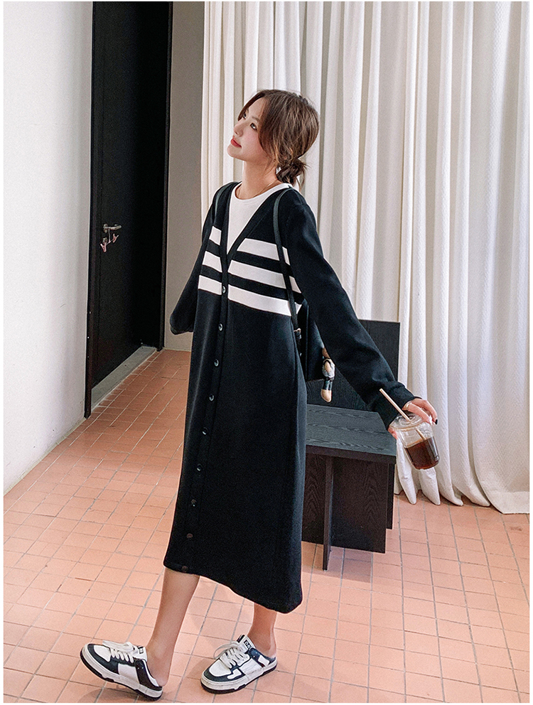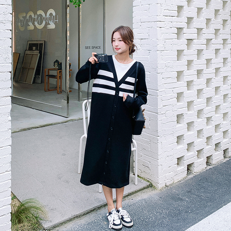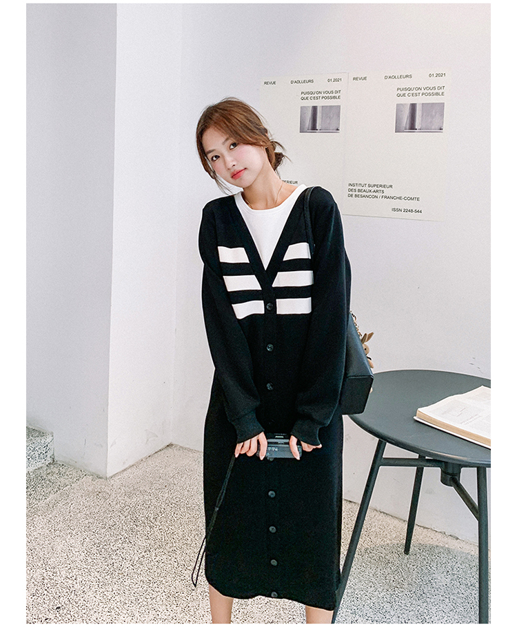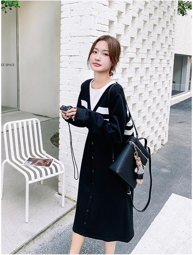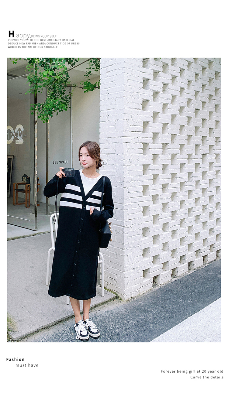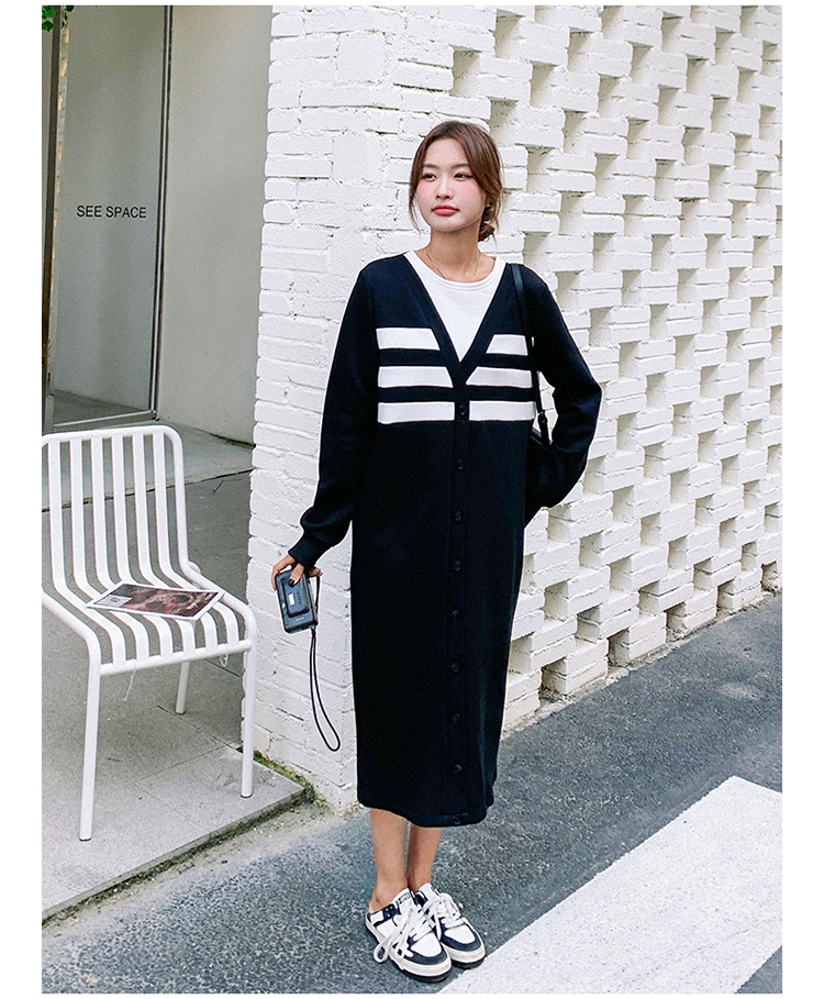 獨家訂製│韓系懶人感撞色拼接假兩件式連衣裙(11H5050)