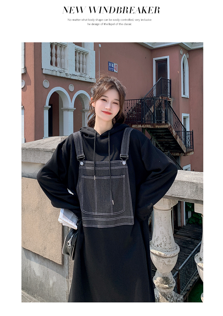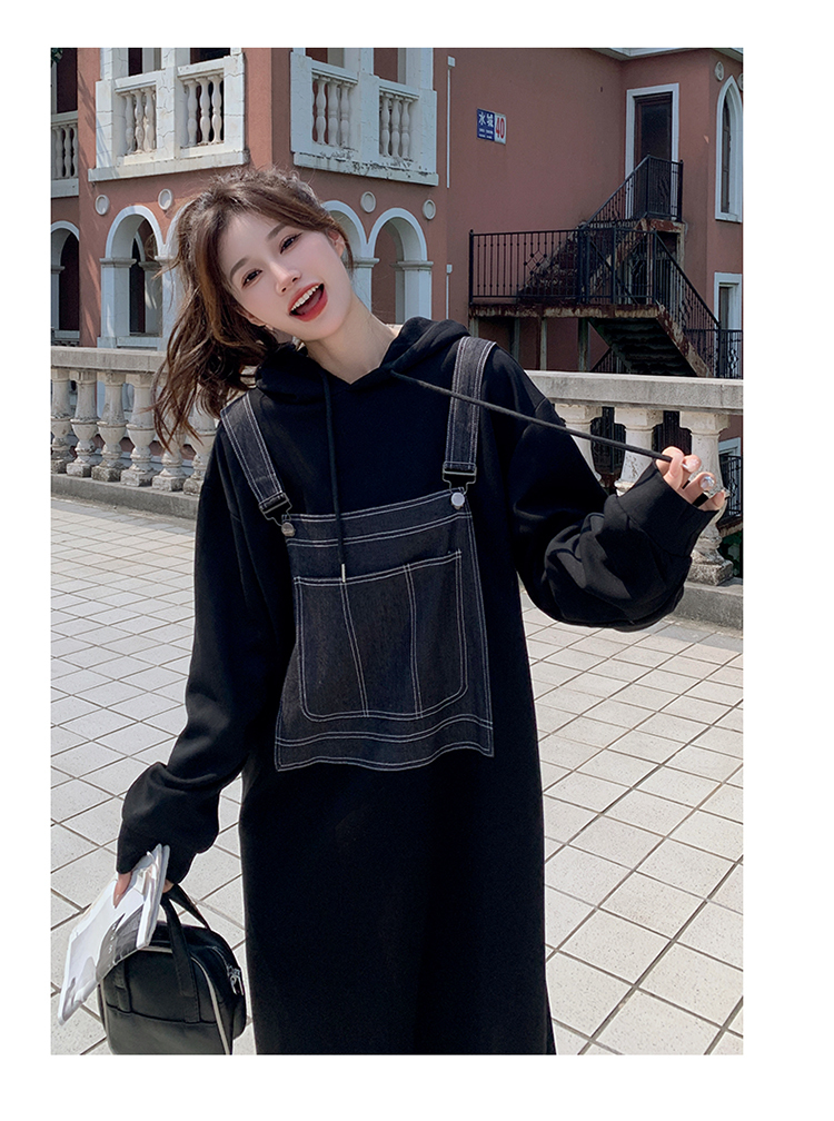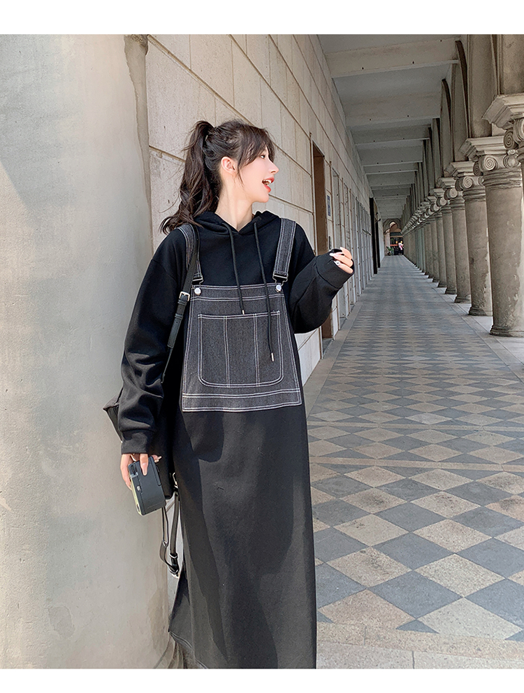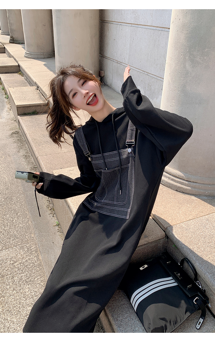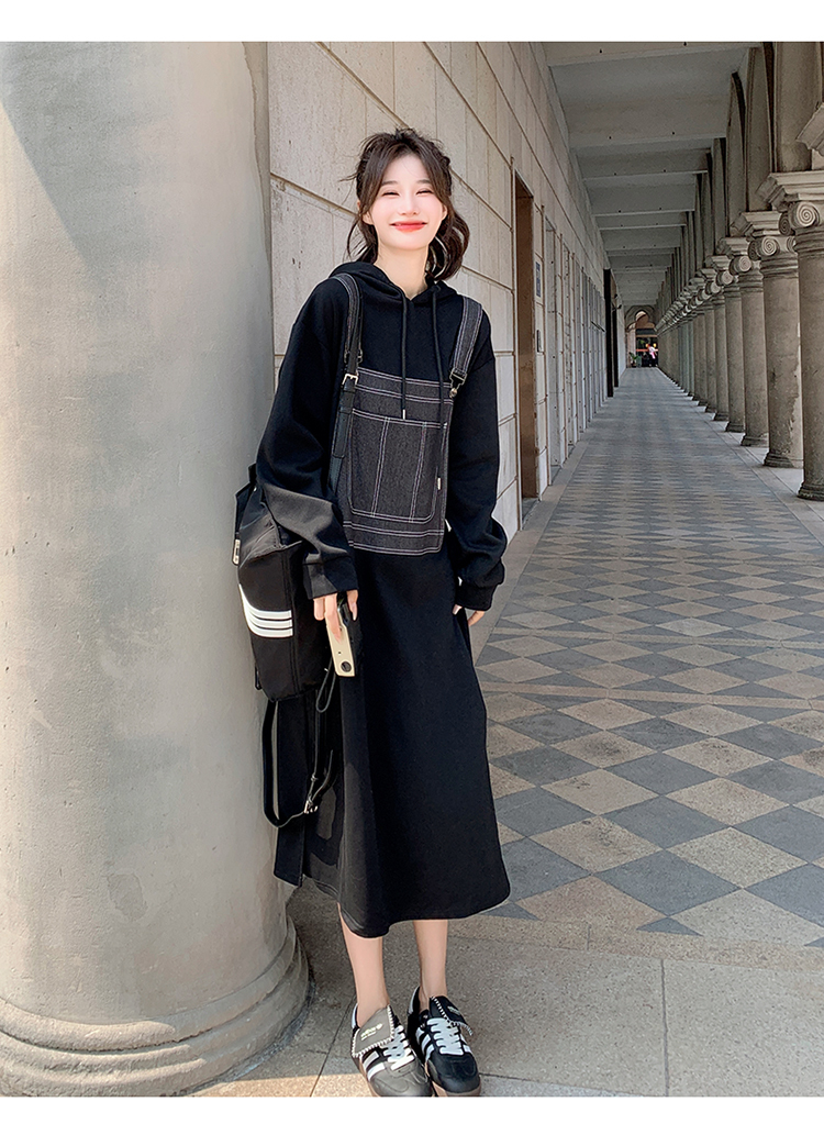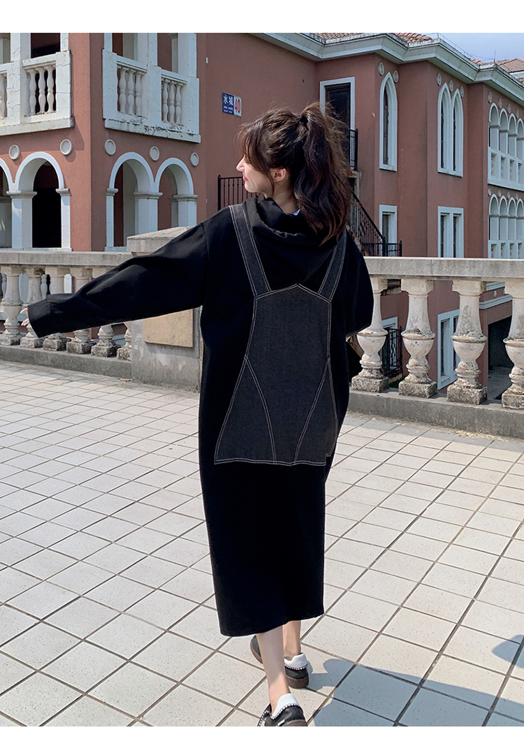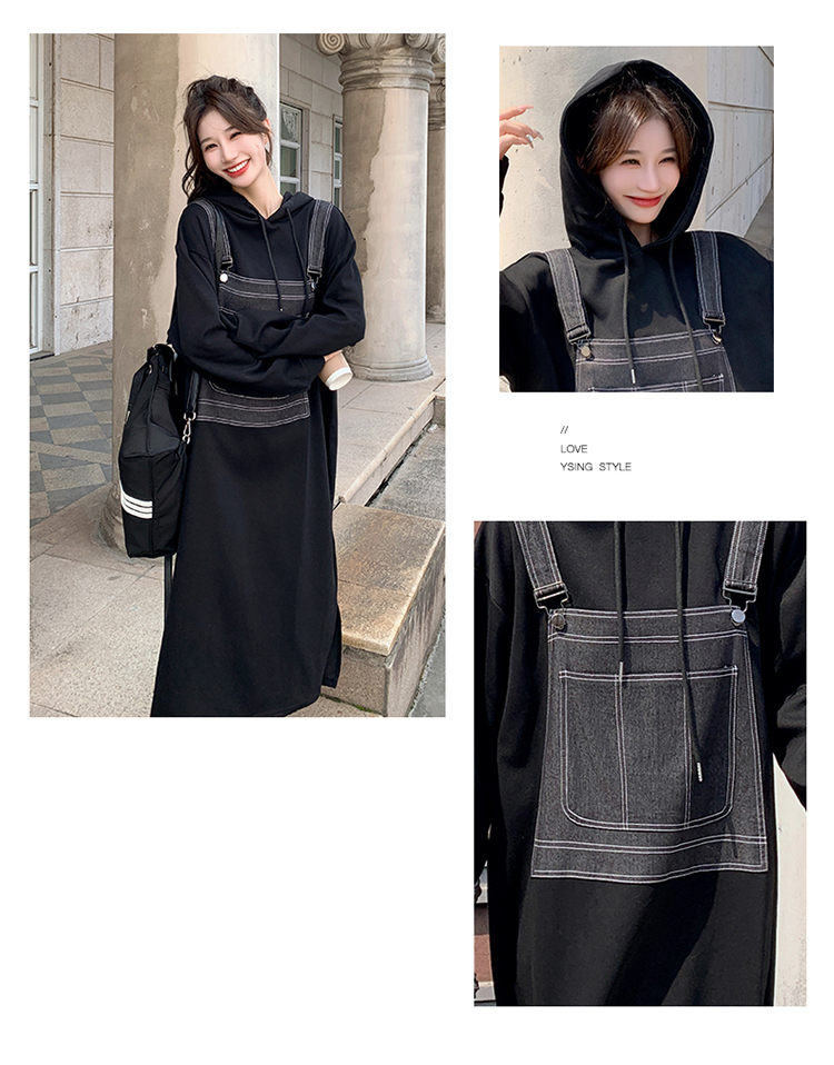 獨家訂製│韓系甜酷風拼接牛仔吊帶連帽連衣裙(11H5064)