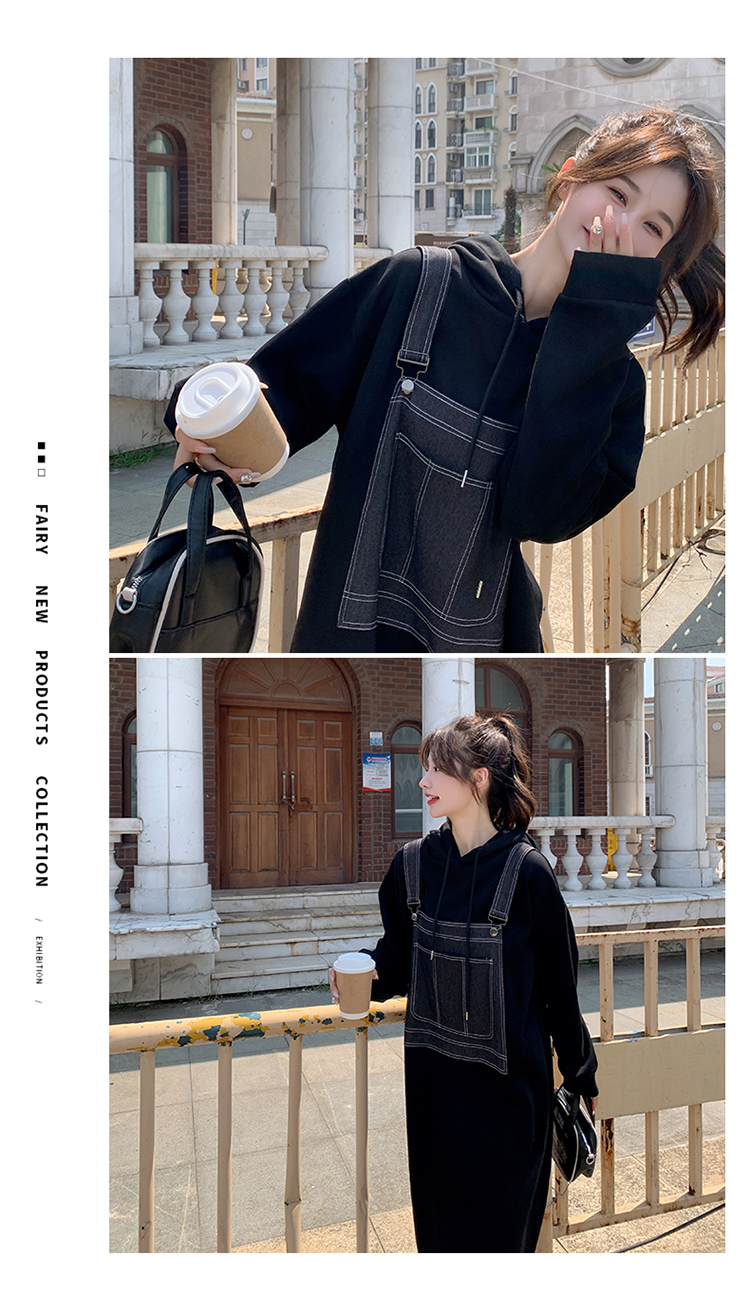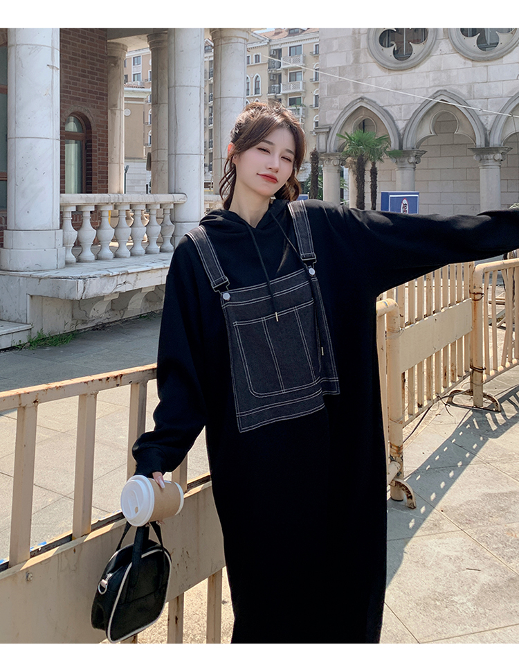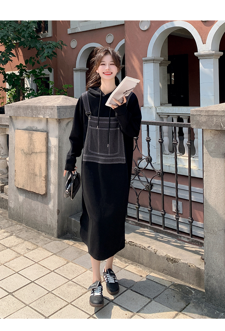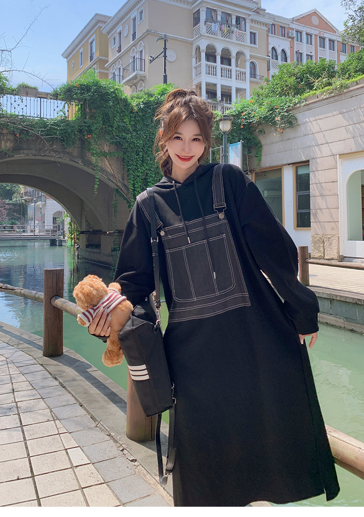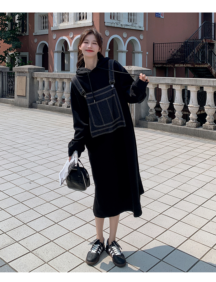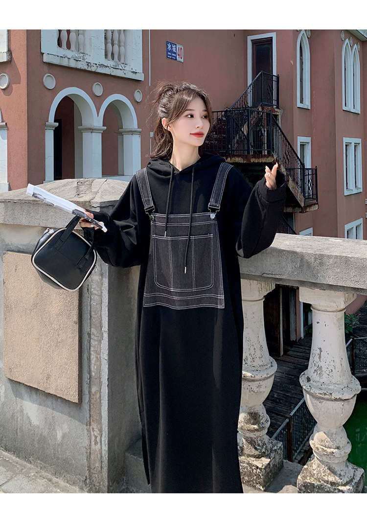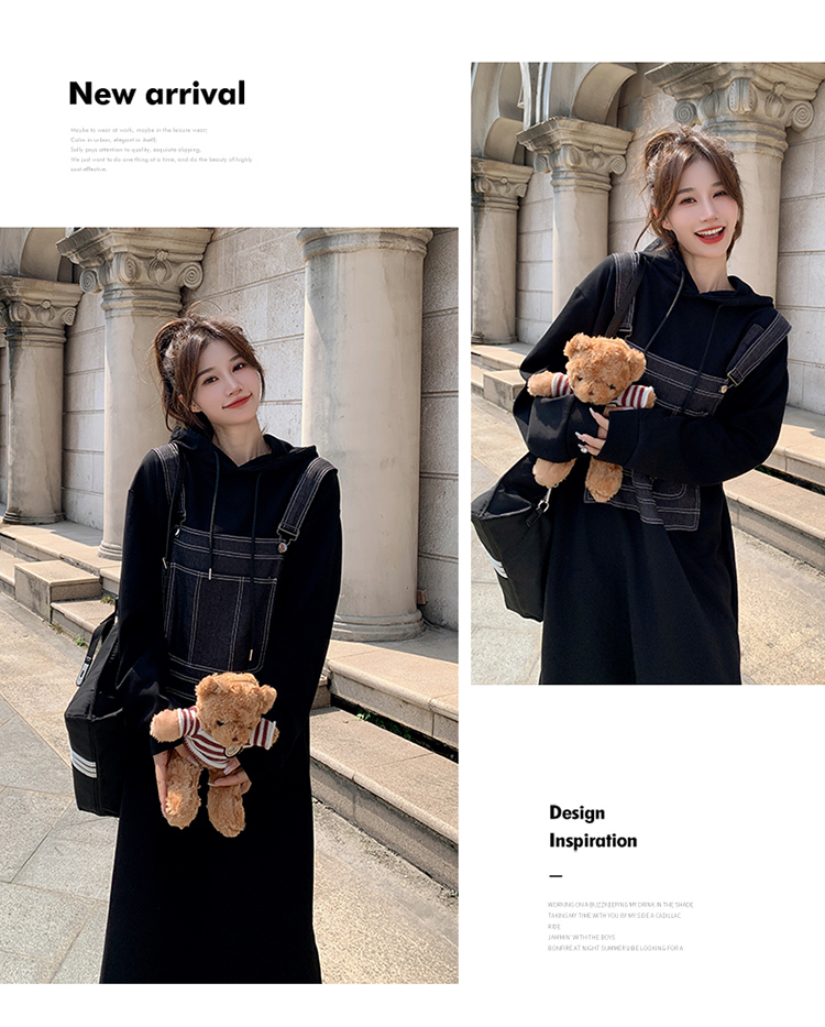 獨家訂製│韓系甜酷風拼接牛仔吊帶連帽連衣裙(11H5064)
