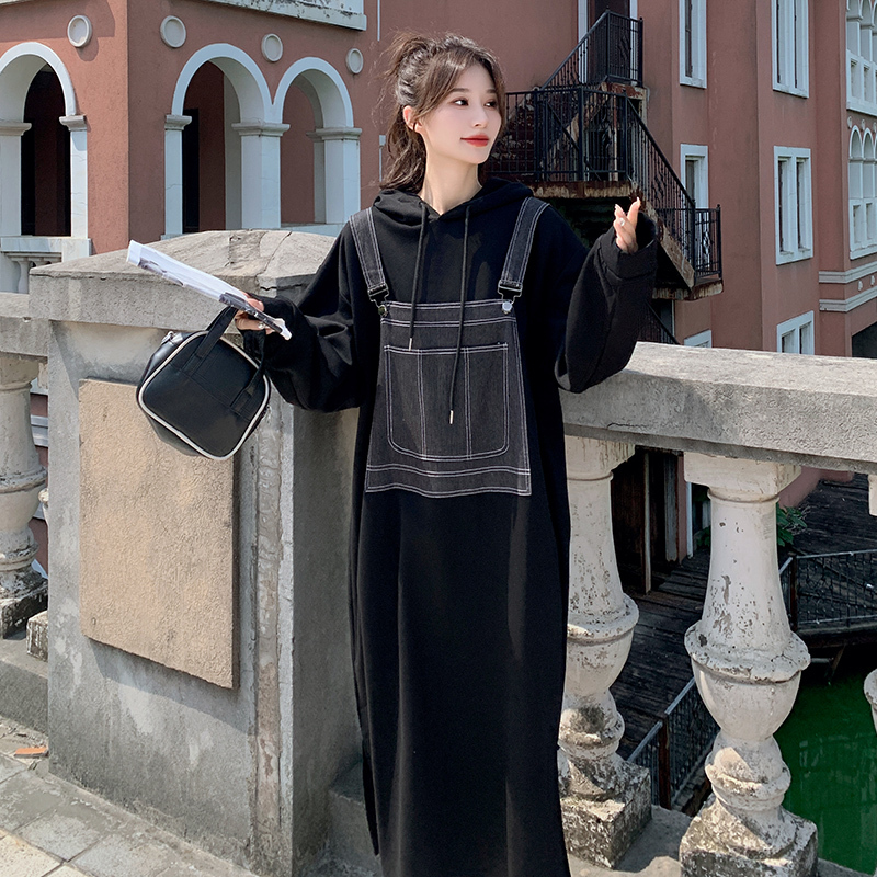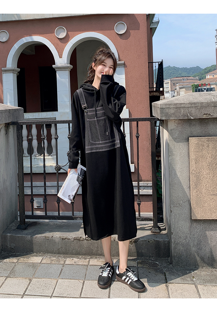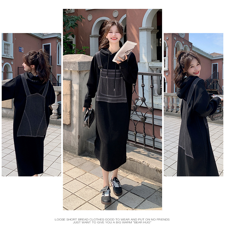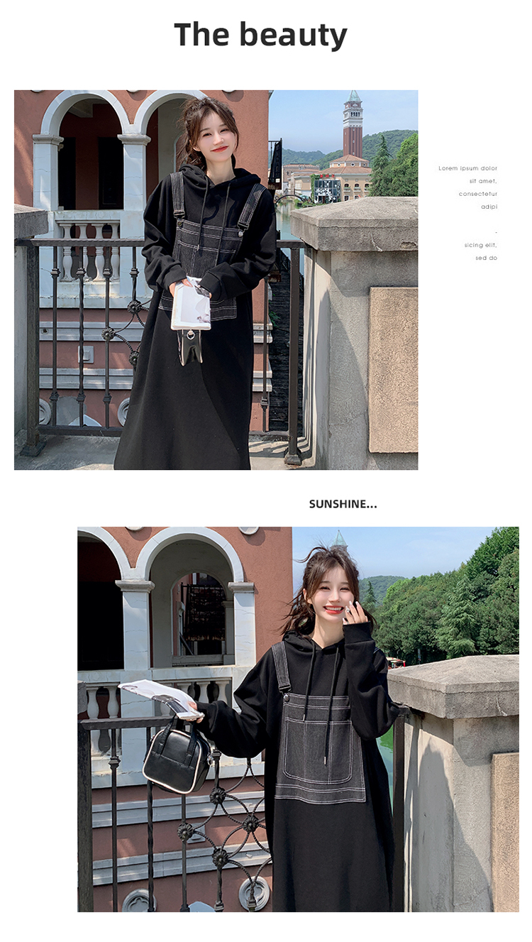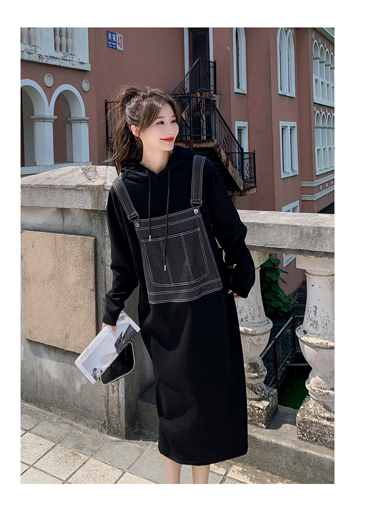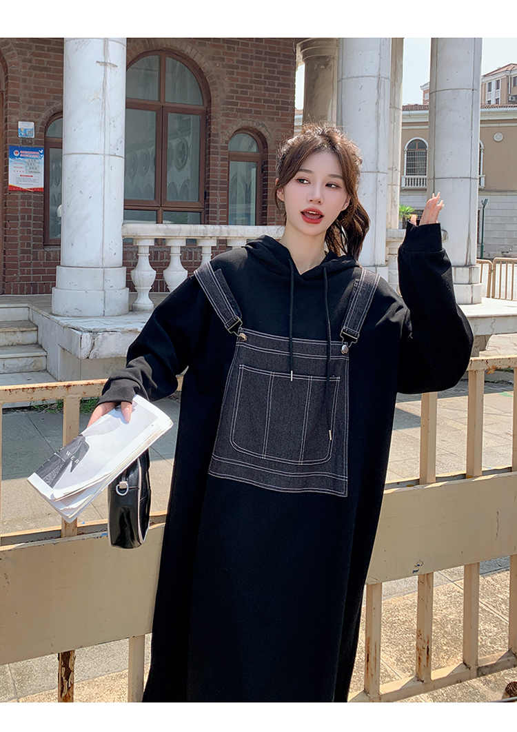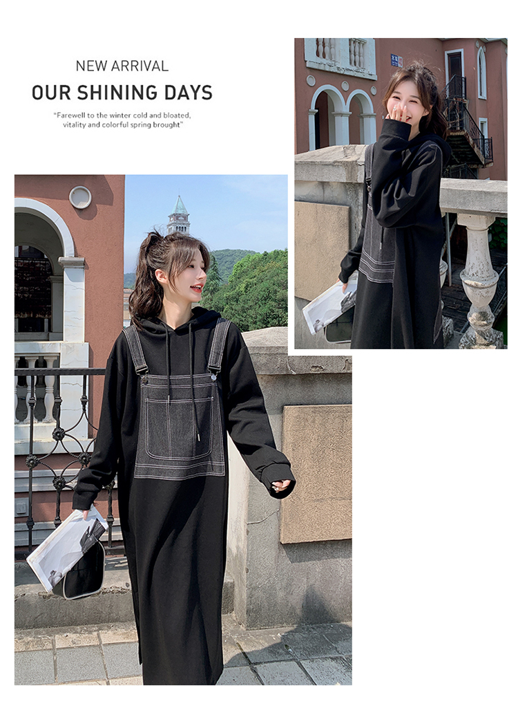 獨家訂製│韓系甜酷風拼接牛仔吊帶連帽連衣裙(11H5064)