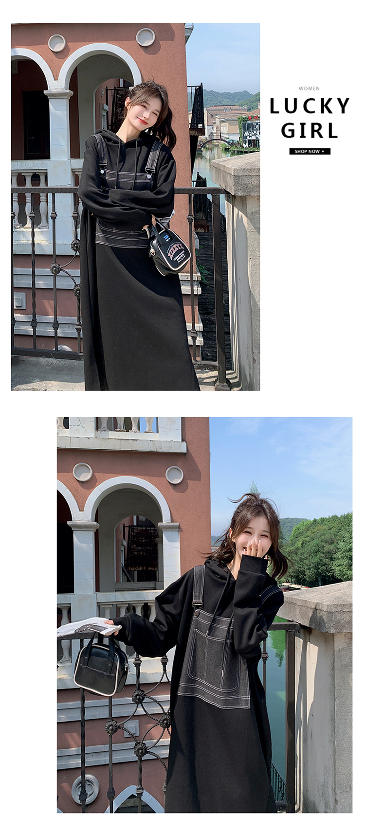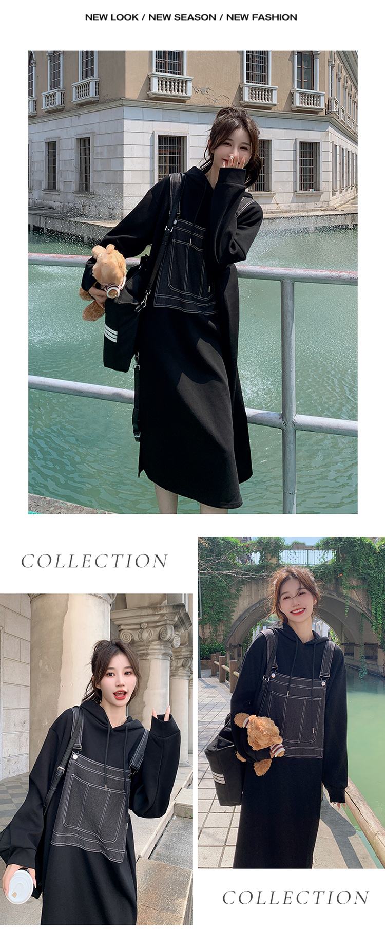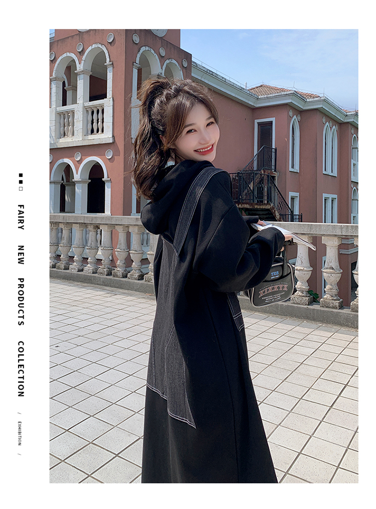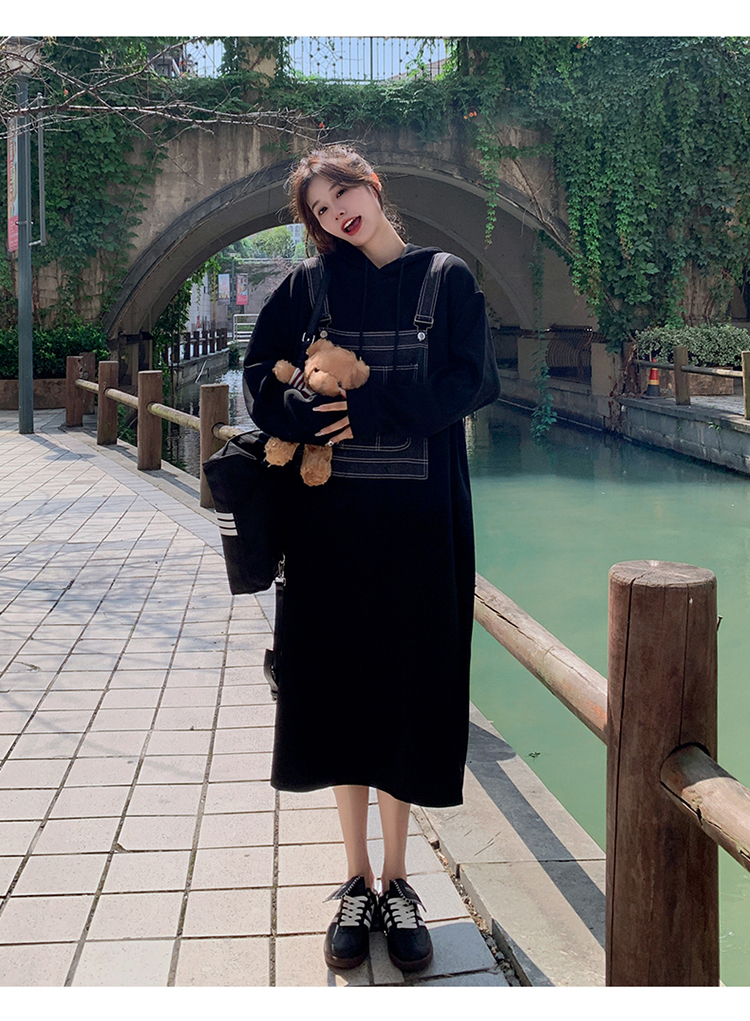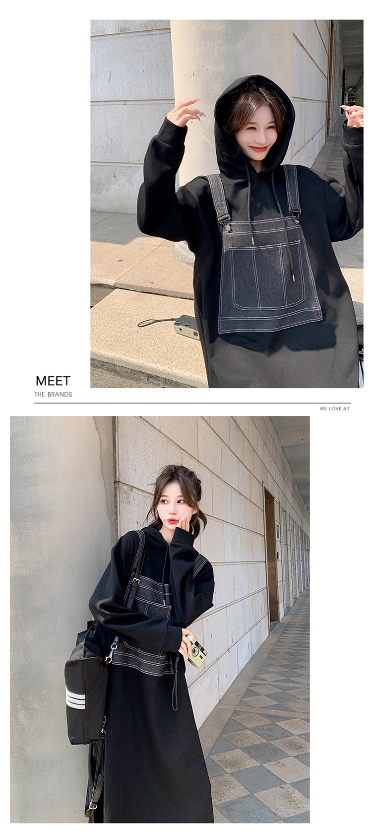 獨家訂製│韓系甜酷風拼接牛仔吊帶連帽連衣裙(11H5064)