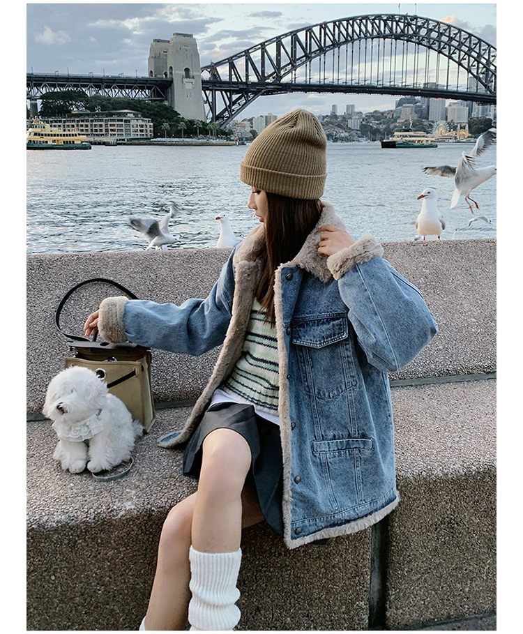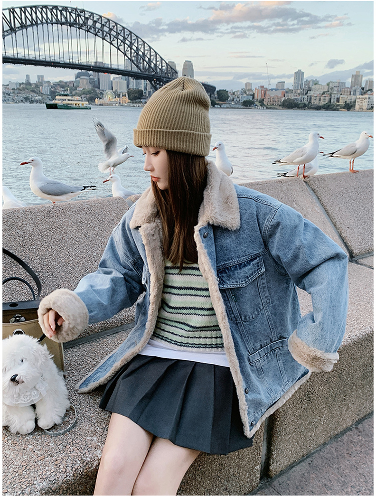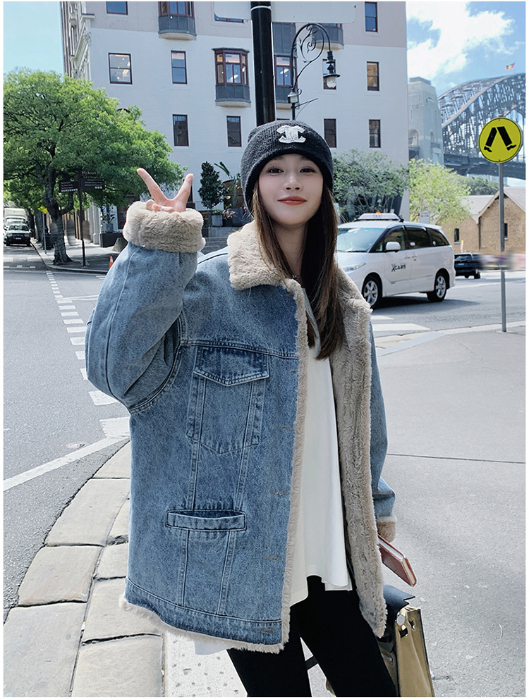 獨家訂製│『內刷毛』韓系個性毛絨翻領牛仔外套(11H5079)