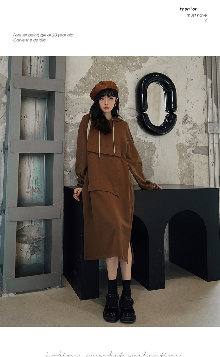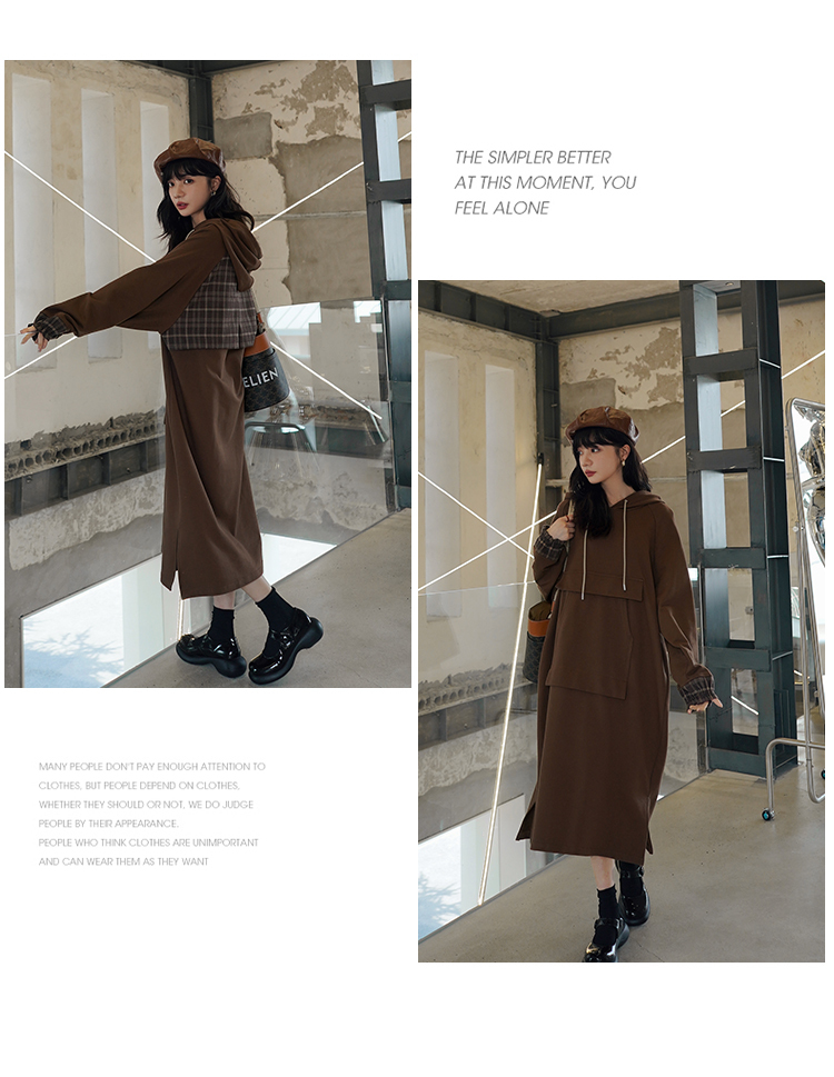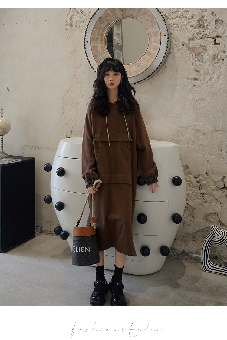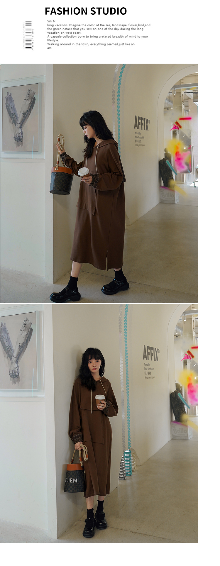 獨家訂製│韓系懶人感撞色拼接假兩件式連帽連衣裙(11H5100)