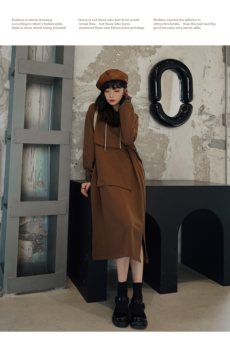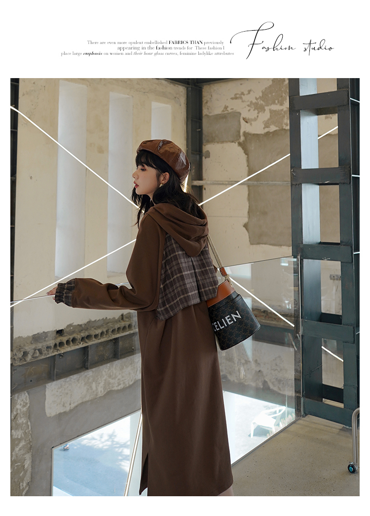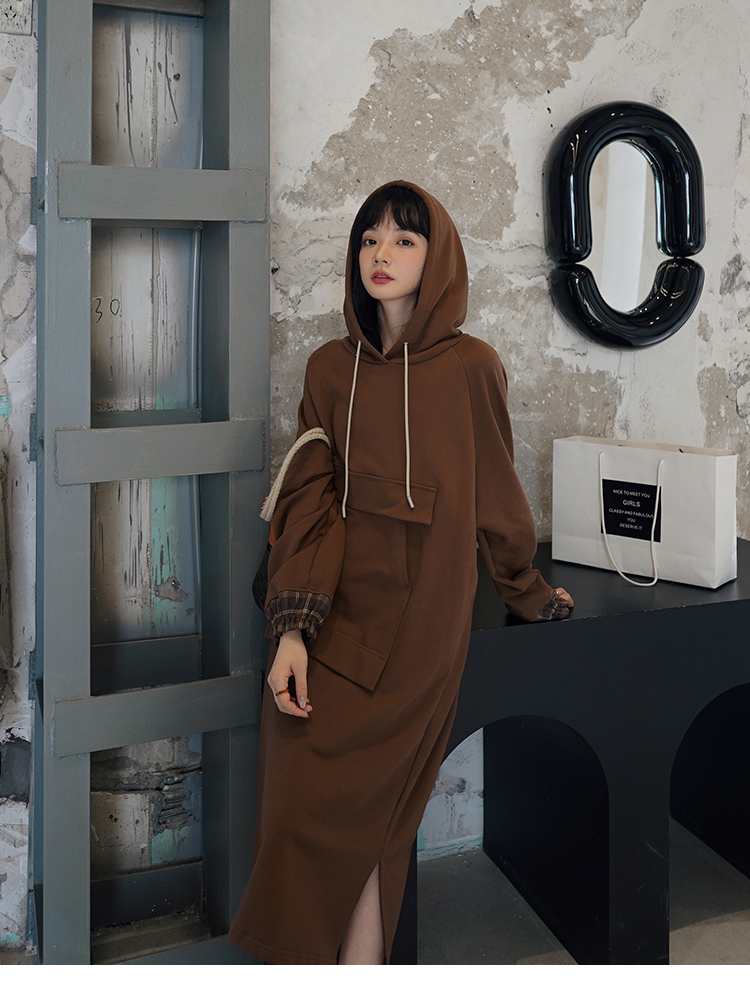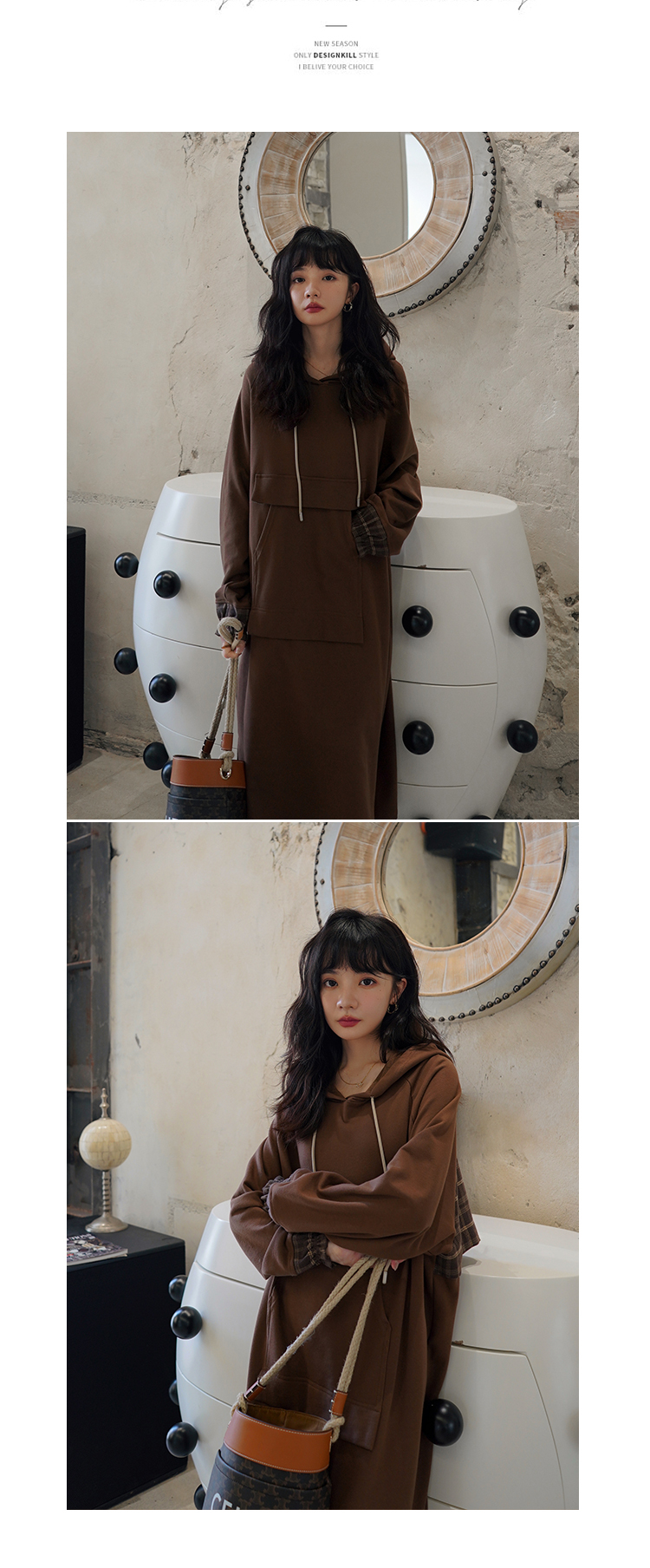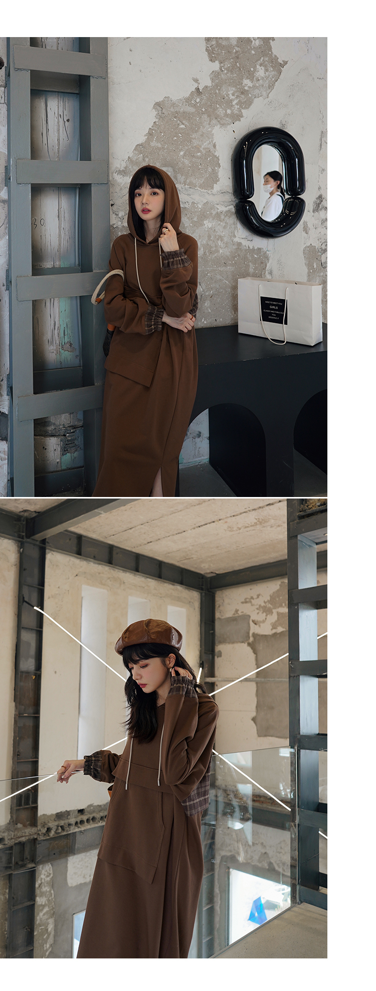 獨家訂製│韓系懶人感撞色拼接假兩件式連帽連衣裙(11H5100)