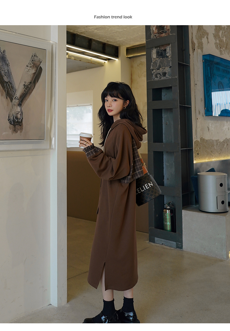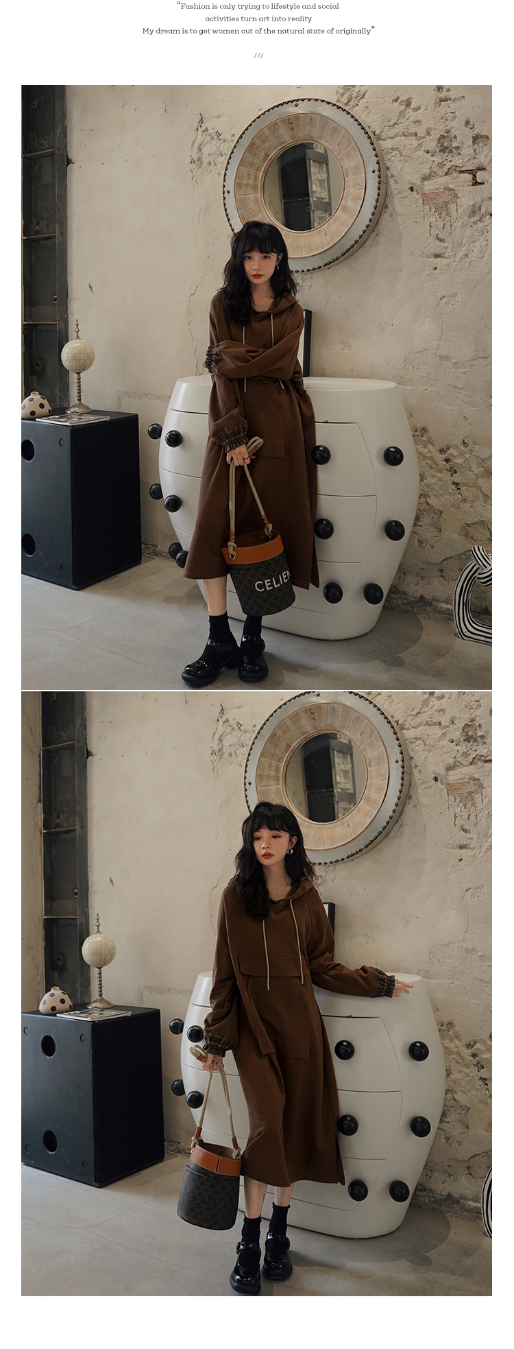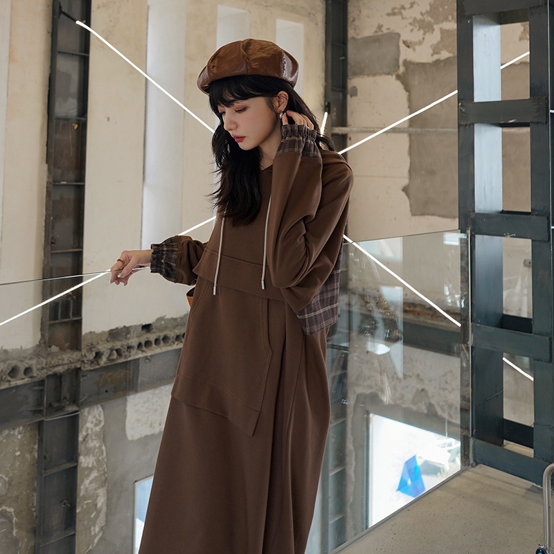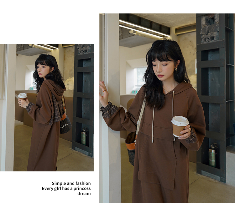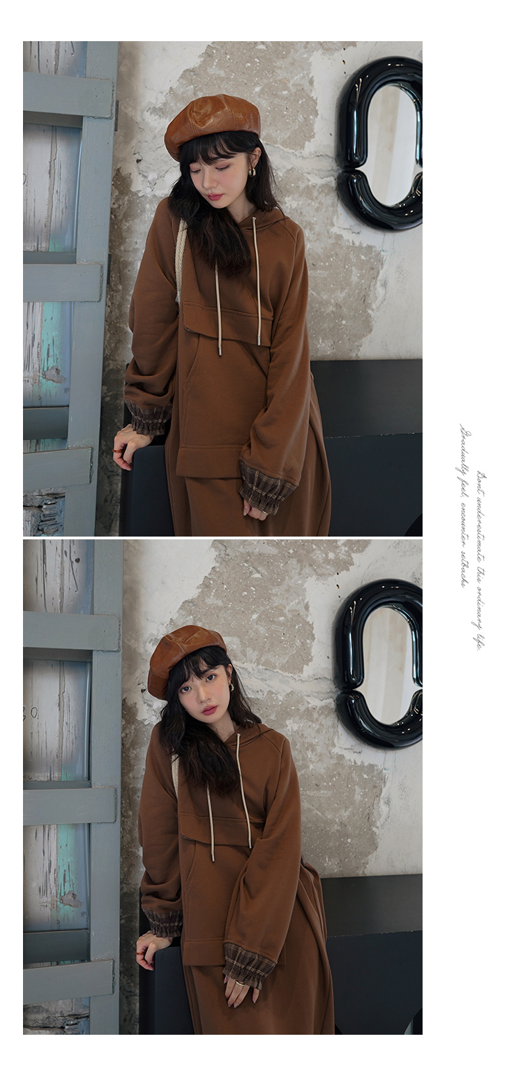 獨家訂製│韓系懶人感撞色拼接假兩件式連帽連衣裙(11H5100)