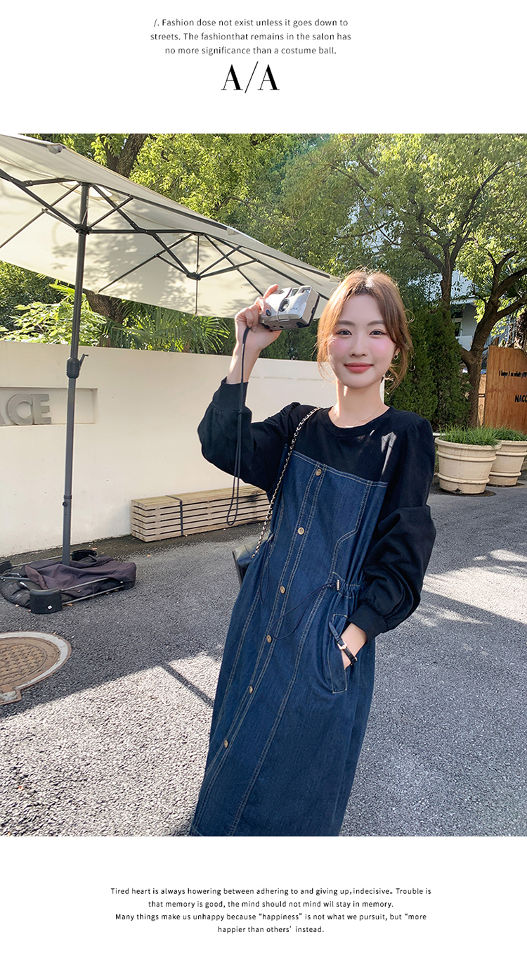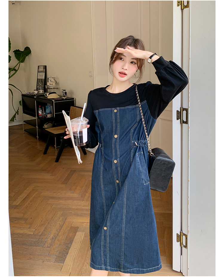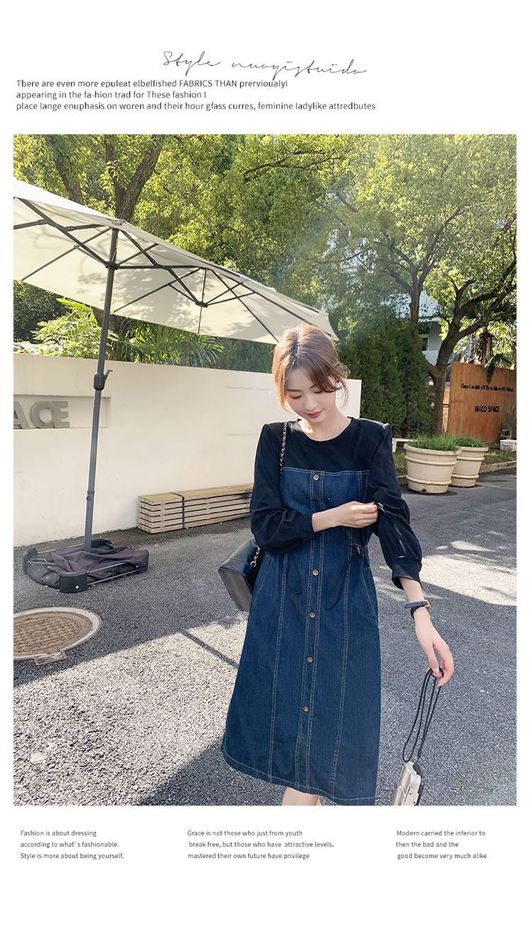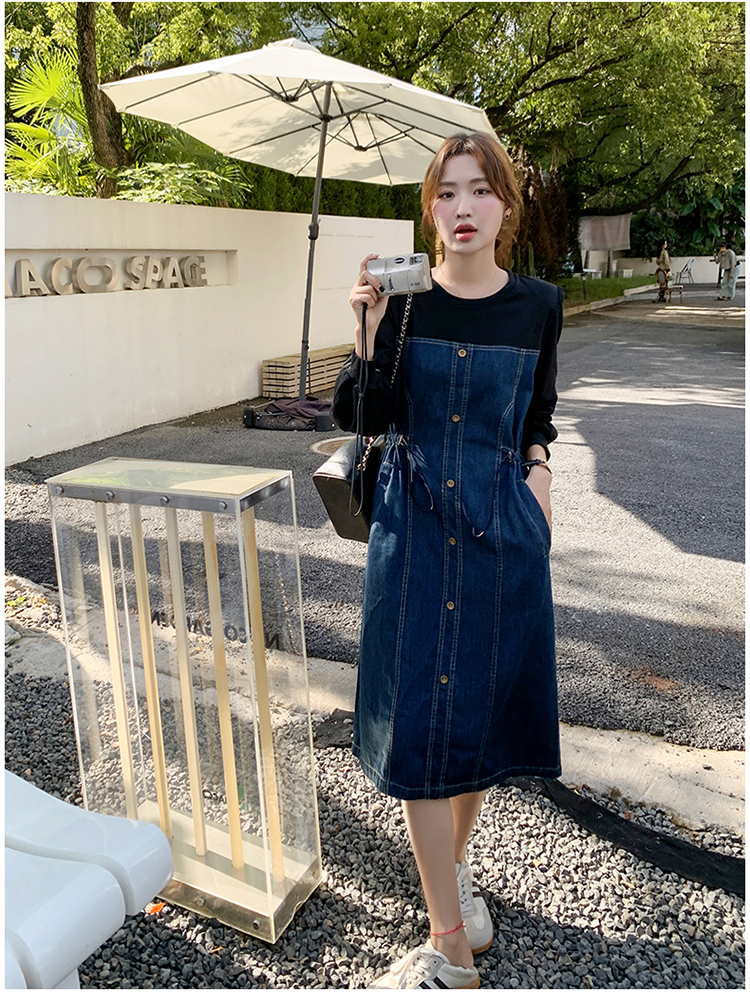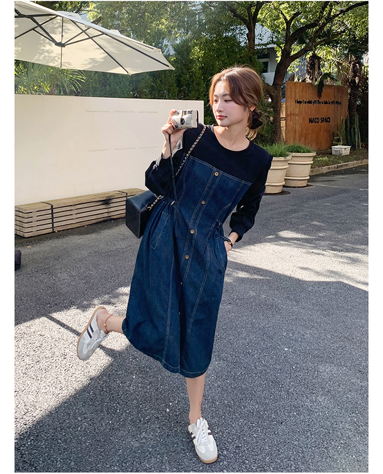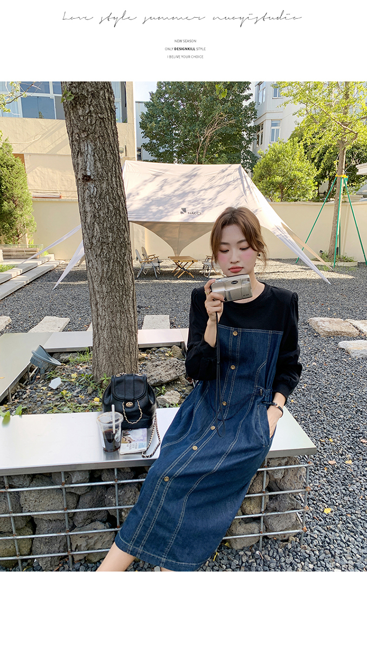 獨家訂製│韓系甜酷風拼接牛仔收腰連衣裙(11H5105)