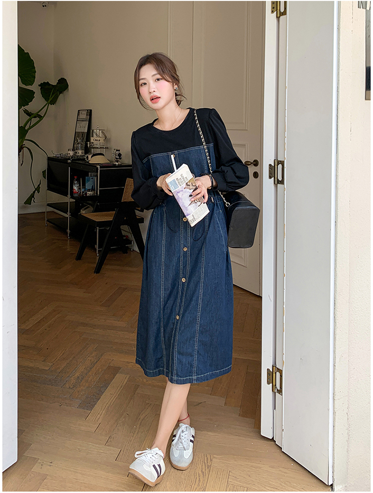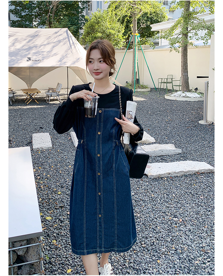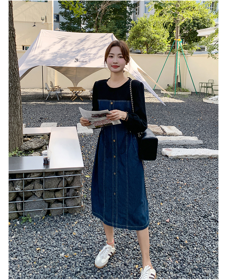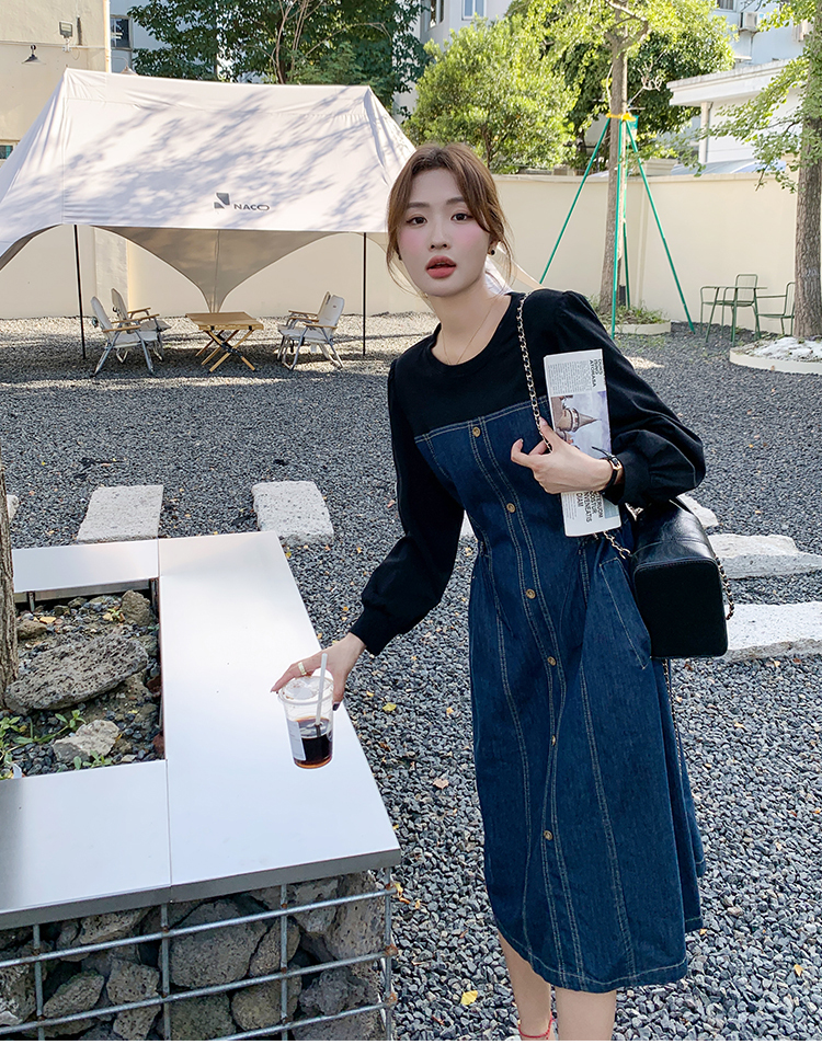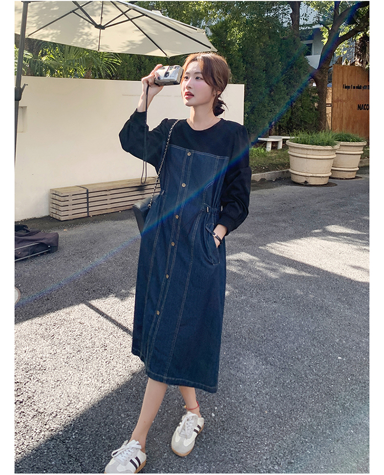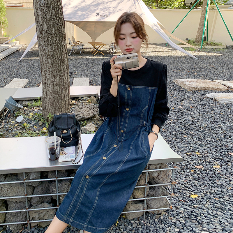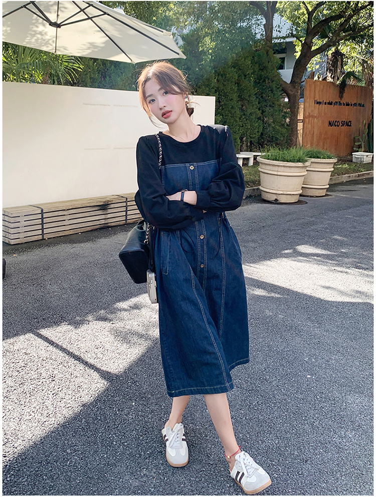 獨家訂製│韓系甜酷風拼接牛仔收腰連衣裙(11H5105)