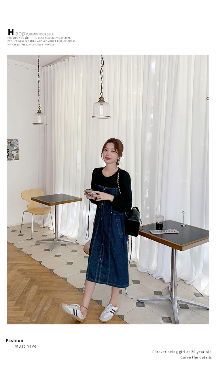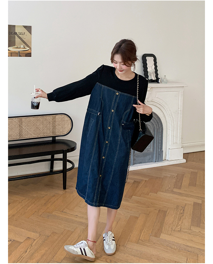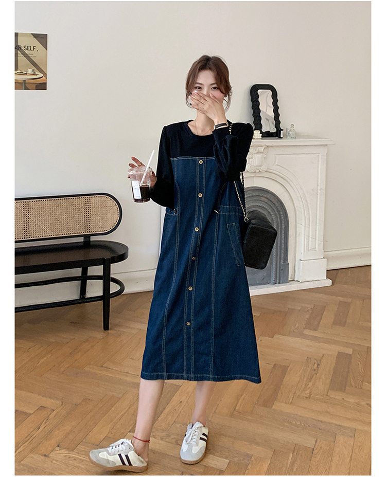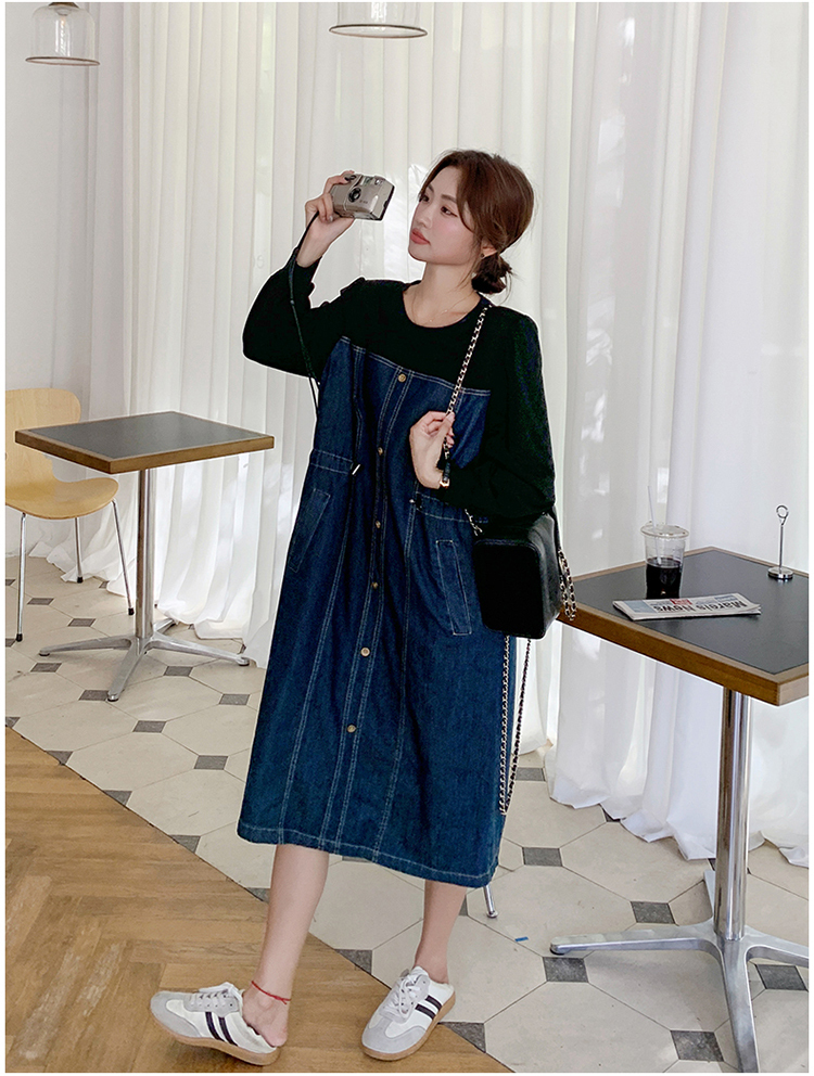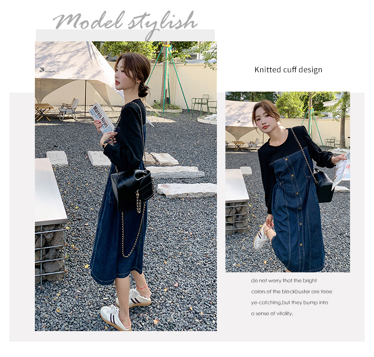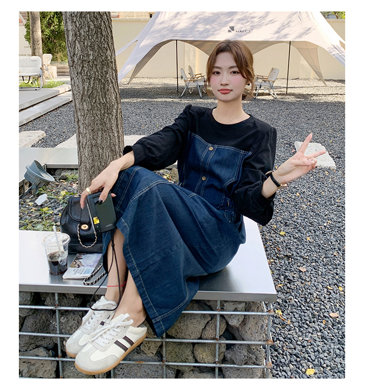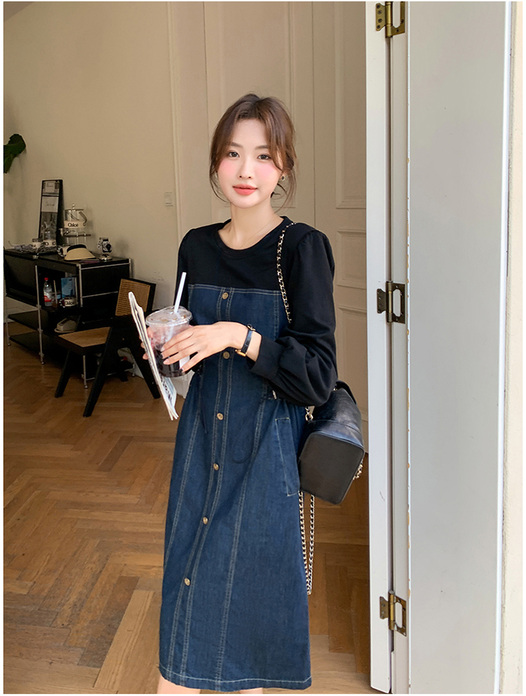 獨家訂製│韓系甜酷風拼接牛仔收腰連衣裙(11H5105)