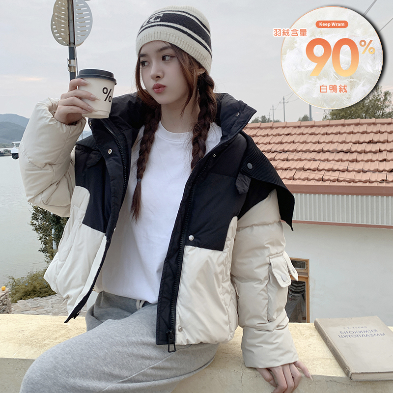 🔺面料:外層滌綸+內層填充:90%白鴨絨+針織領(可拆)