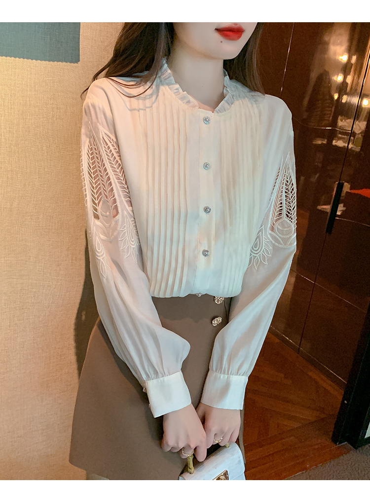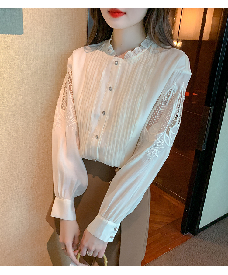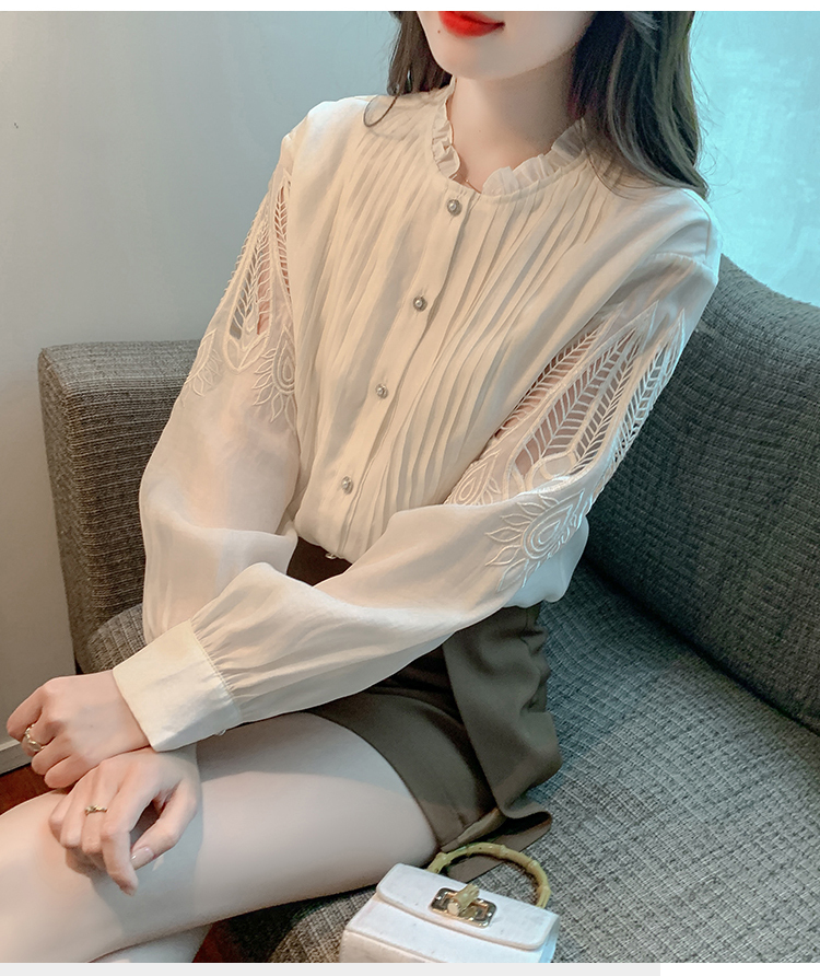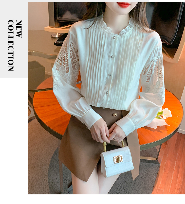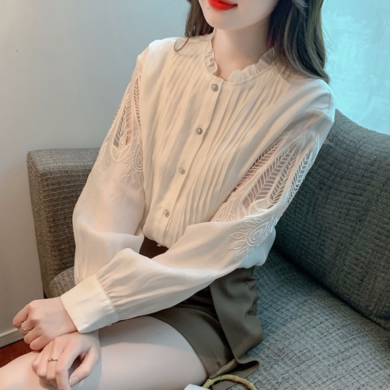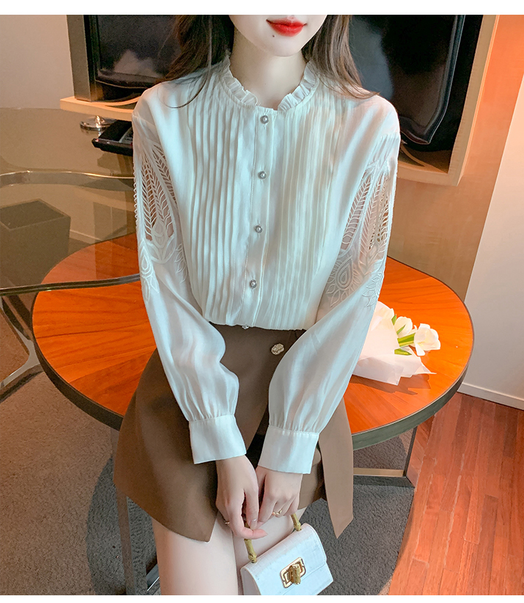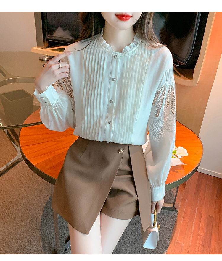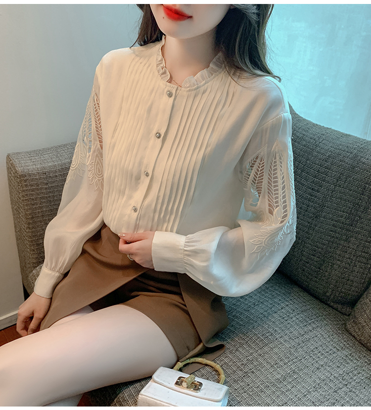限量特惠|知性氣質刺繡花邊縷空雪紡衫(11H5210)