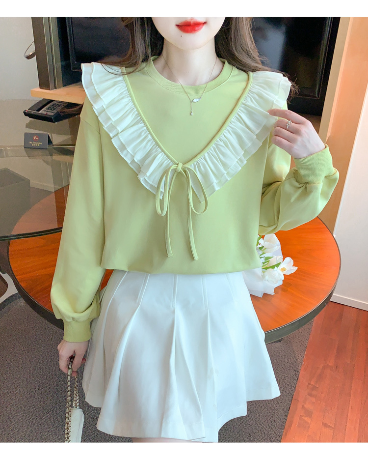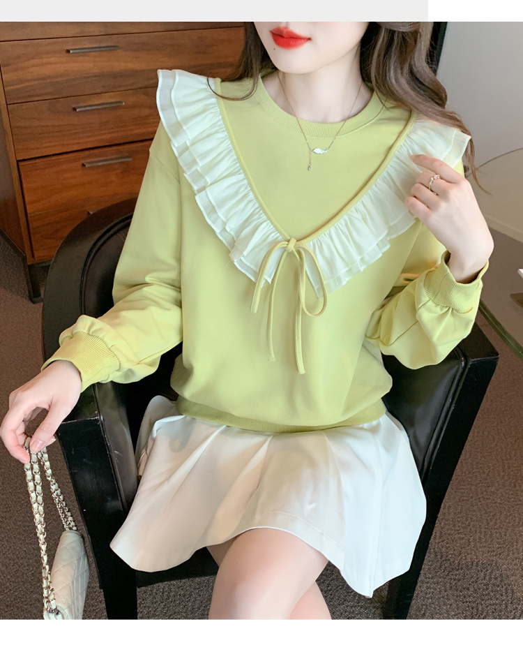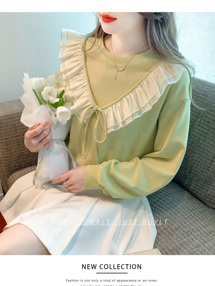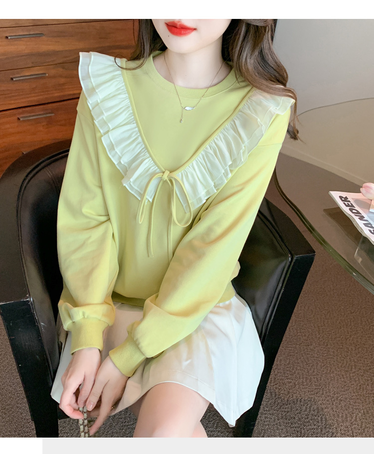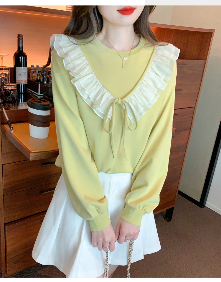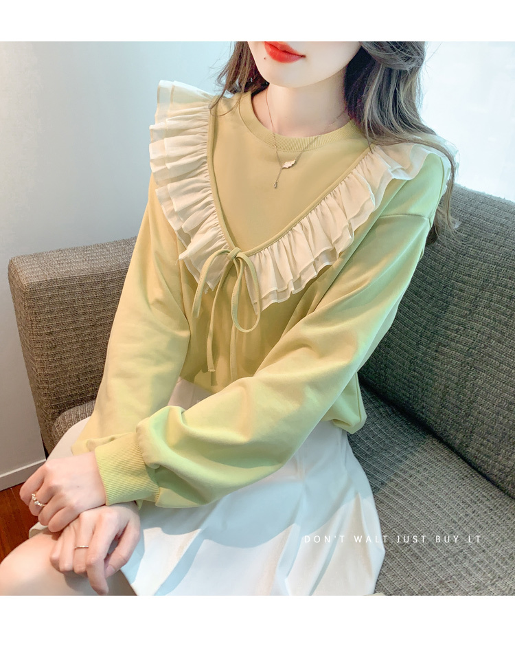 限量特惠|氣質甜美撞色荷葉邊拼接T恤(11H5217)