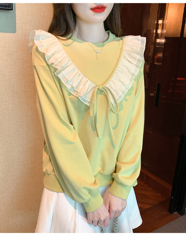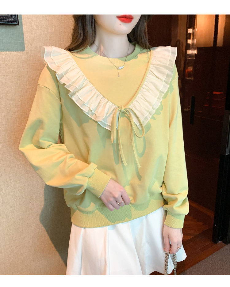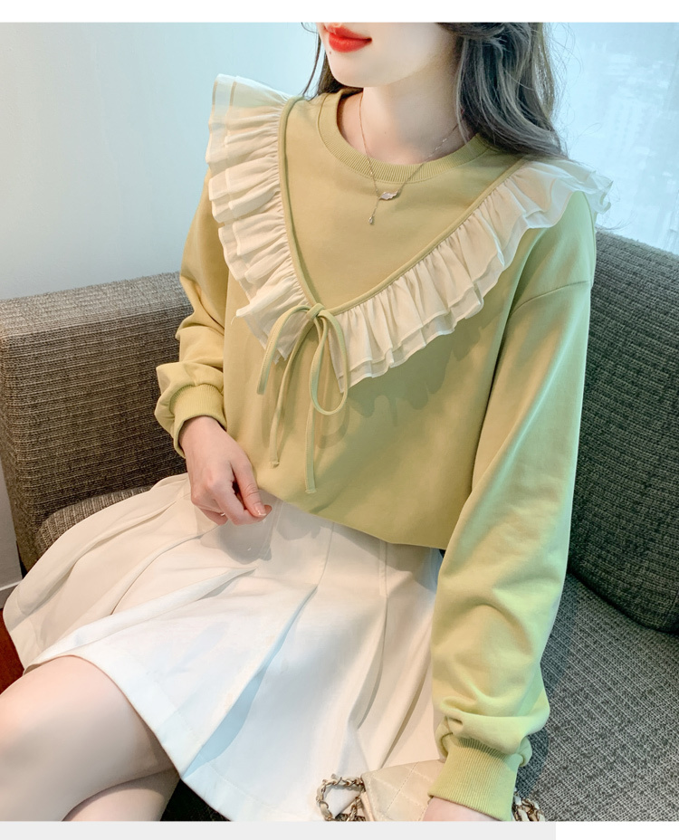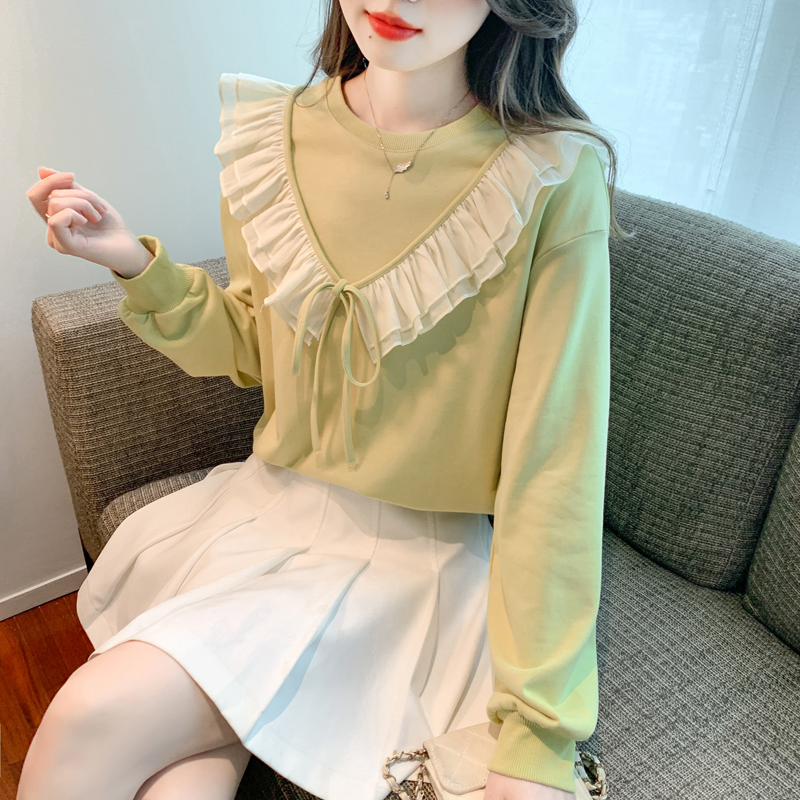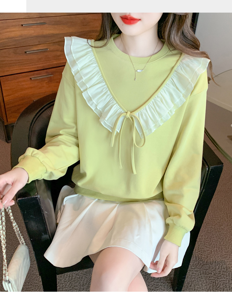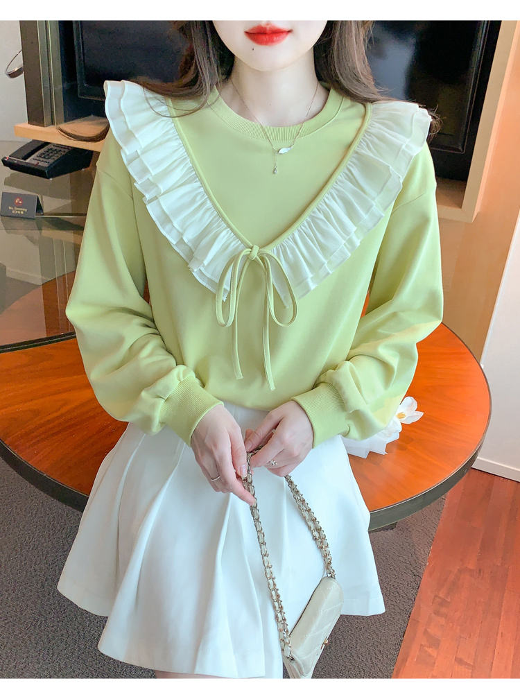 限量特惠|氣質甜美撞色荷葉邊拼接T恤(11H5217)