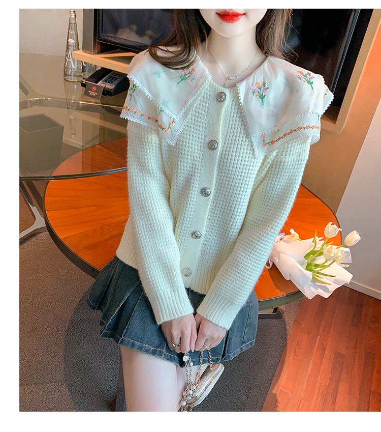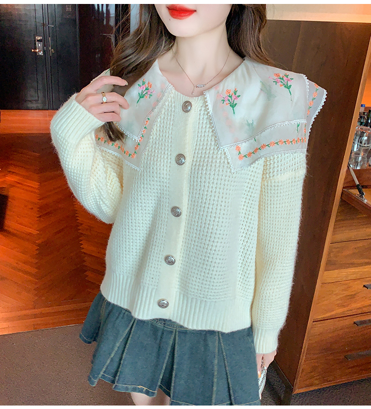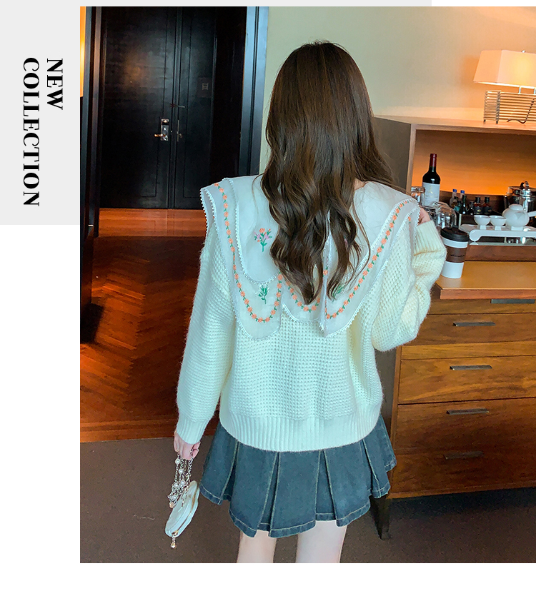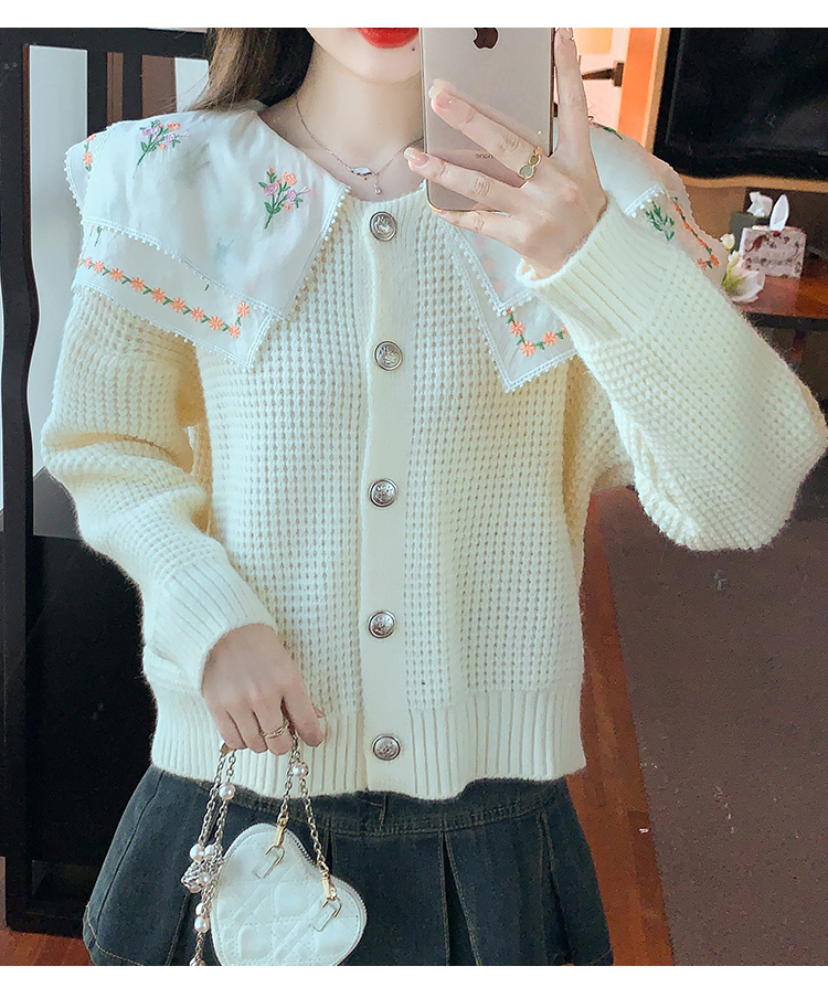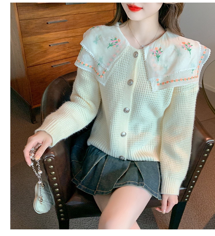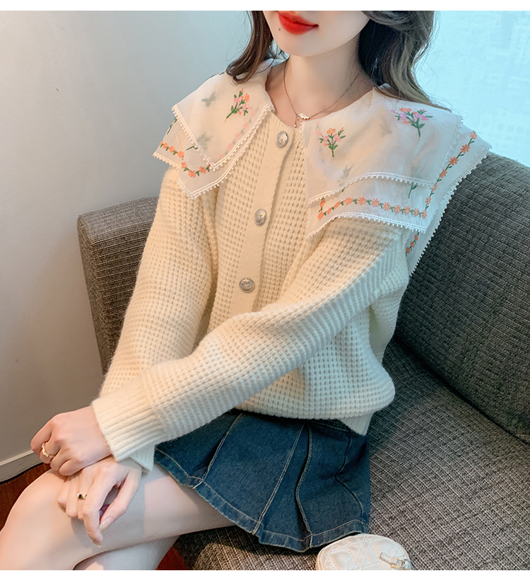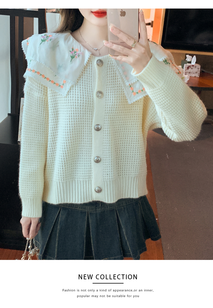 限量特惠|減齡甜美翻領刺繡針織衫(11H5224)