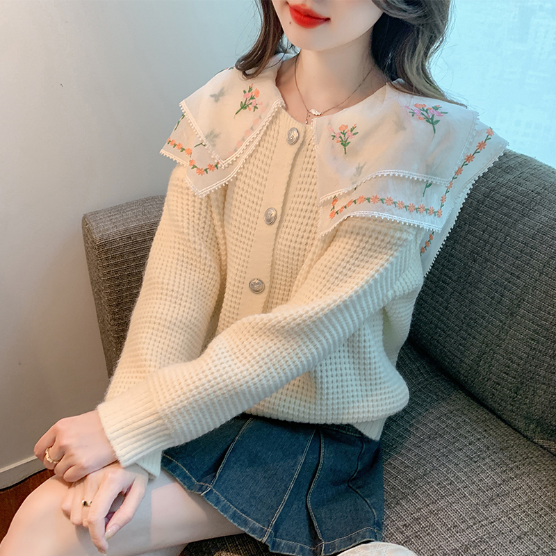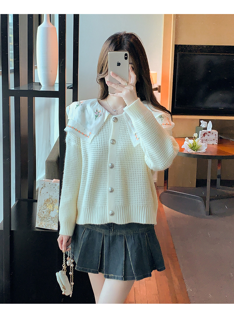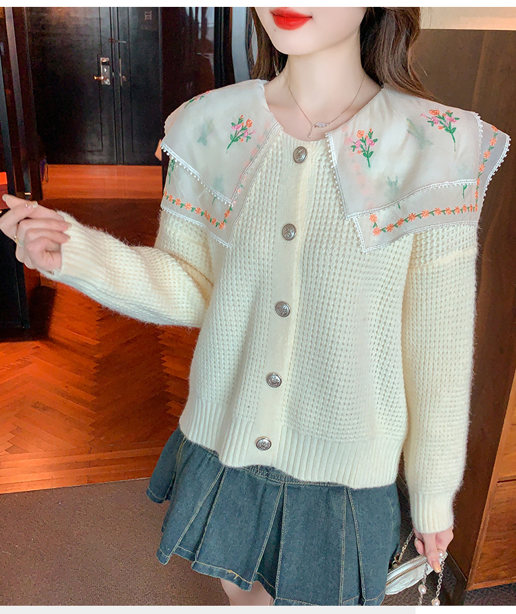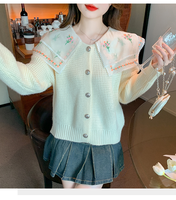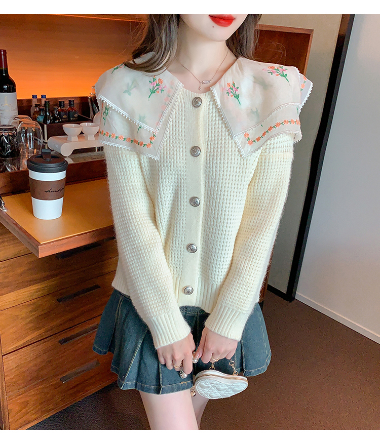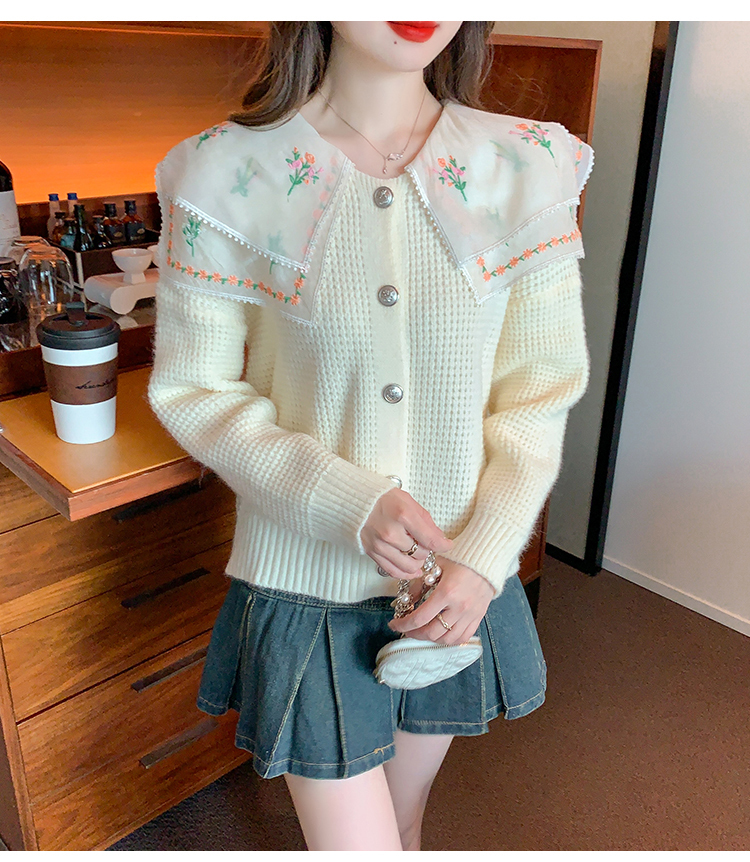 限量特惠|減齡甜美翻領刺繡針織衫(11H5224)