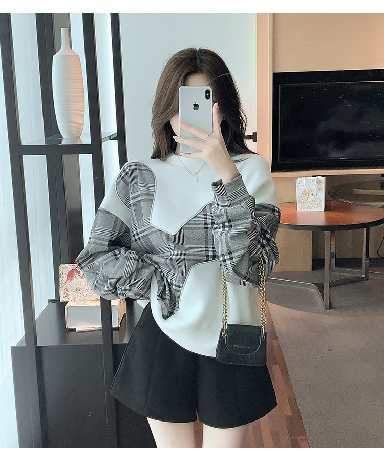限量特惠|甜美舒適拼接格紋撞色T恤(11H5227)