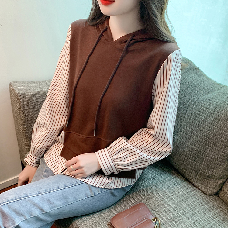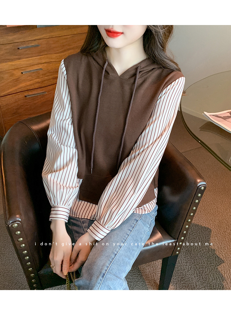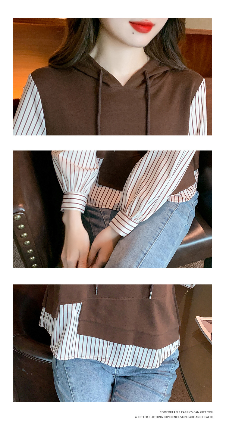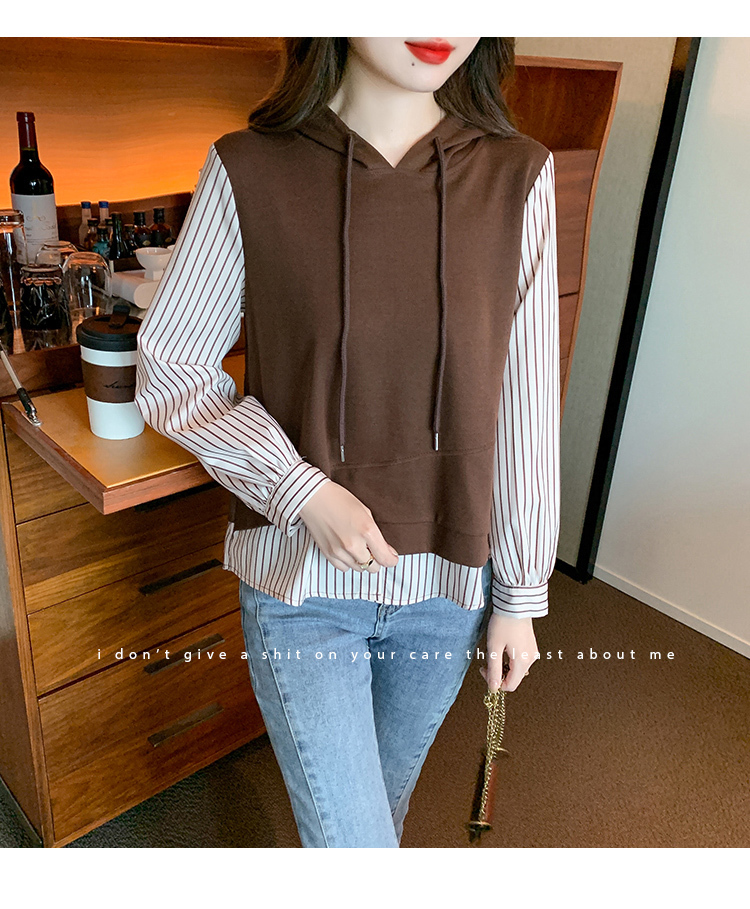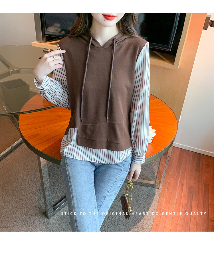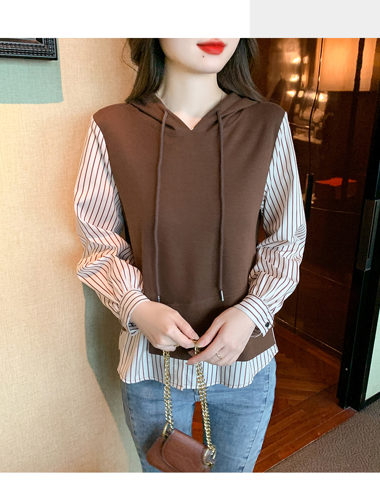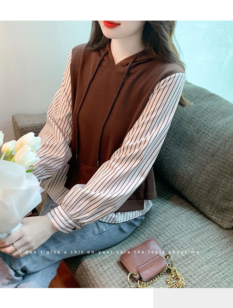 限量特惠|個性舒適拼接豎條紋假兩件式連帽上衣(11H5244)