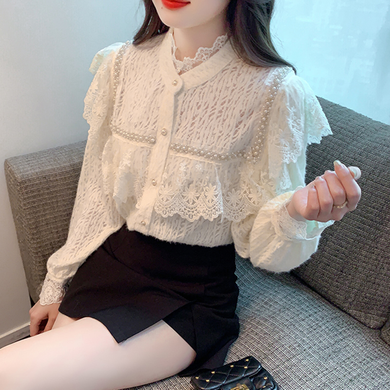 限量特惠|氣質甜美釘珠鈎花蕾絲衫(11H5265)