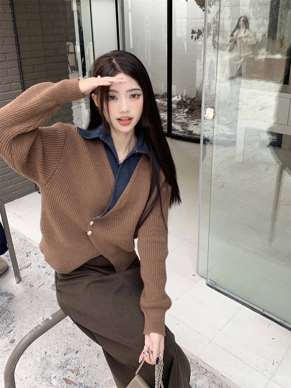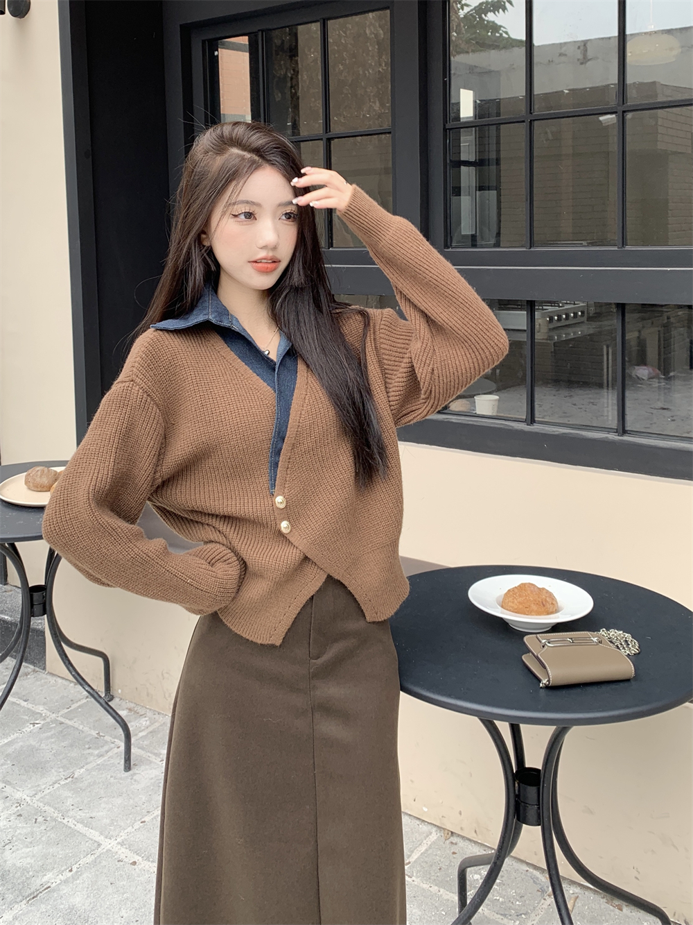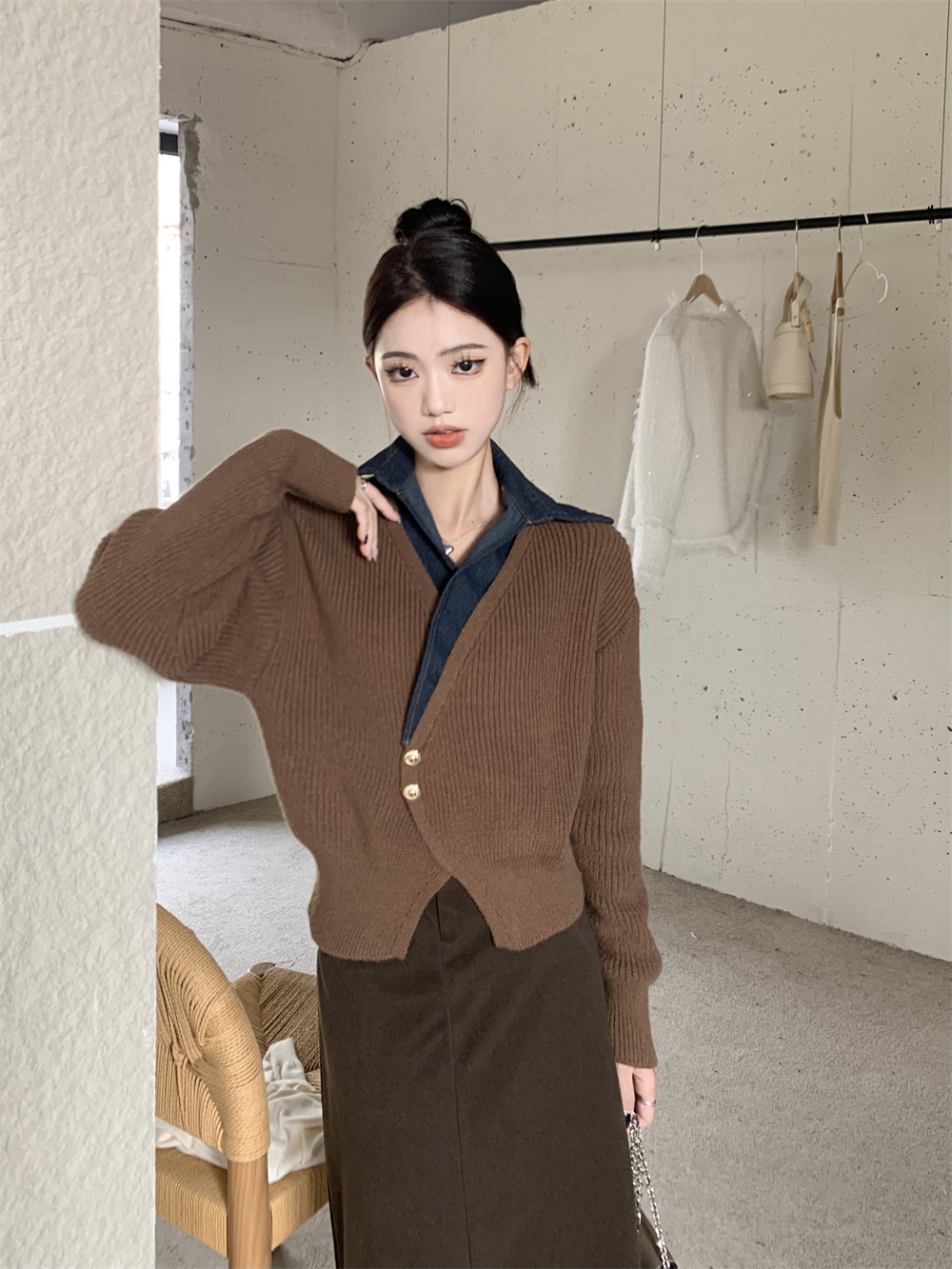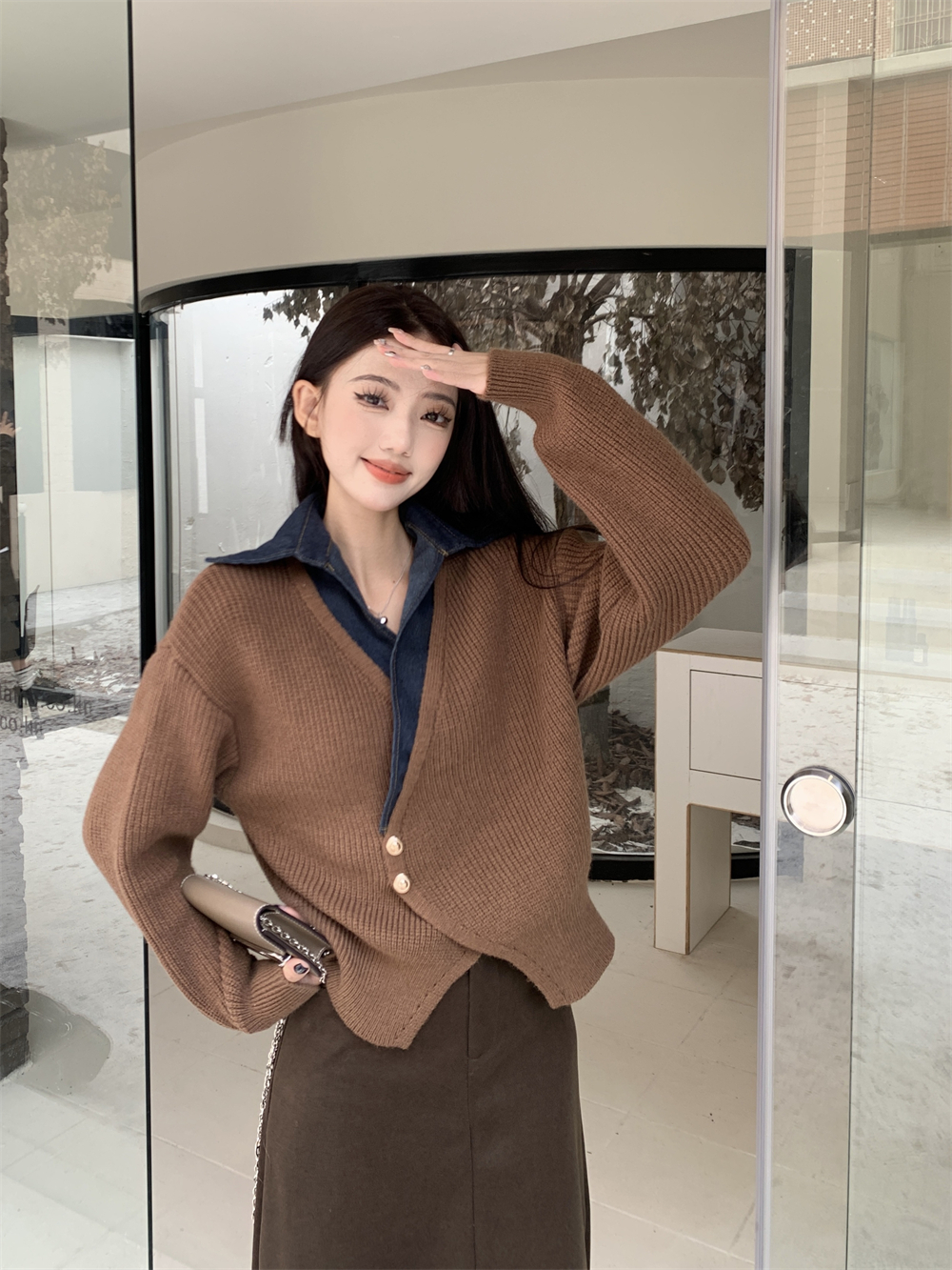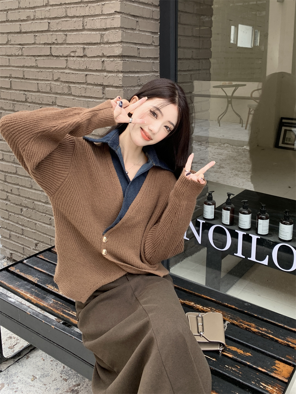 限量特惠|個性拼接牛仔假兩件不規則針織外套(11H5336)