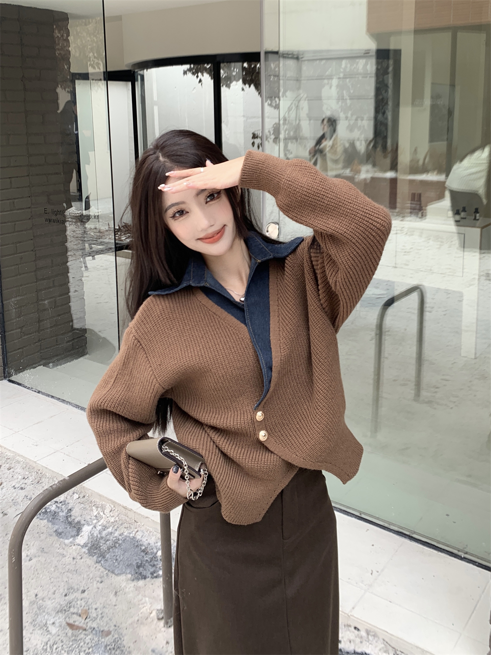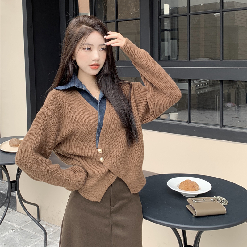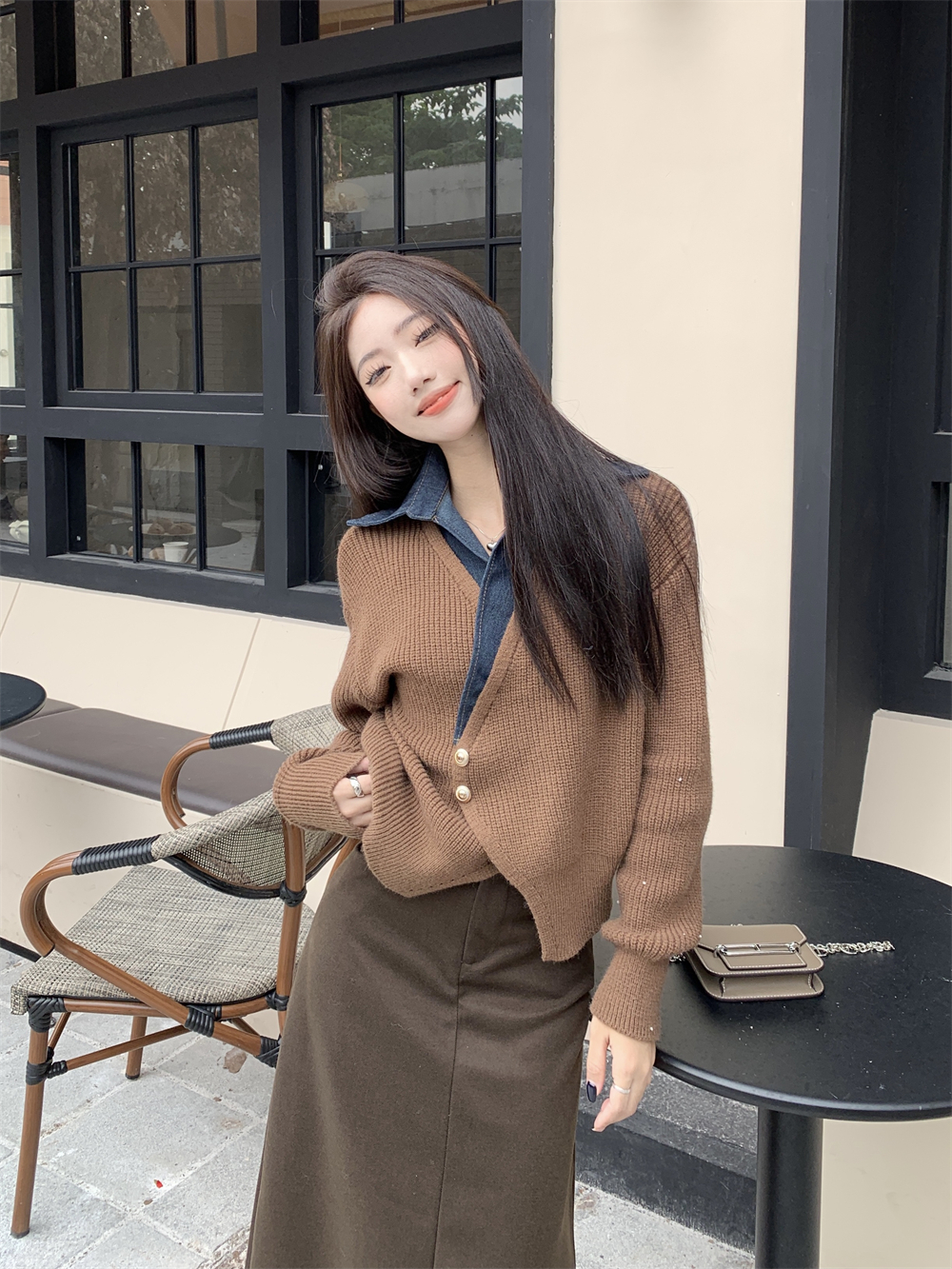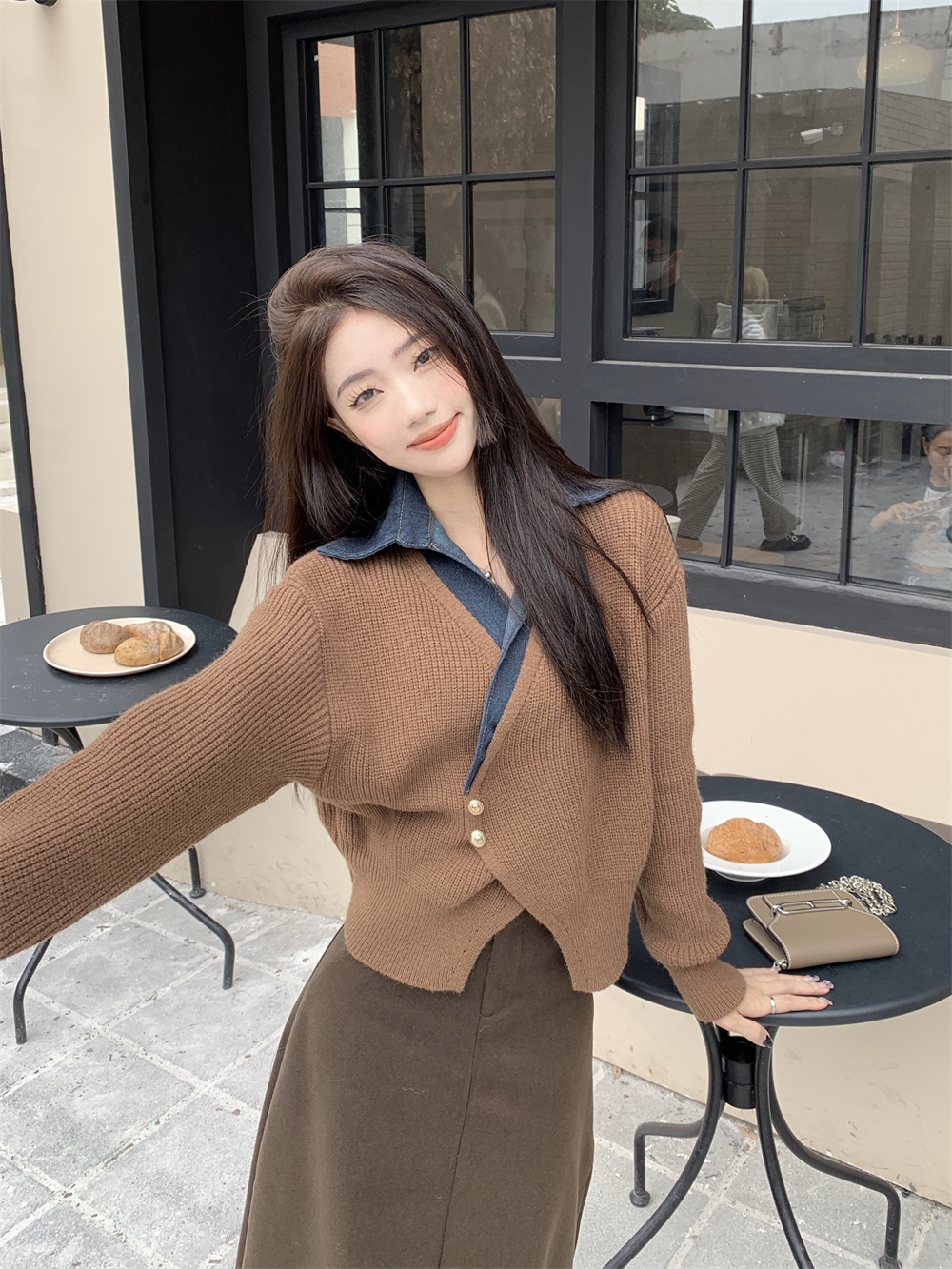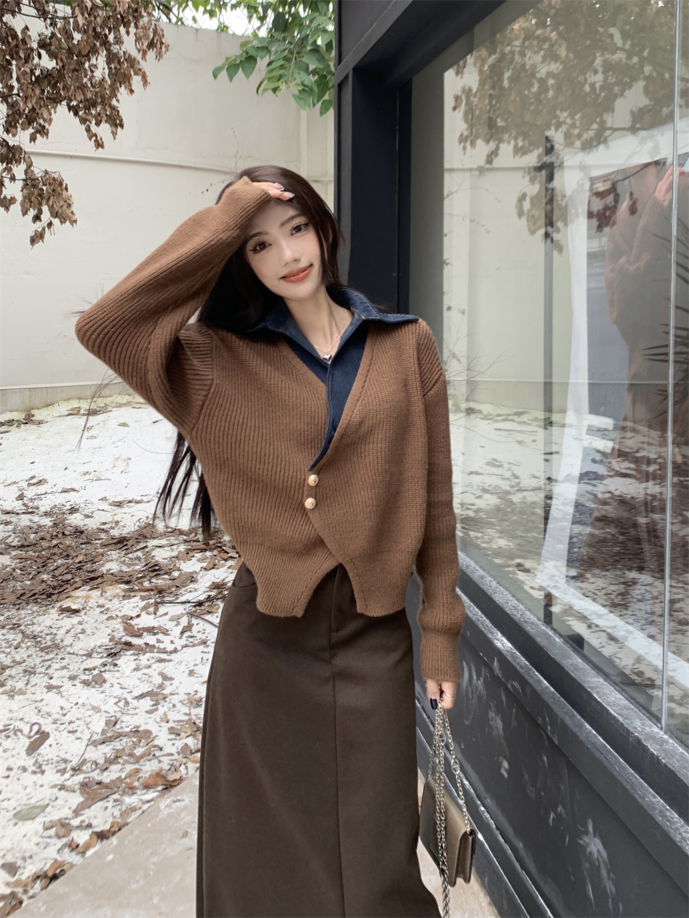 限量特惠|個性拼接牛仔假兩件不規則針織外套(11H5336)