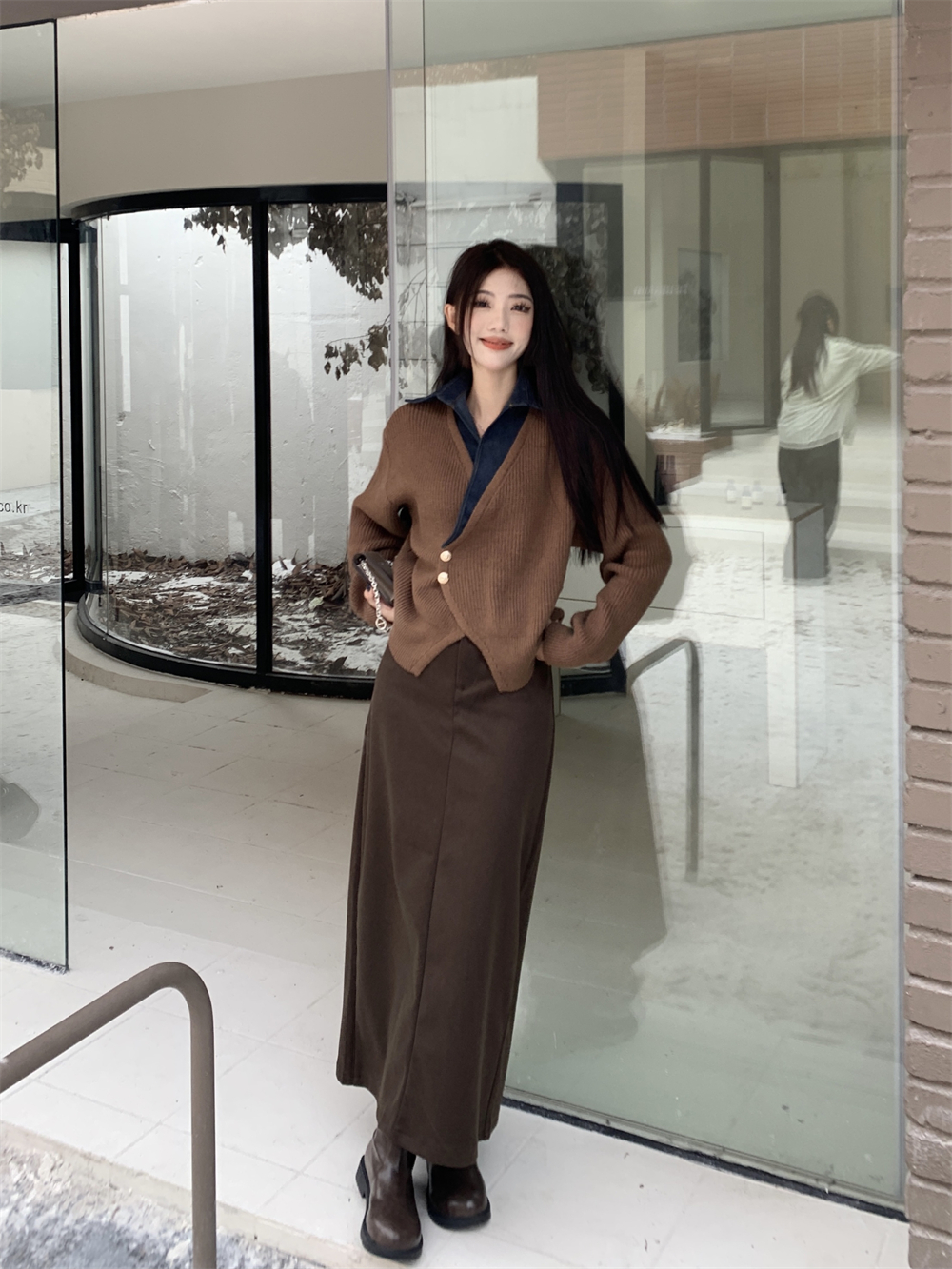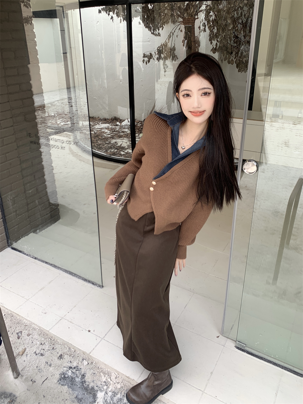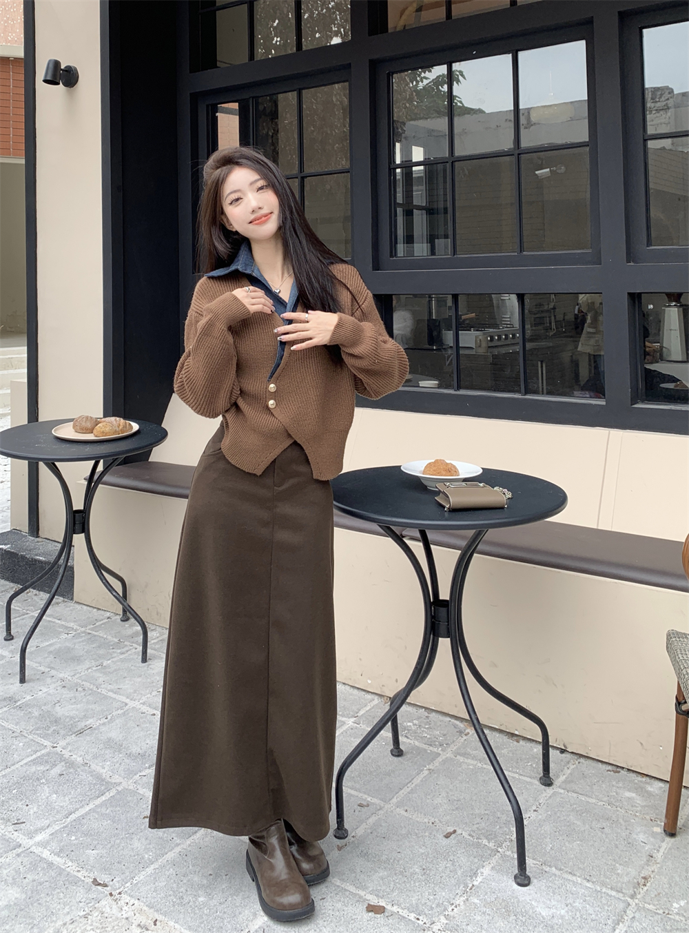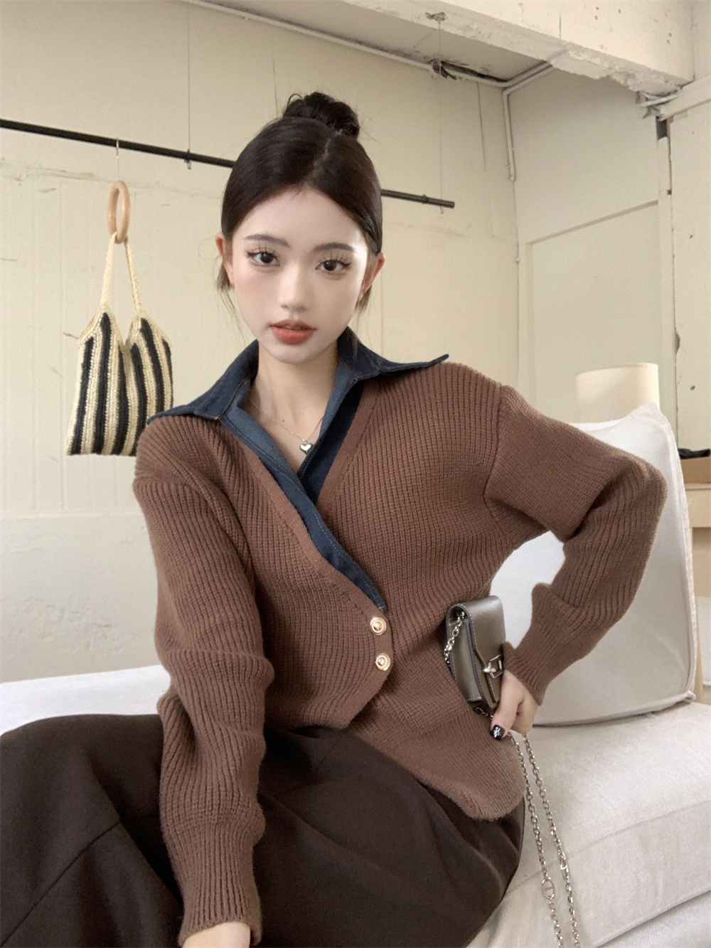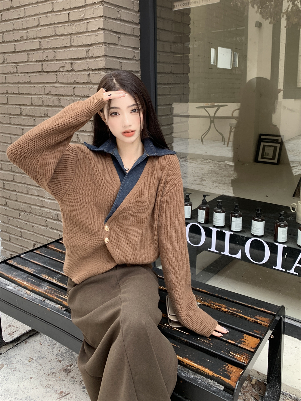 限量特惠|個性拼接牛仔假兩件不規則針織外套(11H5336)