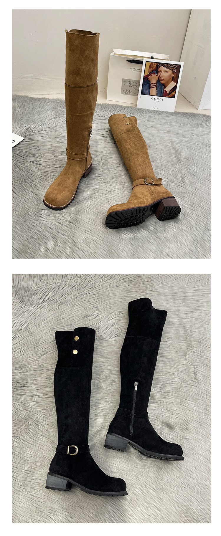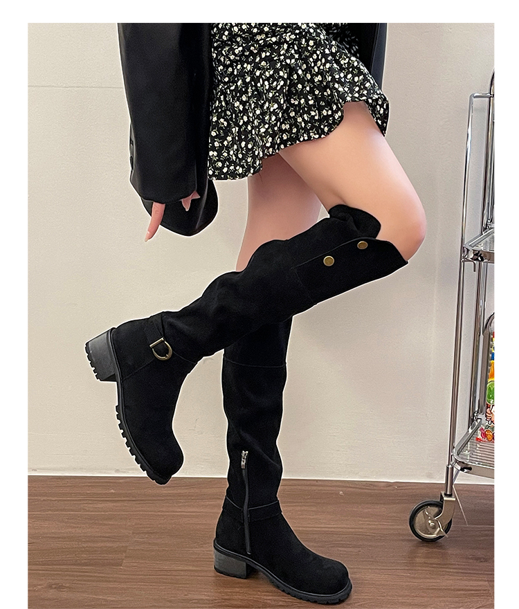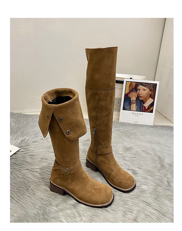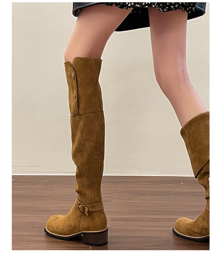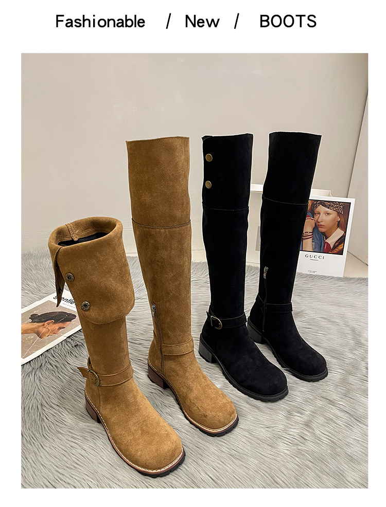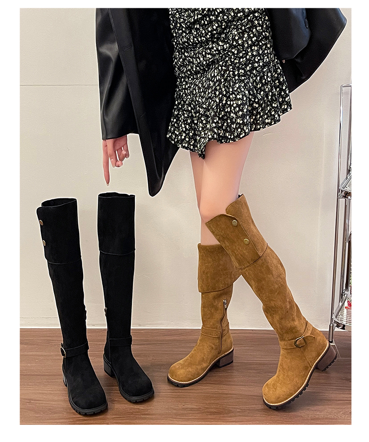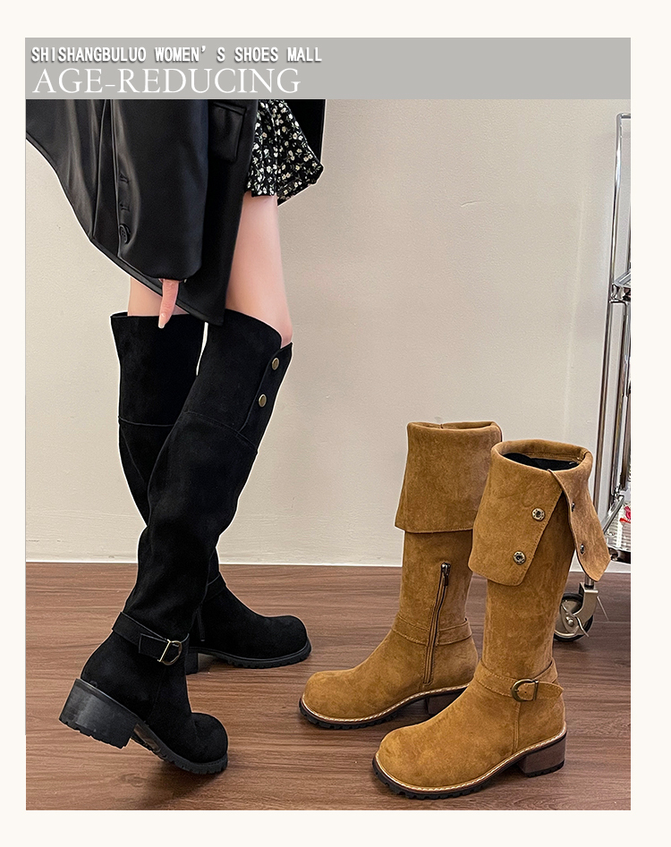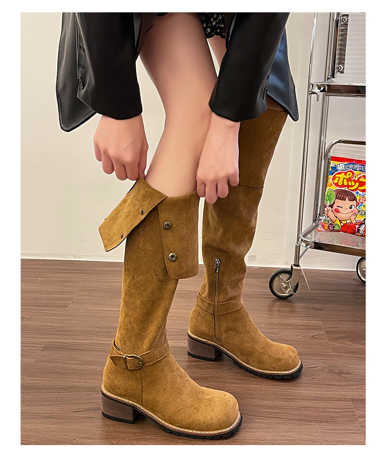2穿│個性英倫風側扣麂皮長筒靴-2色(11H5385)
