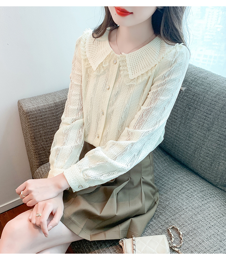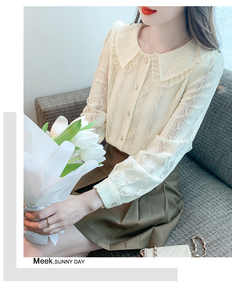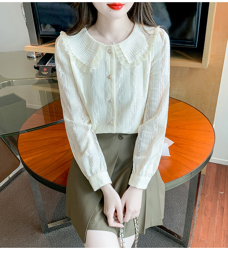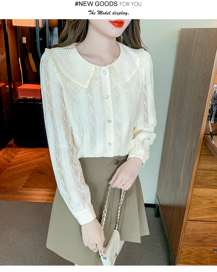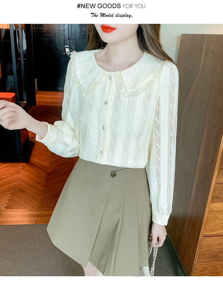 限量特惠|氣質百搭拼接蕾絲雙翻領雪紡衫(11H5438)