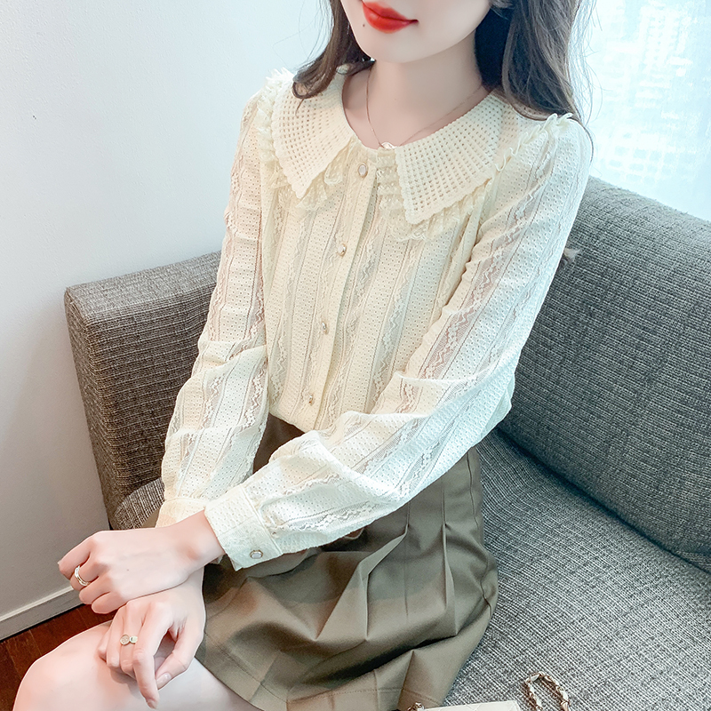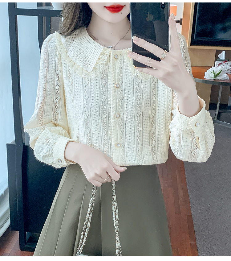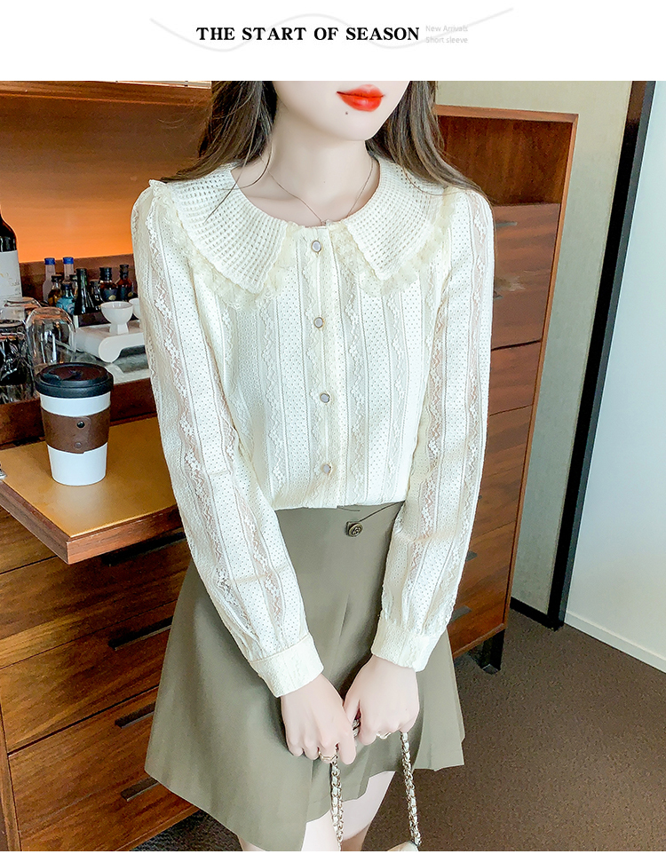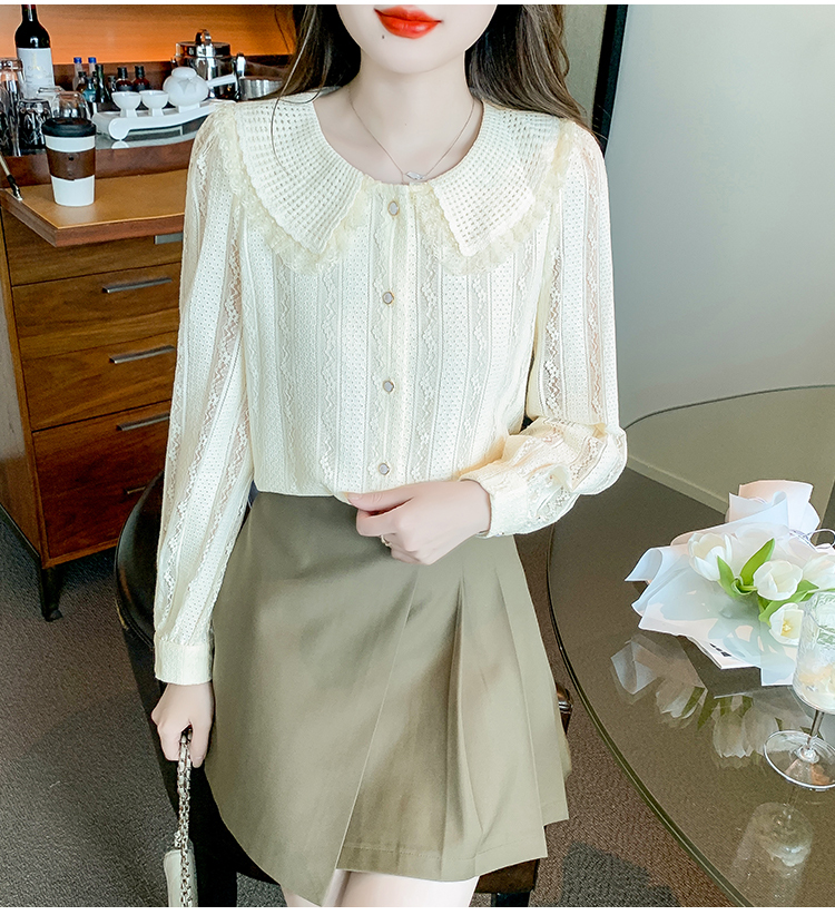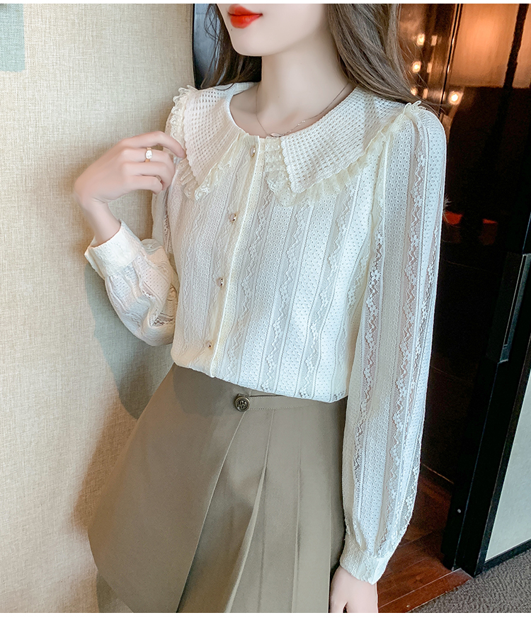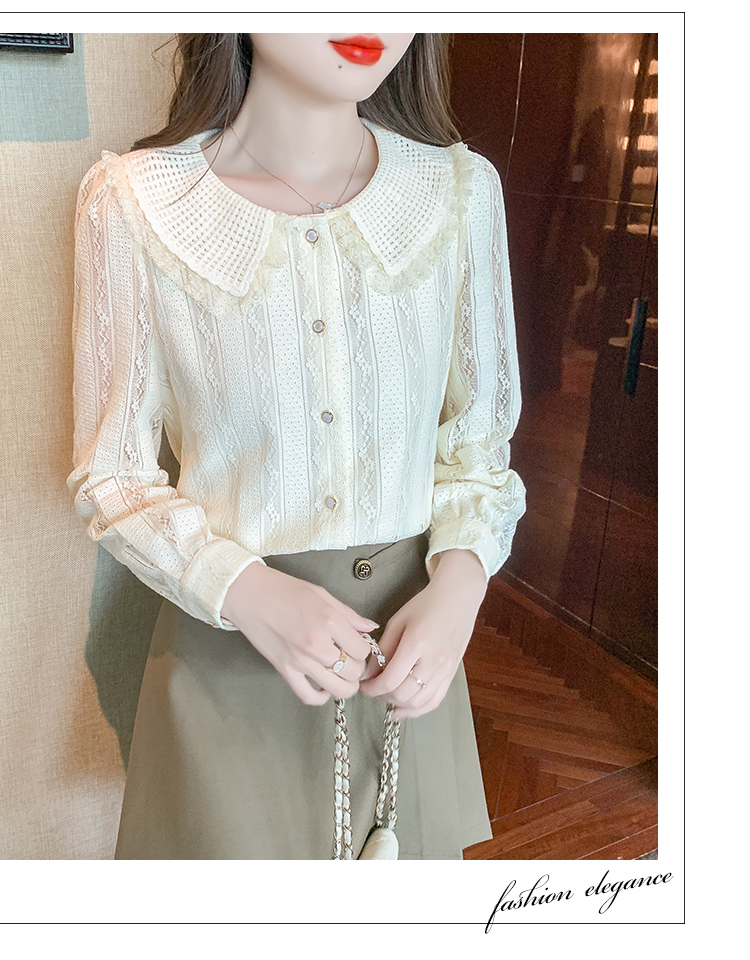 限量特惠|氣質百搭拼接蕾絲雙翻領雪紡衫(11H5438)
