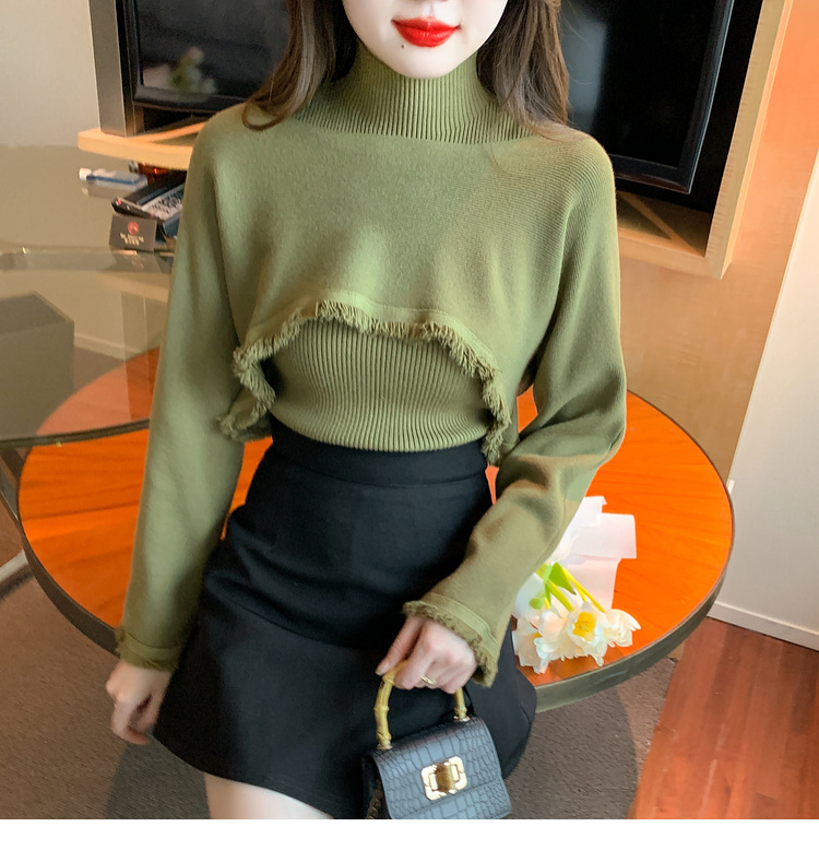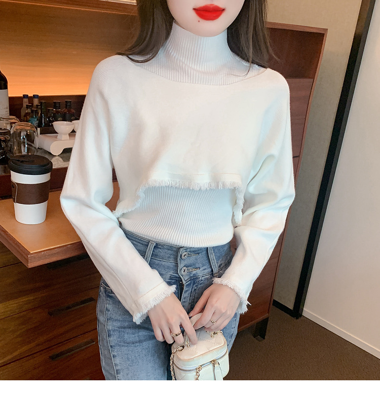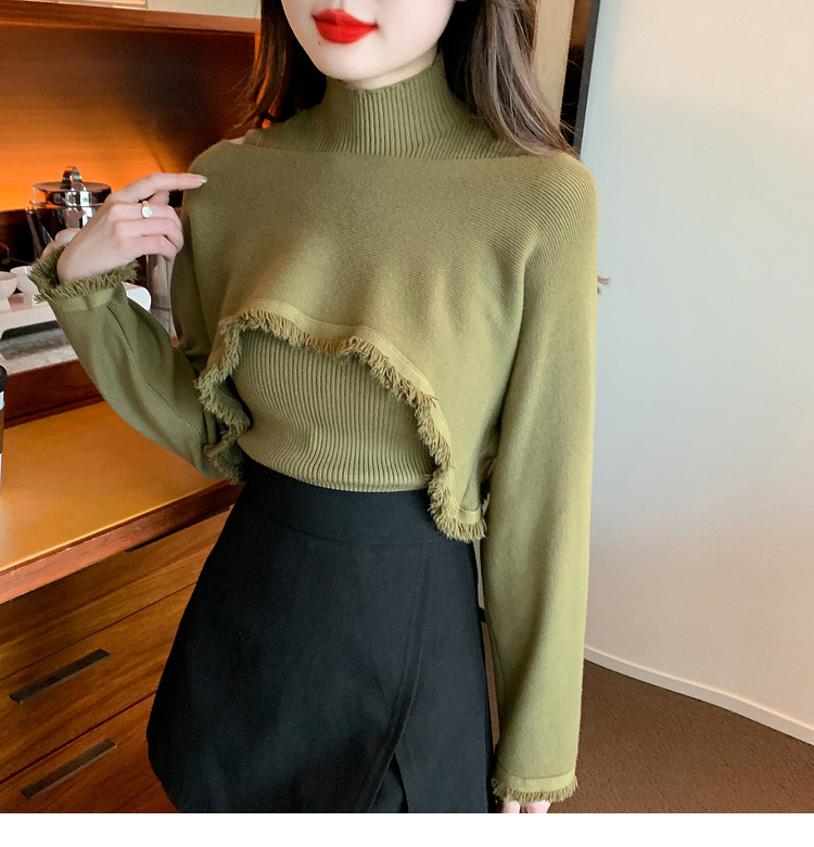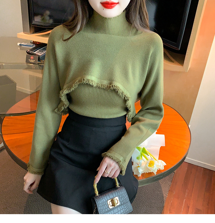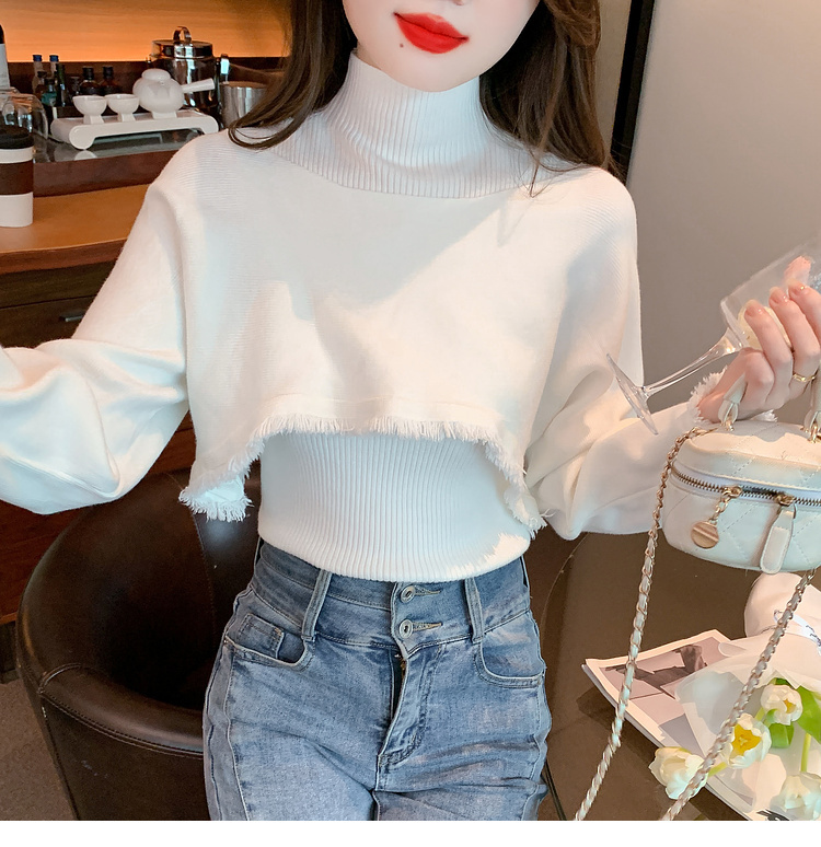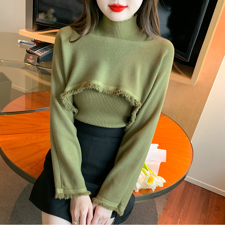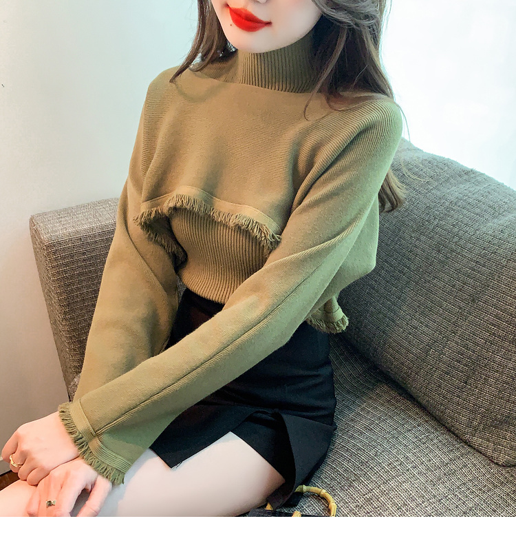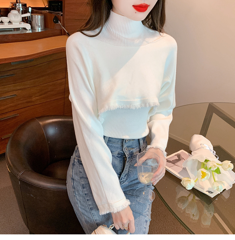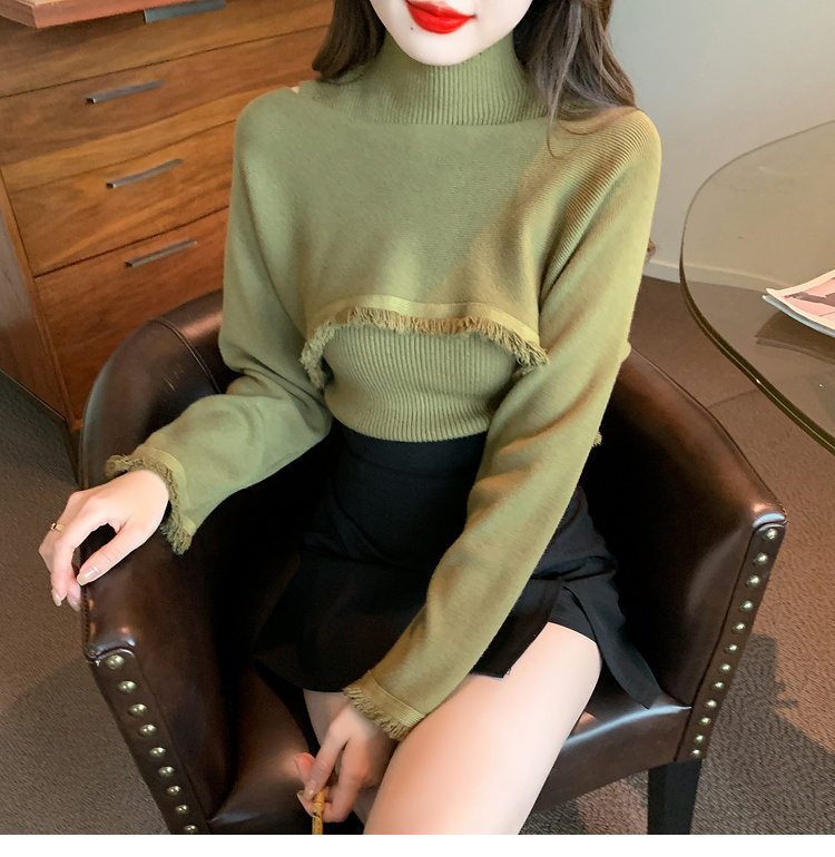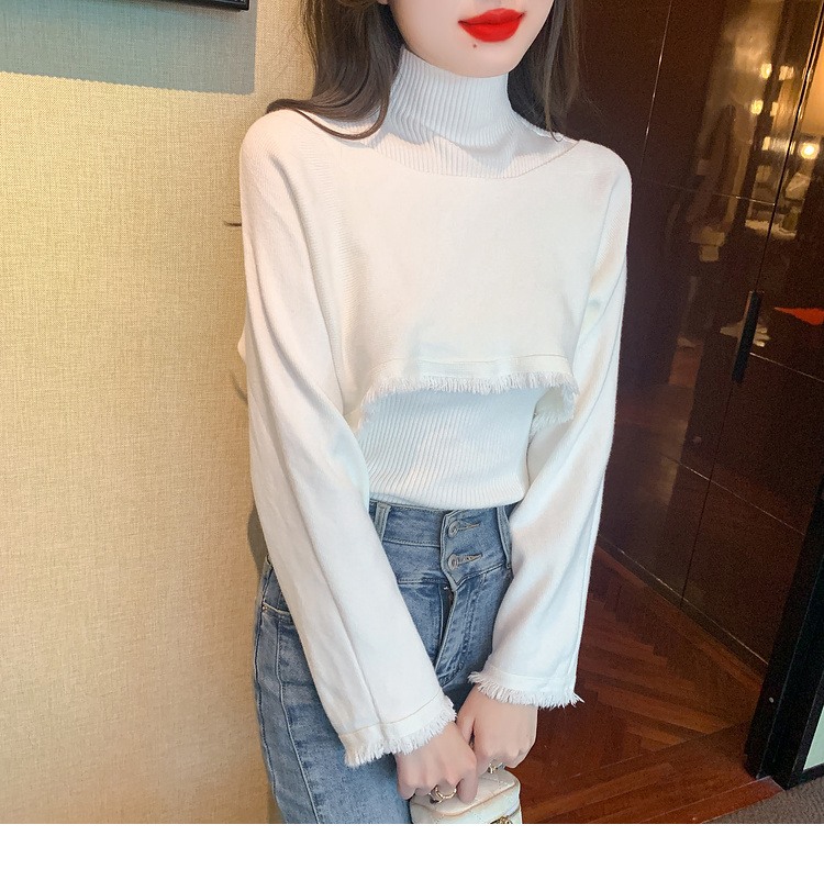 限量特惠|氣質百搭流蘇短款針織衫+高領內搭兩件式-3色(11H5452)